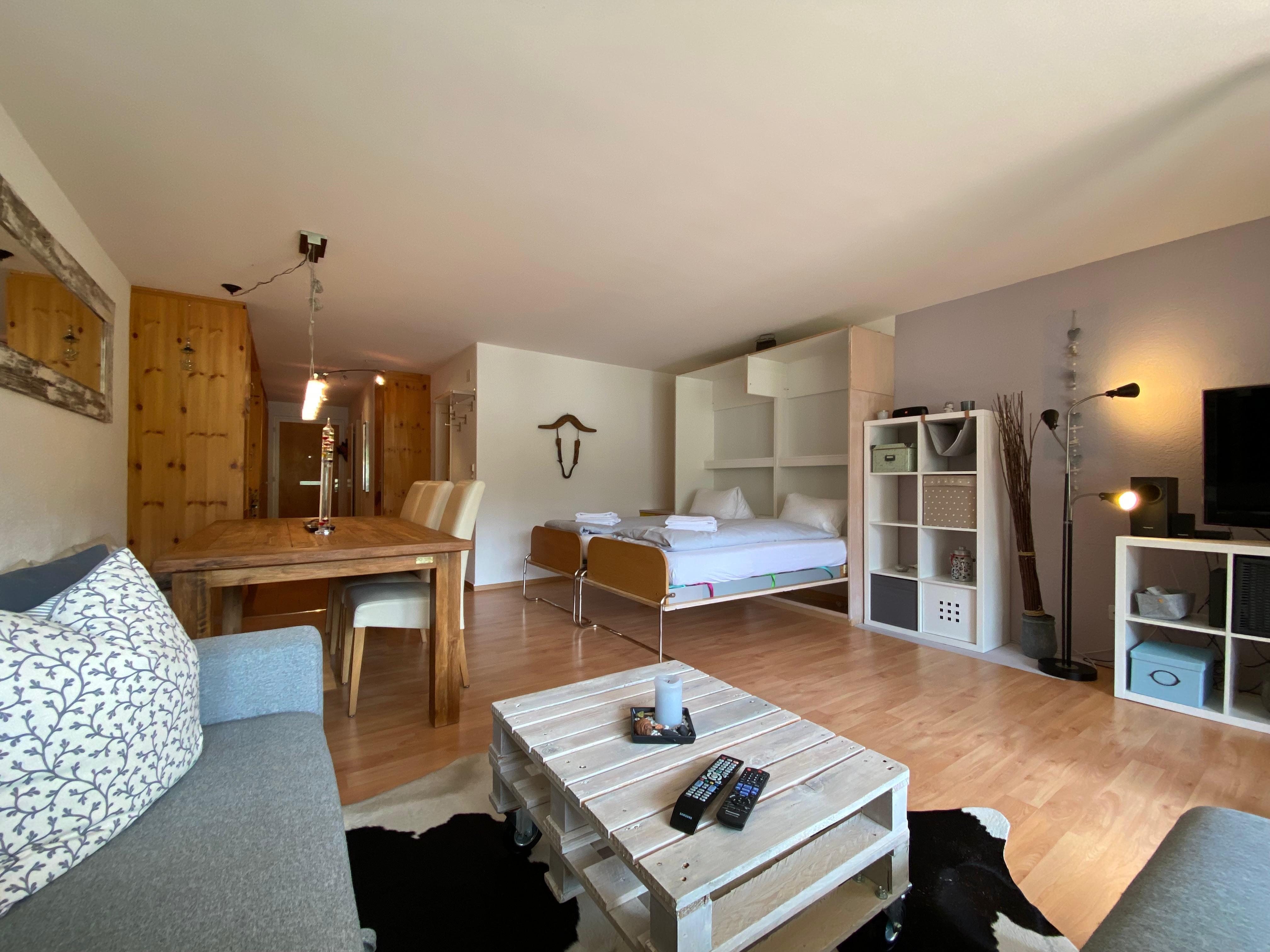 Die geräumige 2-Zimmer-Wohnung befindet sich im Gebäude vom Rothornblick Gebäude an ruhiger Wald Lage und von viel Natur umgeben. Der Balkon bietet einen herrlichen Bergblick.