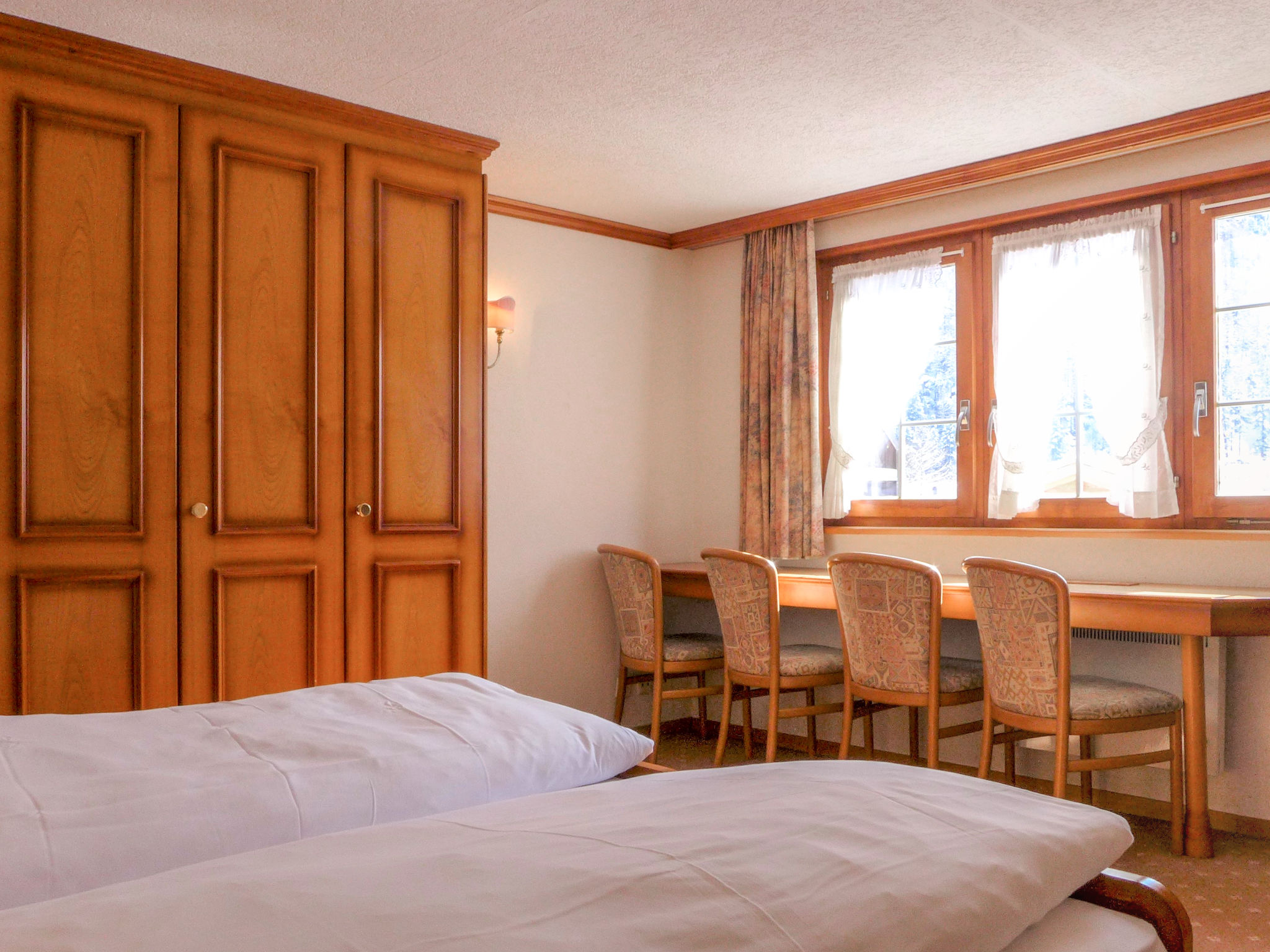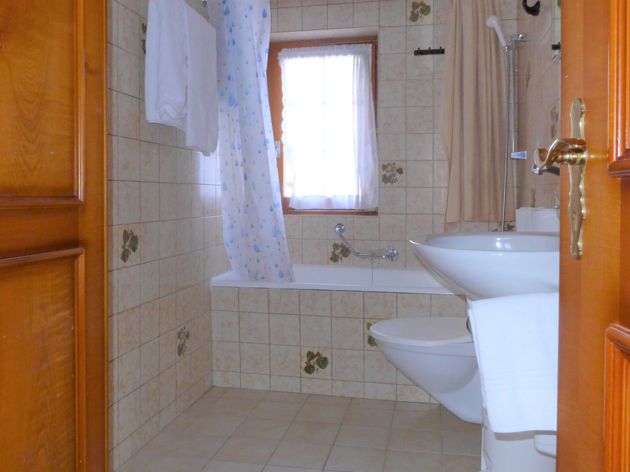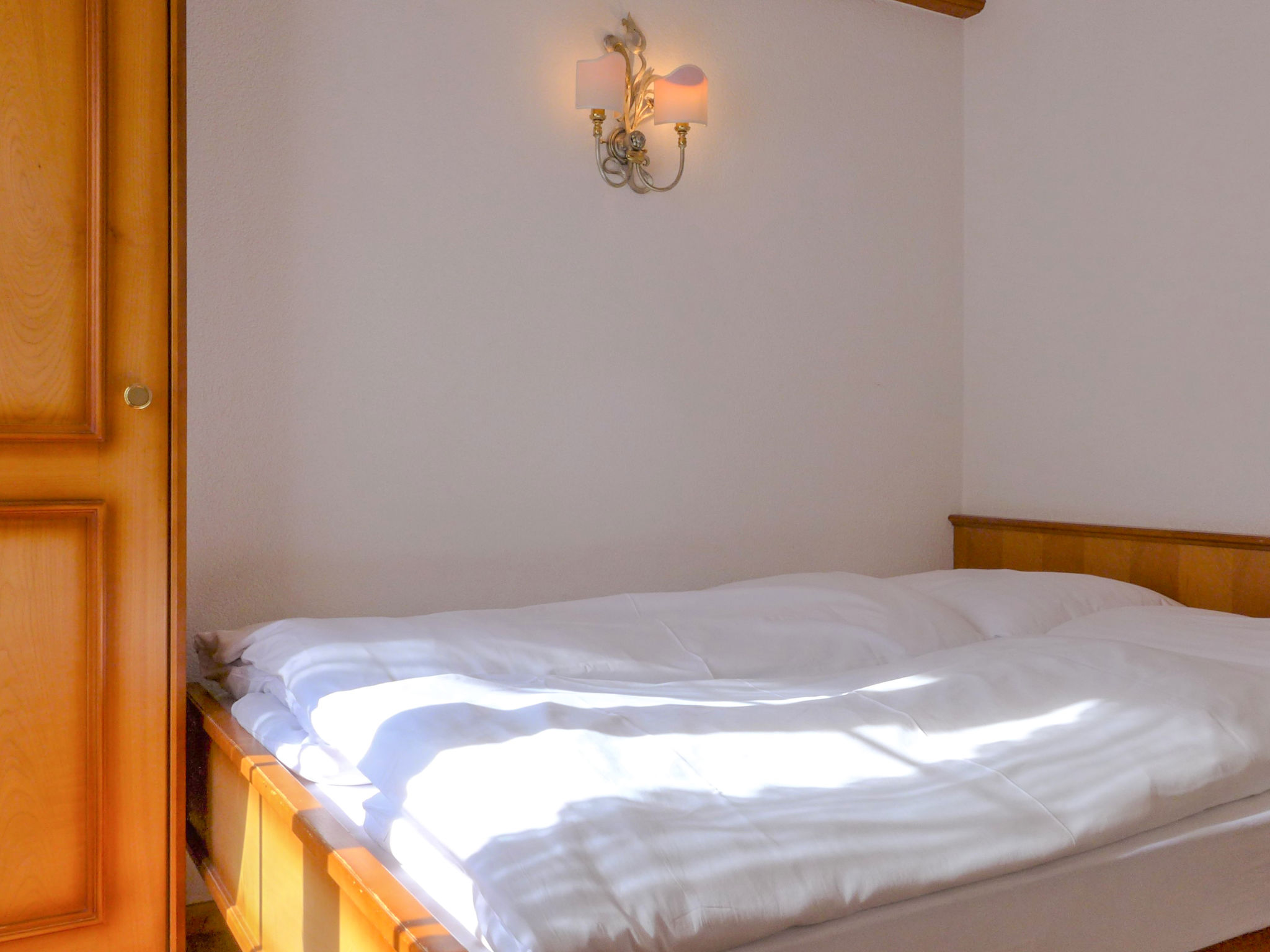 4-Zimmer-Wohnung 89 m2 im 1. Stock, Südlage. Einfach und gemütlich eingerichtet: Durchgangszimmer 16 m2 mit 2 Betten (90 cm, Länge 200 cm), Bad/WC. Verbundenes Zimmer 5 m2 mit 1 Bett (120 cm, Länge 200 cm). Wohnküche (Backofen, Geschirrspüler, 4 Glaskeramikplatten, Toaster, Wasserkocher, Tiefkühler, elektrische Kaffeemaschine) mit Esstisch und TV. Heizung. Obergeschoss: (Wendeltreppe) 1 abgeschrägtes Zimmer mit 2 Betten (90 cm, Länge 200 cm), Bad/WC. Heizung. Balkon, Südlage. Balkonmöbel. Schöne Sicht auf das Matterhorn. Zur Verfügung: Haartrockner. Internet (Wireless LAN, gratis). Bitte beachten: Nichtraucher-Unterkunft.