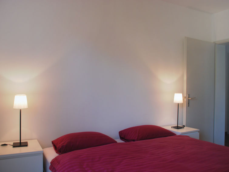 "Large Suite", 3-Zimmer-Wohnung 80 m2, im erhöhten Erdgeschoss, Westlage. Geräumig und hell, renoviert im Jahre 2019, komfortabel und gemütlich eingerichtet: Wohn-/Esszimmer mit 1 Diwanbett (160 cm, Länge 200 cm), offenem Kamin, Kabel-TV, Flachbildschirm und Radio. Ausgang zum Balkon, zum Gartensitzplatz. 1 Doppelzimmer mit 2 Betten (90 cm, Länge 200 cm). 1 Zimmer mit 2 Betten (90 cm, Länge 200 cm). Küche (Backofen, Geschirrspüler, 4 Glaskeramikplatten, Tiefkühler, elektrische Kaffeemaschine, Kapseln für die Kaffeemaschine (Nespresso) extra). Bad/WC, sep. WC. Heizung, Warmluftheizung. Balkon, Westlage, kleiner Gartensitzplatz. Balkonmöbel. Zur Verfügung: Bügeleisen, Kinderhochstuhl, Babybett bis 2 Jahre (extra), Haartrockner. Internet (Wireless LAN, gratis). Bitte beachten: Nichtraucher-Unterkunft. Maximal 1 Haustier/Hund erlaubt. NL-00008129