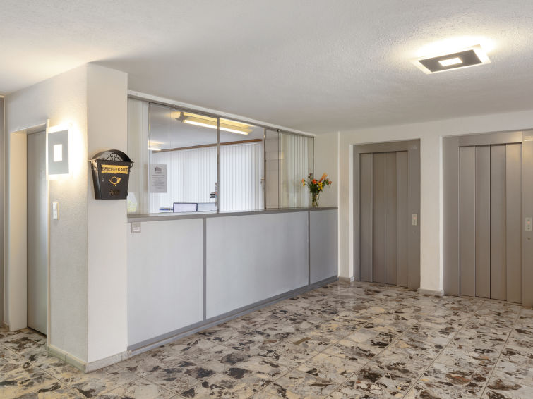 Appartementhaus "Promenade (Utoring)". Im Ort, 500 m vom Zentrum, ruhige Lage. Im Hause: Aufenthaltsraum, Tischtennis, Kiosk, Fahrstuhl, Skiraum, Zentralheizung, Waschmaschine (zur Mitbenutzung). Zufahrt bis zum Haus (Bergstrasse). Im Winter bitte Schneeketten mitbringen, im Winter 4x4 empfohlen. Parkplatz (beschränkte Anzahl, extra) beim Haus, Gemeinschaftsgarage (extra), öffentliches Parkhaus in 800 m. Einkaufsgeschäft 500 m, Bushaltestelle "Arosa, Rathaus" 400 m, Bahnstation "Arosa" 1 km. Skisportanlagen, Skipisten, Schlittelbahn 500 m. Hauslieferdienst möglich. Schöne Wanderwege direkt vor dem Haus. Achtung: beschränkte Anzahl Parkmöglichkeiten! Parkplatz oder Garagenplatz müssen zwingend vorgängig beim Schlüsselhalter reserviert werden: Parkplatz CHF 5.00/Tag, überdachter Parkplatz CHF 8.00/Tag, Garagenplatz CHF 16.00/Tag, zahlbar vor Ort. Aufenthaltsraum mit Internetanschluss (WiFi). Skiabonnements sind an der Rezeption erhältlich.
