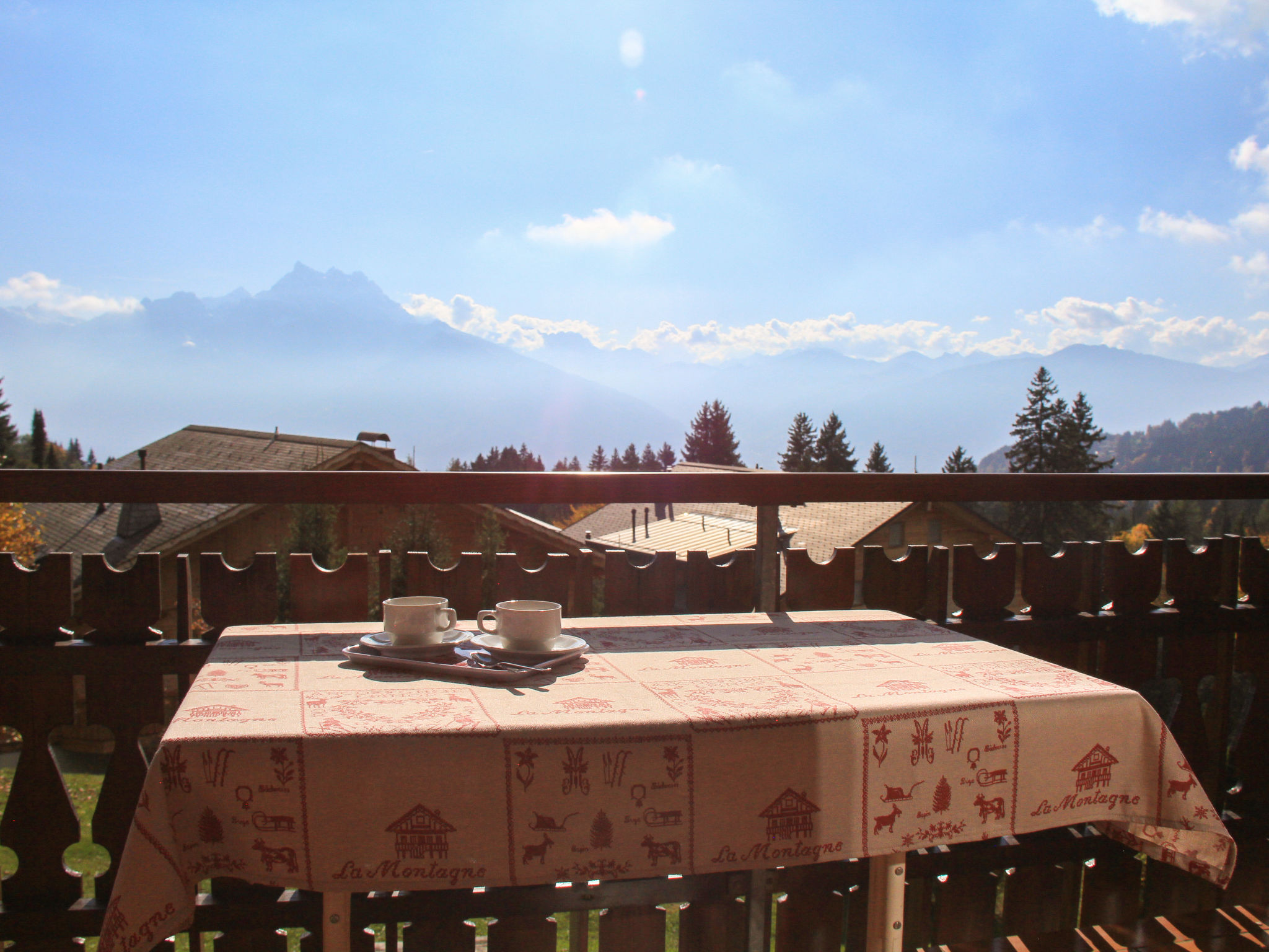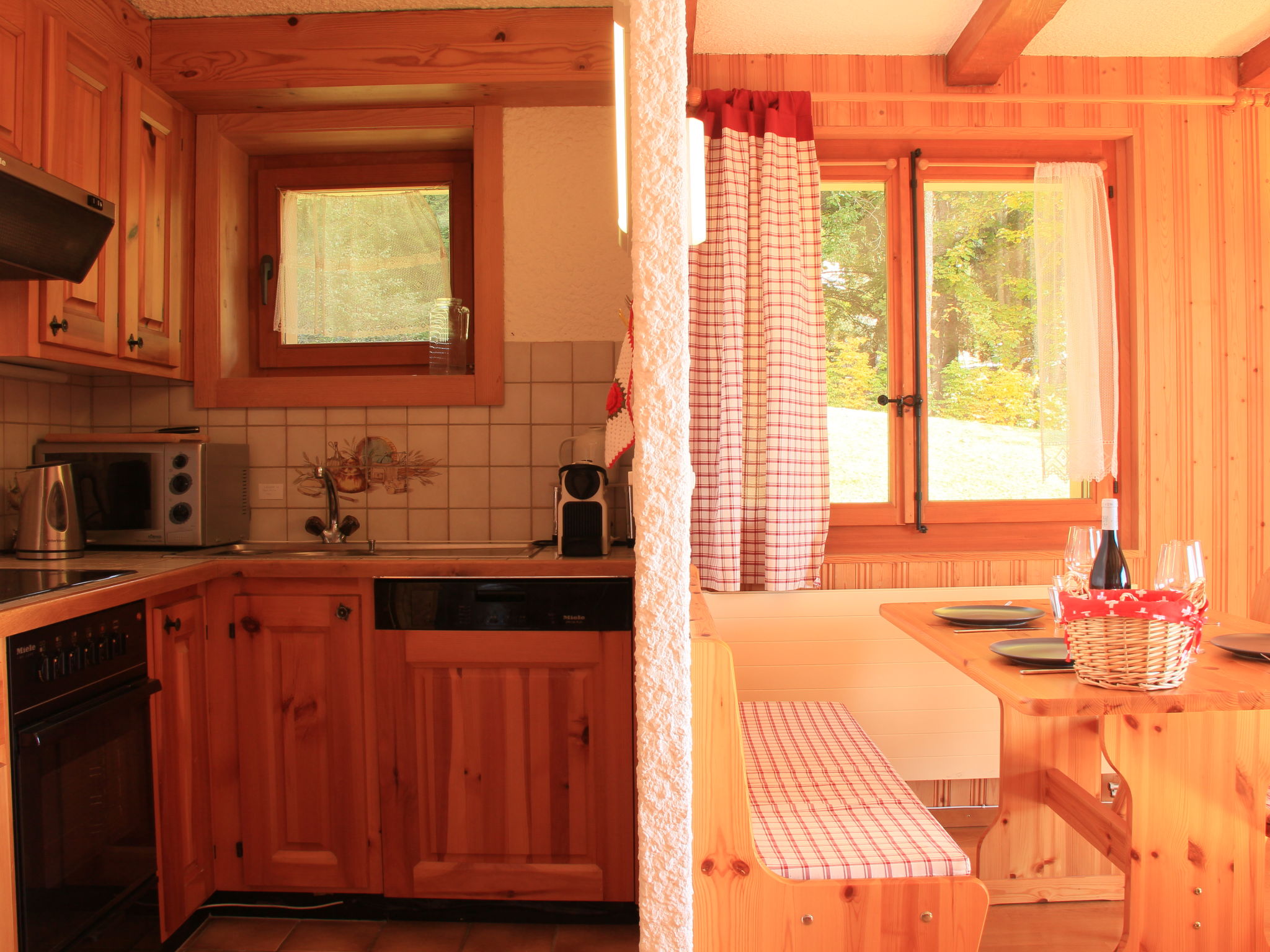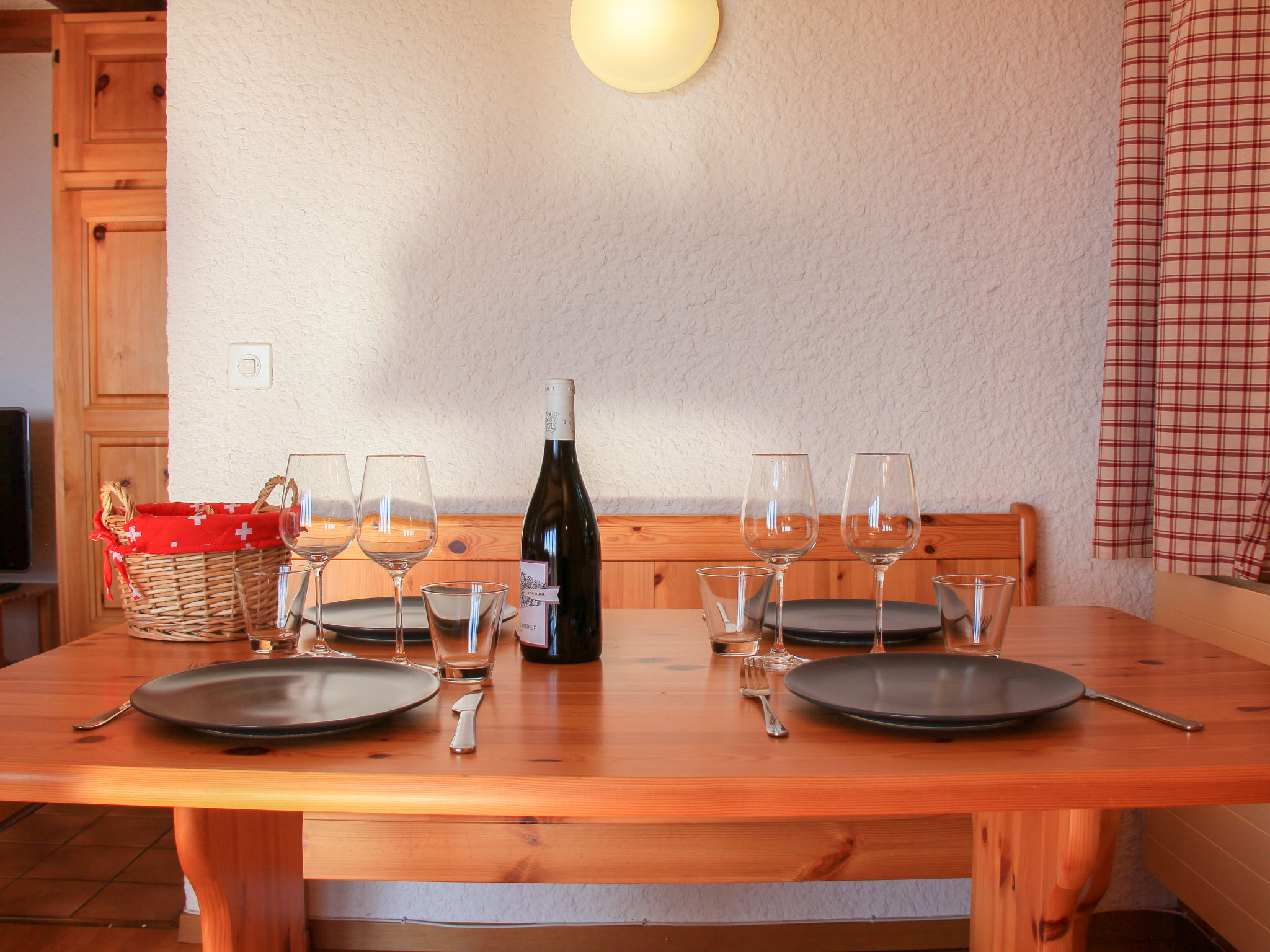 "Le Bouquetin 5", 2-Zimmer-Wohnung 53 m2 im 1. Stock, Südlage. Zweckmässig und komfortabel eingerichtet: Wohn-/Esszimmer mit 2 Ausziehbetten (2 Pers. 2 x 90 cm), offenem Kamin, Esstisch und TV (Flachbildschirm). Ausgang zum Balkon, Richtung Süden und Richtung Osten. 1 Zimmer mit 2 Betten (90 cm), Bad/WC. Offene Küche (Backofen, Geschirrspüler, 4 Glaskeramikplatten, Toaster, Wasserkocher, Mikrowelle, elektrische Kaffeemaschine, Kapseln für die Kaffeemaschine (Nespresso) extra, Racletteofen, Fondue Set (Käse)). Dusche/WC. Kleiner Balkon, Südlage und Ostlage. Sehr schöne Panoramasicht auf die Berge. Zur Verfügung: Haartrockner. Garage Nr. n°5 (1 Auto). Bitte beachten: Nichtraucher-Unterkunft. Kein Fahrstuhl.
