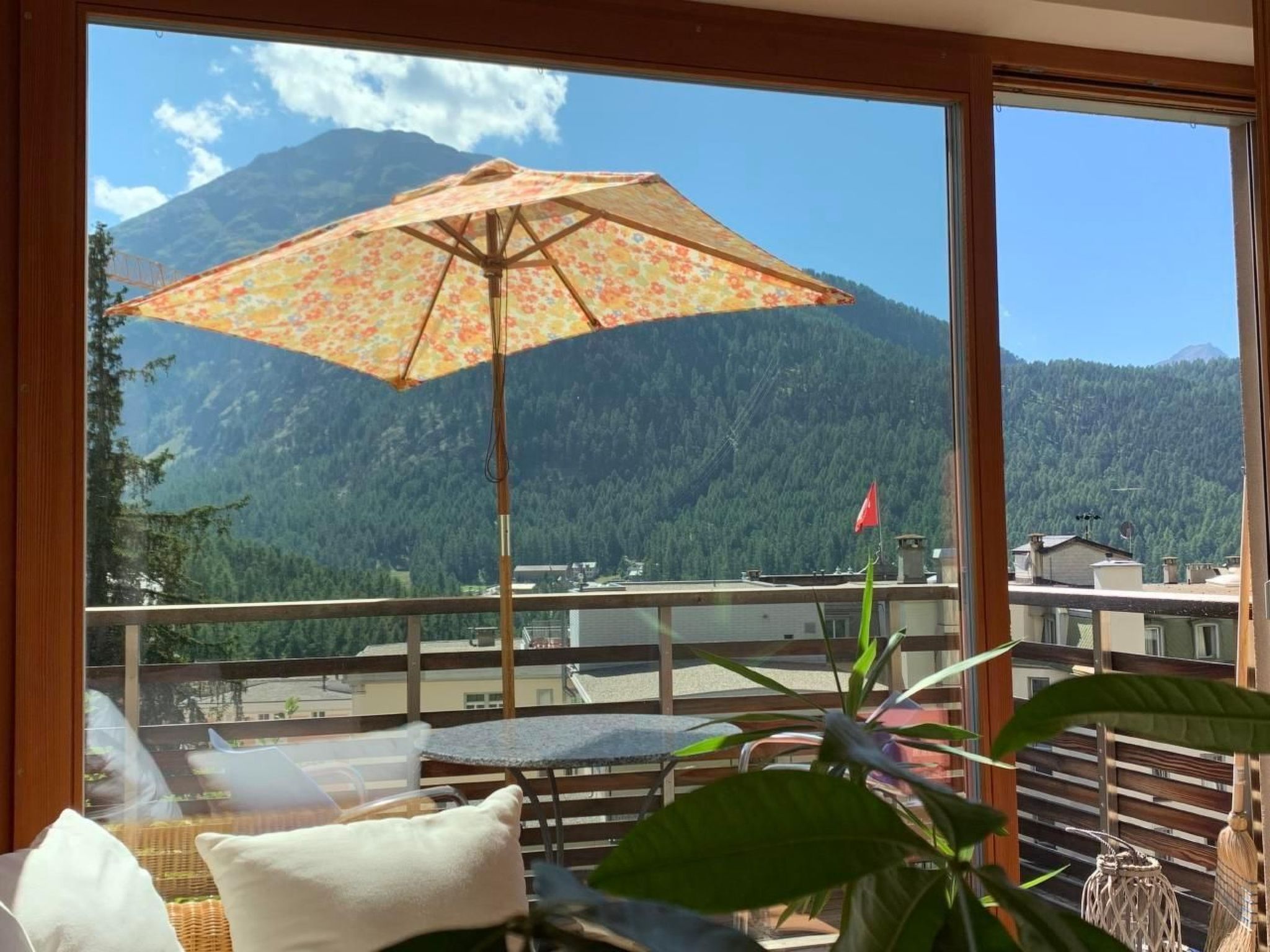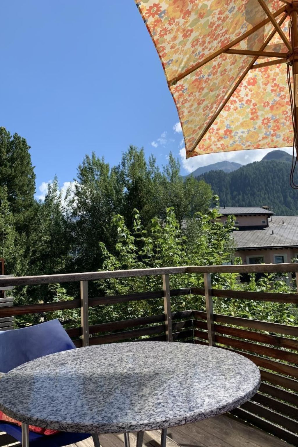 Charmantes modernes Studio (38m2) mit gediegenen lokalen Materialien ausgestattet für stille genussbetonte Individualisten (2 Personen), ganztags besonnt, ruhig gelegen in neuerem Einheimischen-MFH mit persönlichem Flair, am Südhang und doch mitten im Zentrum von Pontresina gelegen, mit chilligem Balkon zum Verweilen, freie Aus- und Weitsicht ins Val Roseg zum Piz Chapütschin, heller, grosszügiger Wohn/Schlafraum mit Doppelbett (180x200cm) mit 2 separaten Matratzen, TV, Wlan, offene vollständig eingerichtete Küche mit Bar (2 Herdplatten, Backofen, Kühlschrank), Dusche/WC modern in edlem schwarzen Schiefer mit Duschkabine, Nebenraum/Disponibel für Allerlei mit Türe abgetrennt (für Kleider/Garderobe/Hauswirtschaft/Koffern etc), treppenlos, Schuh/Skiraum im Untergeschoss mit Lift zugänglich, 2' zu Fuss zur Flanier- und Restaurantmeile der Via Maistra und zur Bushaltestelle, 12' zum Bahnhof, Privatparkplatz vor dem Haus
