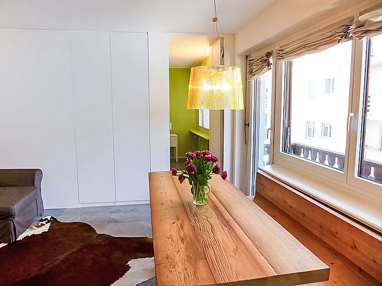 St. Moritz Bad: Altes, einfaches Mehrfamilienhaus "Chesa La Soliva", auf 4 Stockwerken, Baujahr 1960. Im Ortszentrum von St. Moritz Bad, 400 m vom Waldrand, 250 m vom See, 900 m vom Skigebiet. Zur Mitbenutzung: kleiner Garten. Im Hause: Zentralheizung, Waschmaschine, Wäschetrockner (zur Mitbenutzung, extra). Parkplatz Nr. 20 auf dem Grundstück. Einkaufsgeschäft, Supermarkt 500 m, Restaurant 200 m, Bar 200 m, Bäckerei 260 m, Fahrradverleih 200 m, Bushaltestelle "St. Moritz Bad, Kath. Kirche" 260 m, Bahnstation 1.7 km, Hallenbad 450 m, Thermalbad "Heilbadzentrum St.Moritz" 600 m, See St. Moritzer See 250 m. Golfplatz (18 Loch) 7 km, Surfschule 5.4 km, Tennis 1 km, Tennishalle 1 km, Minigolf 450 m, Reitstall 2.9 km, Wanderwege ab Haus 250 m, Radweg 250 m, Luftseilbahn, Skilift 900 m, Skipisten 900 m, Skiverleih 200 m, Skibushaltestelle 260 m, Skischule 1.7 km, Kinderskischule 1.7 km, Schlittelbahn 5.3 km, Langlaufloipe 450 m, Eisfeld 300 m, Kinderspielplatz 500 m. Nahe gelegene Sehenswürdigkeiten: Segantini Museum 1.9 km, Engadiner Museum 850 m, Mili Weber-Haus 2.6 km, Olympia Bob Run mit Museum 2.3 km, Nietzsche Museum in Sils-Maria 9.6 km. Bekannte Skigebiete sind gut erreichbar: Corviglia Piz Nair 900 m, Corvatsch - Furtschellas 6.6 km, Diavolezza - Lagalb 19.4 km. Bekannte Seen in der Umgebung sind gut erreichbar: St. Moritzer See 250 m, Silvaplaner See 5.3 km, Silser See 9.6 km. Wandergebiete: Stazerwald & Stazersee, Corviglia Piz Nair, Muottas Muragl. Bitte beachten: kein Fahrstuhl vorhanden. Die Schlüsselübergabe findet bei der Agentur Interhome in St. Moritz Bad statt.
