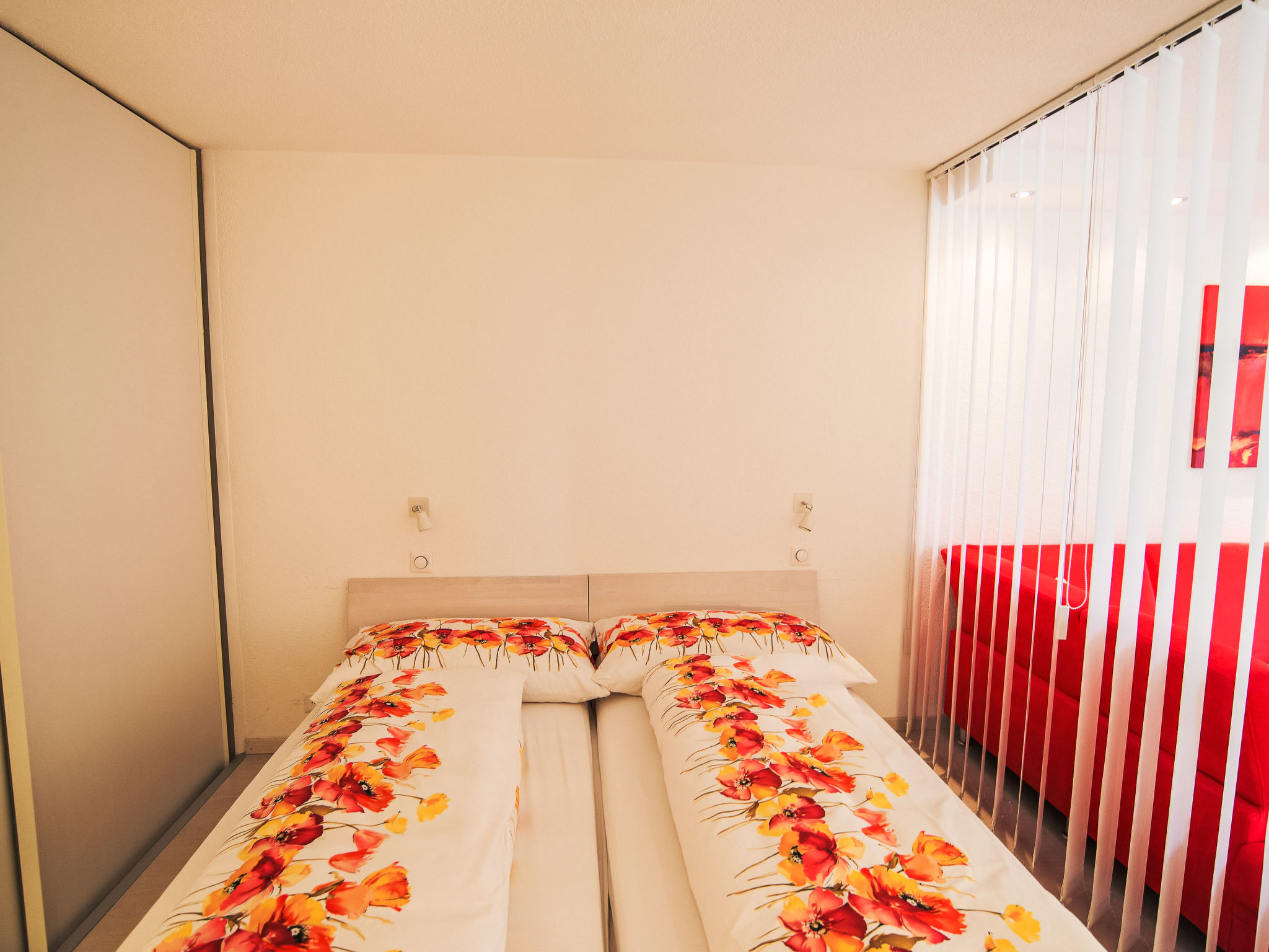"Cristal 62", 1-Zimmer-Wohnung 35 m2 im 3. Stock. Renoviert, schön und gemütlich eingerichtet: Wohn-/Schlafzimmer mit 1 Diwanbett und 1 Doppelbett (2 x 90 cm, Länge 200 cm), Esstisch und Kabel-TV. Ausgang zum Balkon. Offene Küche (Backofen, Geschirrspüler, 4 Glaskeramikplatten, elektrische Kaffeemaschine). Dusche/WC. Parkettboden. Grosser Balkon. Balkonmöbel. Panoramasicht auf die Berge. Zur Verfügung: Haartrockner. Internet (Wireless LAN, gratis). Bitte beachten: Nichtraucher-Unterkunft.