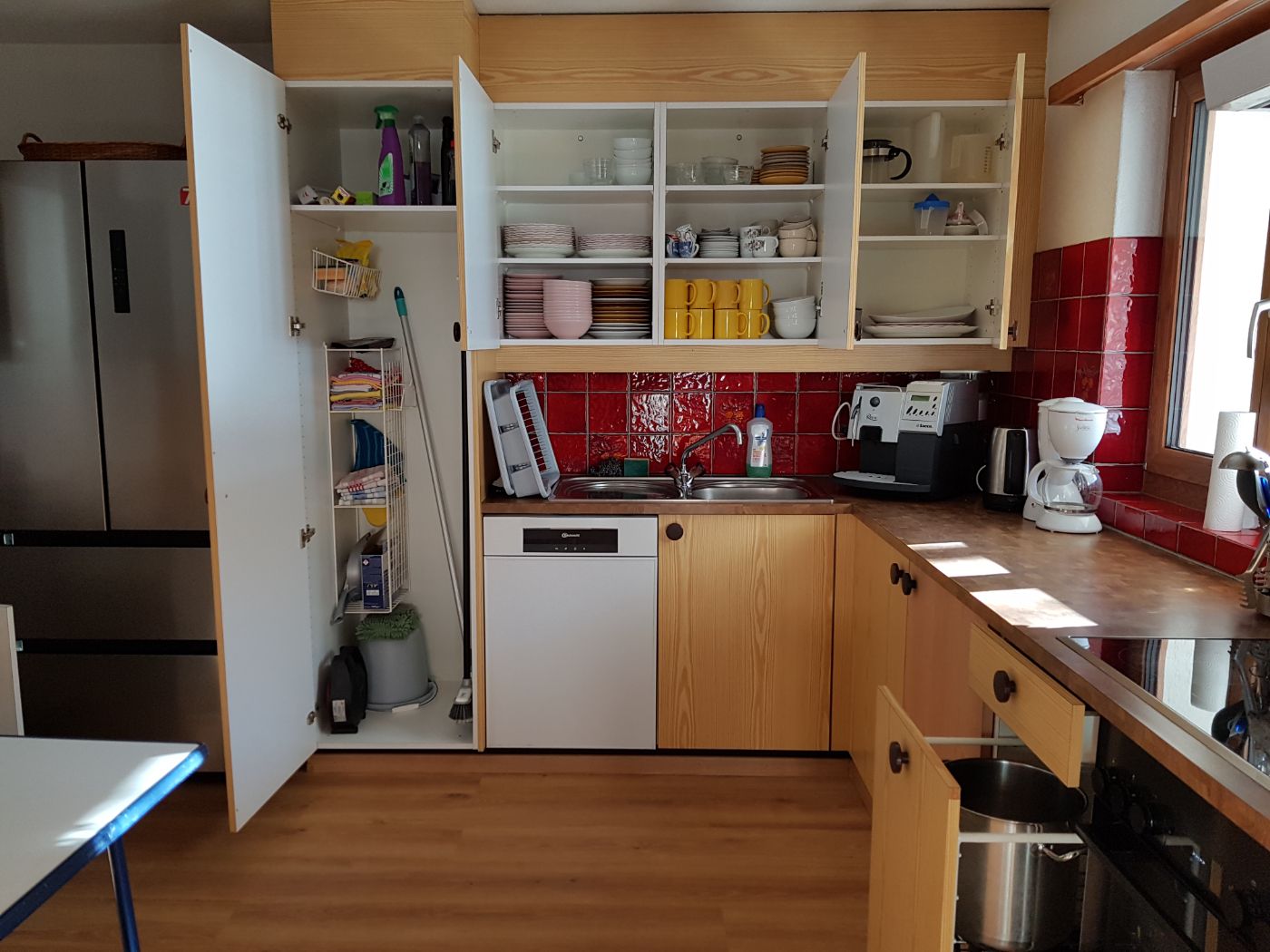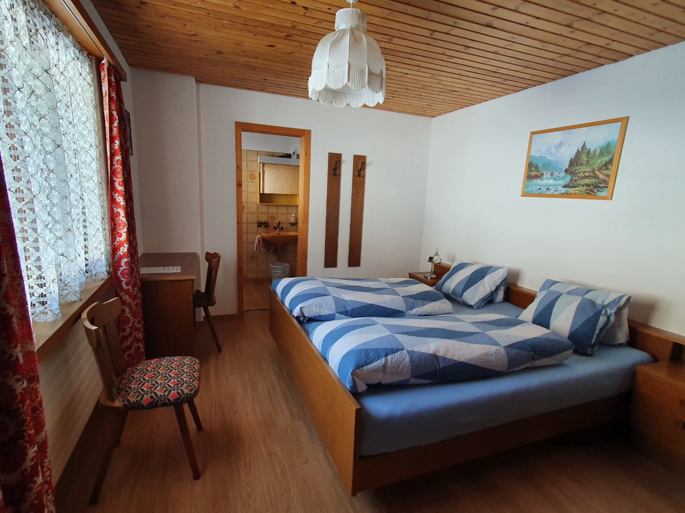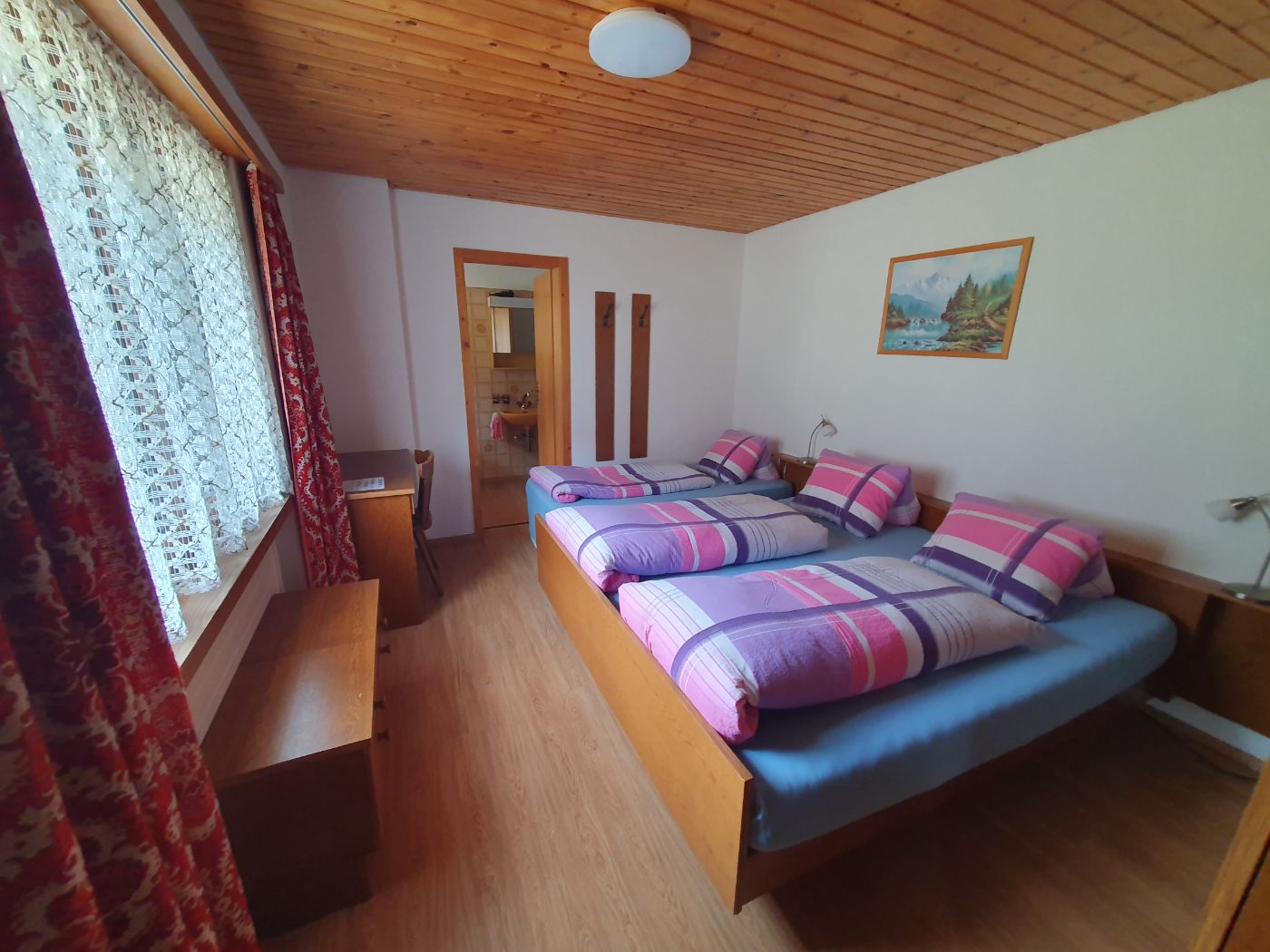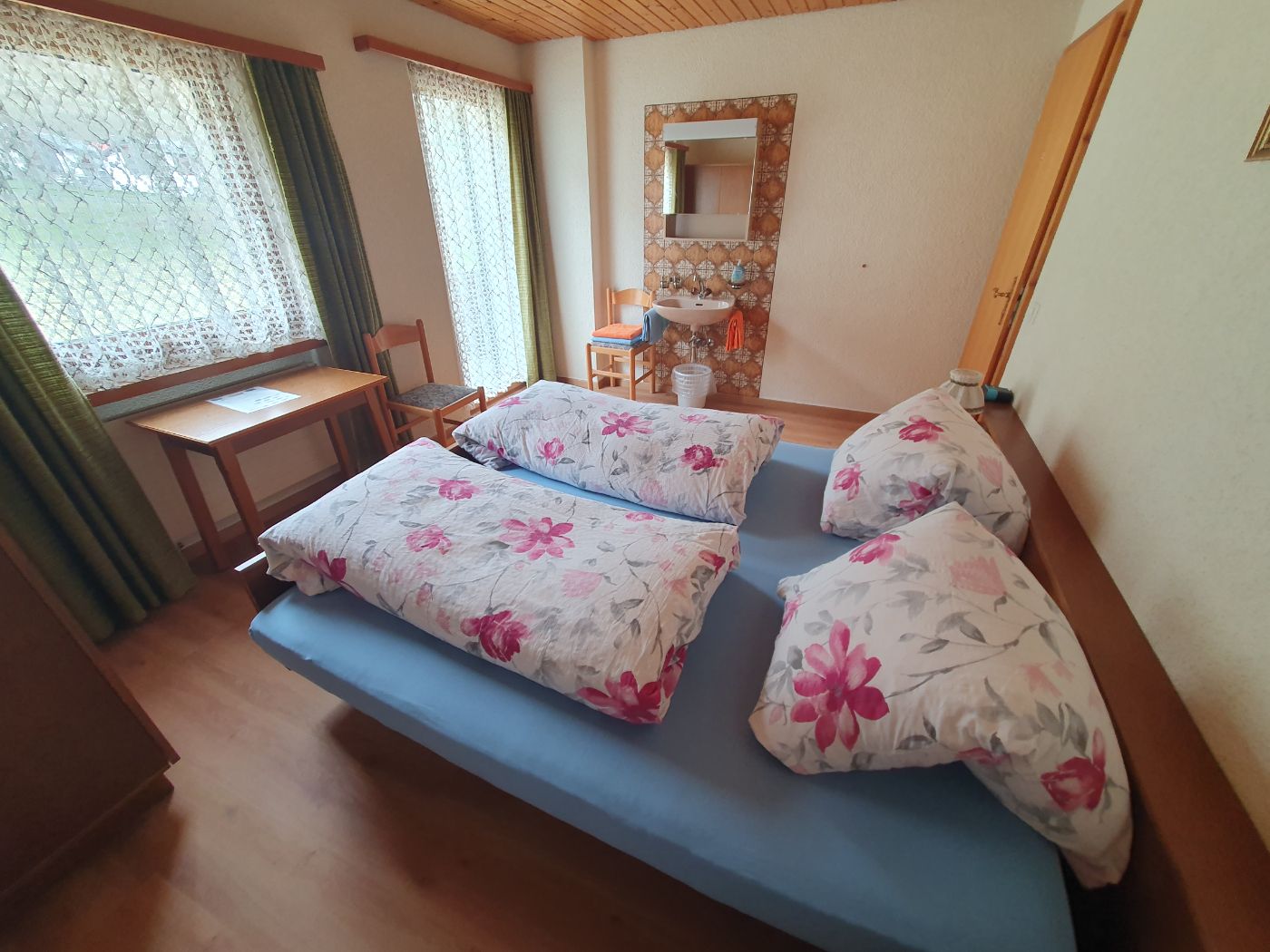Im Haus stehen dir mindestens 3 Doppelzimmer (ab 5 Personen) zur Verfügung – auf Wunsch kannst du auf bis zu 5 Zimmer erweitern. Insgesamt erwarten dich 16 Schlafplätze: im Erdgeschoss drei Zimmer (jeweils mit Doppelbett/Einzelbetten und Extrabetten), im Obergeschoss zwei weitere Zimmer, darunter ein grosses Zimmer mit Doppelbett, zwei Einzelbetten und Extrabett.