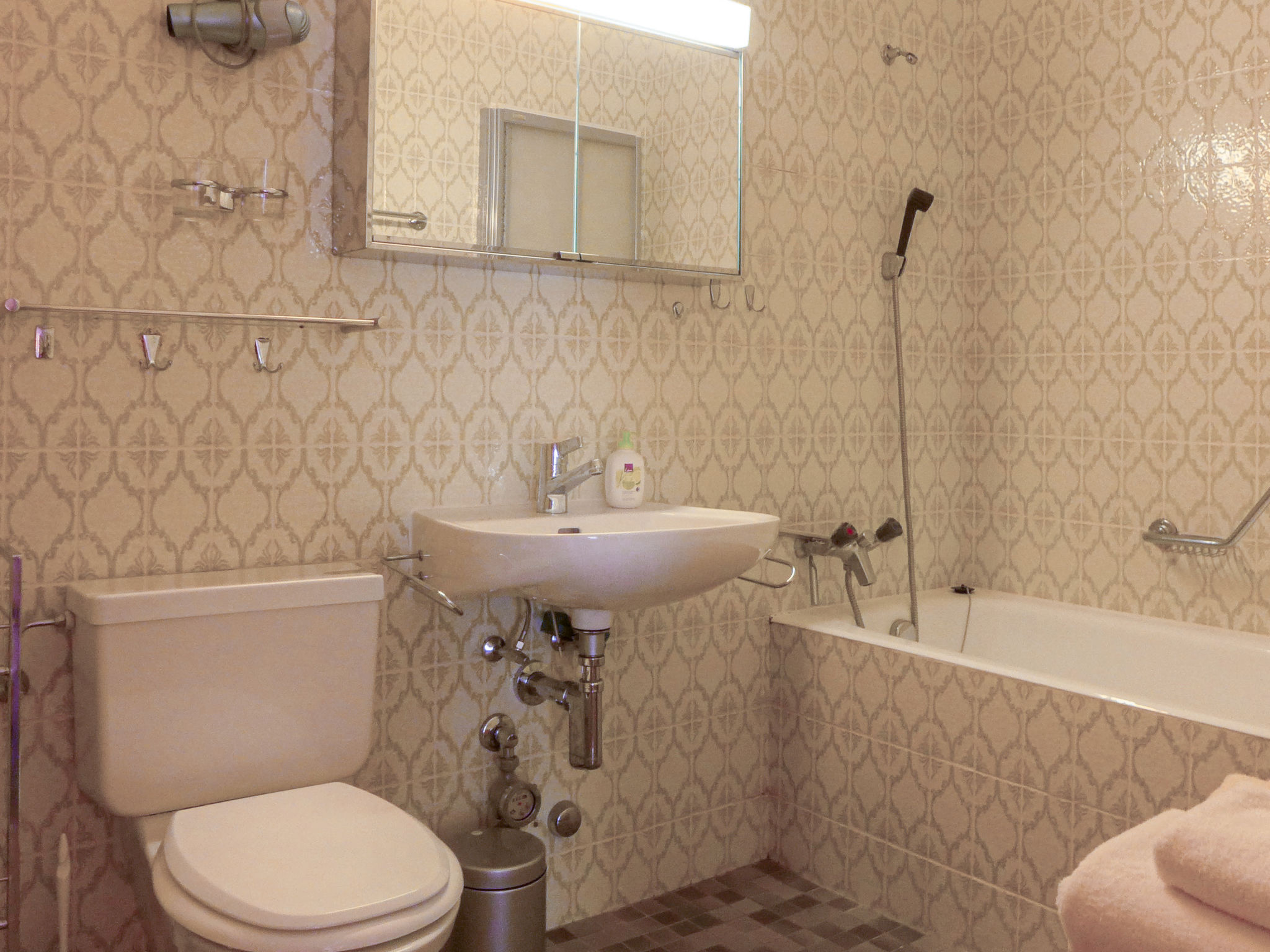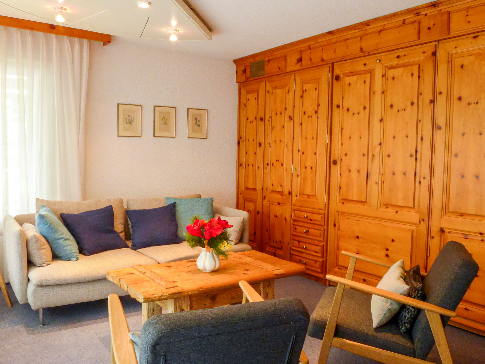 2-Zimmer-Wohnung 60 m2, im Erdgeschoss. Hell, einfach und komfortabel eingerichtet: Wohn-/Schlafzimmer mit 2 Wandschrankbetten (90 cm, Länge 200 cm), Esstisch und TV. Ausgang zum Balkon. 1 Doppelzimmer mit 1 Doppelbett (2 x 90 cm, Länge 200 cm). Kleine Küche (4 Kochplatten, Backofen, Geschirrspüler, Toaster, Wasserkocher, elektrische Kaffeemaschine, Racletteofen, Fondue Set (Chinoise, Käse)). Bad/WC. Balkon. Balkonmöbel. Schöne Sicht auf das Matterhorn. Zur Verfügung: Internet (Wireless LAN, gratis). Bitte beachten: Nichtraucher-Unterkunft.