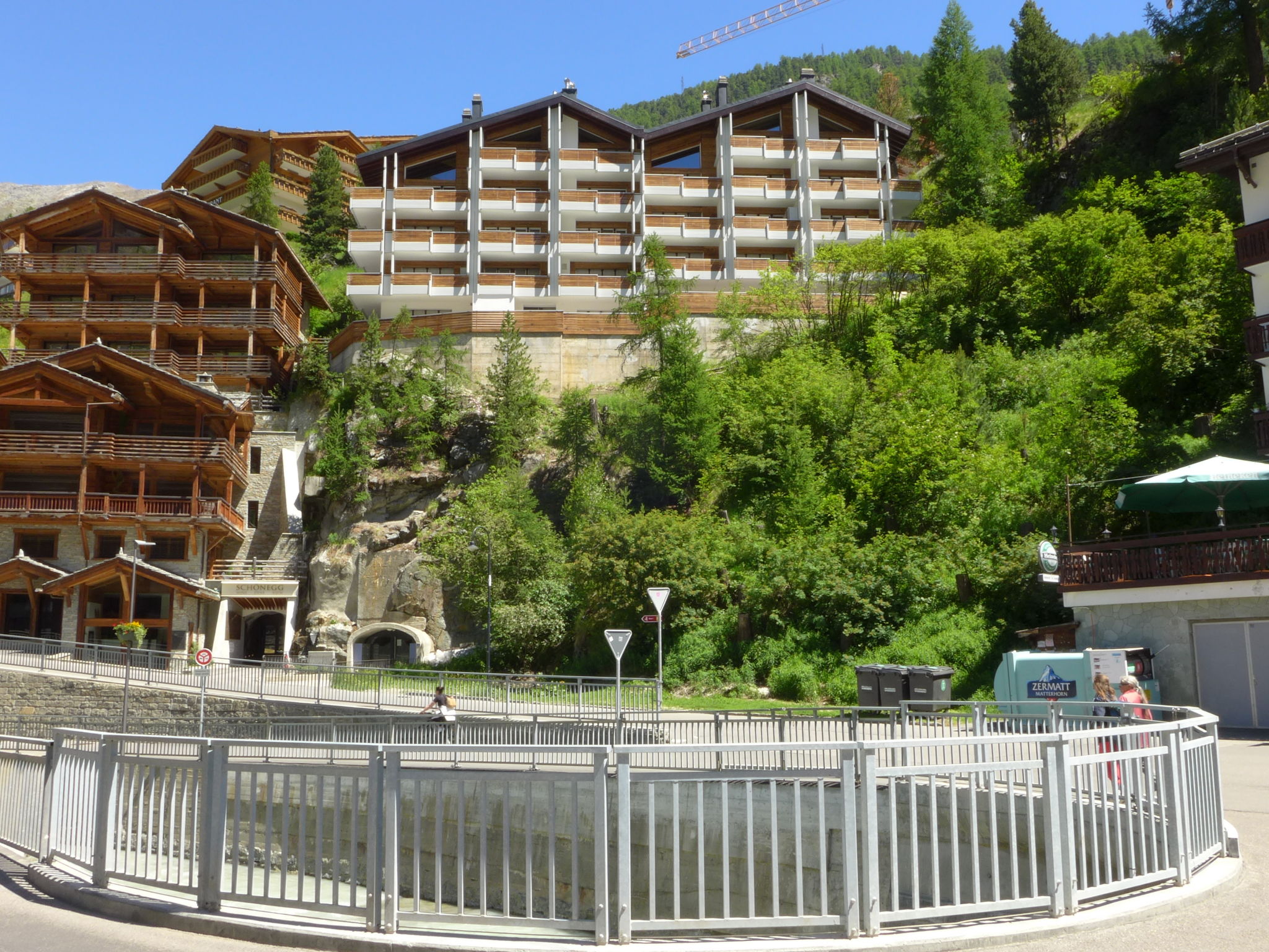Grosses Mehrfamilienhaus "Oasis", auf 5 Stockwerken. Im Ortsteil Wiesti, 500 m vom Zentrum von Zermatt, auf einem Hügel. Im Hause: Fahrstuhl, Skiraum, Zentralheizung. Supermarkt 350 m, Restaurant 60 m, Bäckerei 210 m, Café 60 m, Fahrradverleih 170 m, Zentrum zu Fuss in 10 Minuten erreichbar, Bushaltestelle "Getwingbrücke" 140 m, Bahnstation "Bahnhof Zermatt" 800 m. Bergeisenbahn, Skilift, Skiverleih 170 m, Skibushaltestelle 140 m, Skischule, Kinderskischule 450 m, Kinderspielplatz 300 m. Der Zugang erfolgt mit dem Aufzug bis zum Hauseingang.