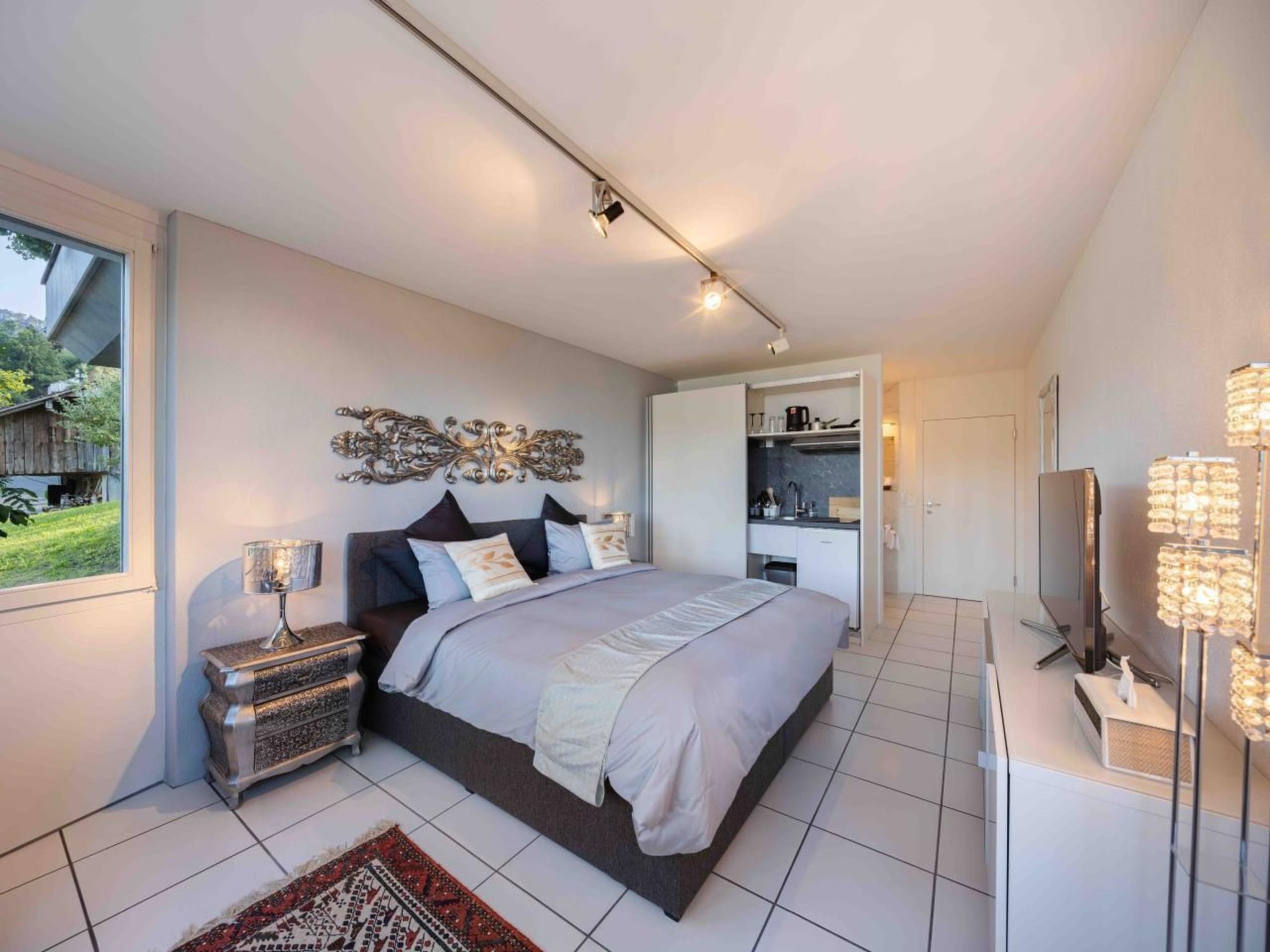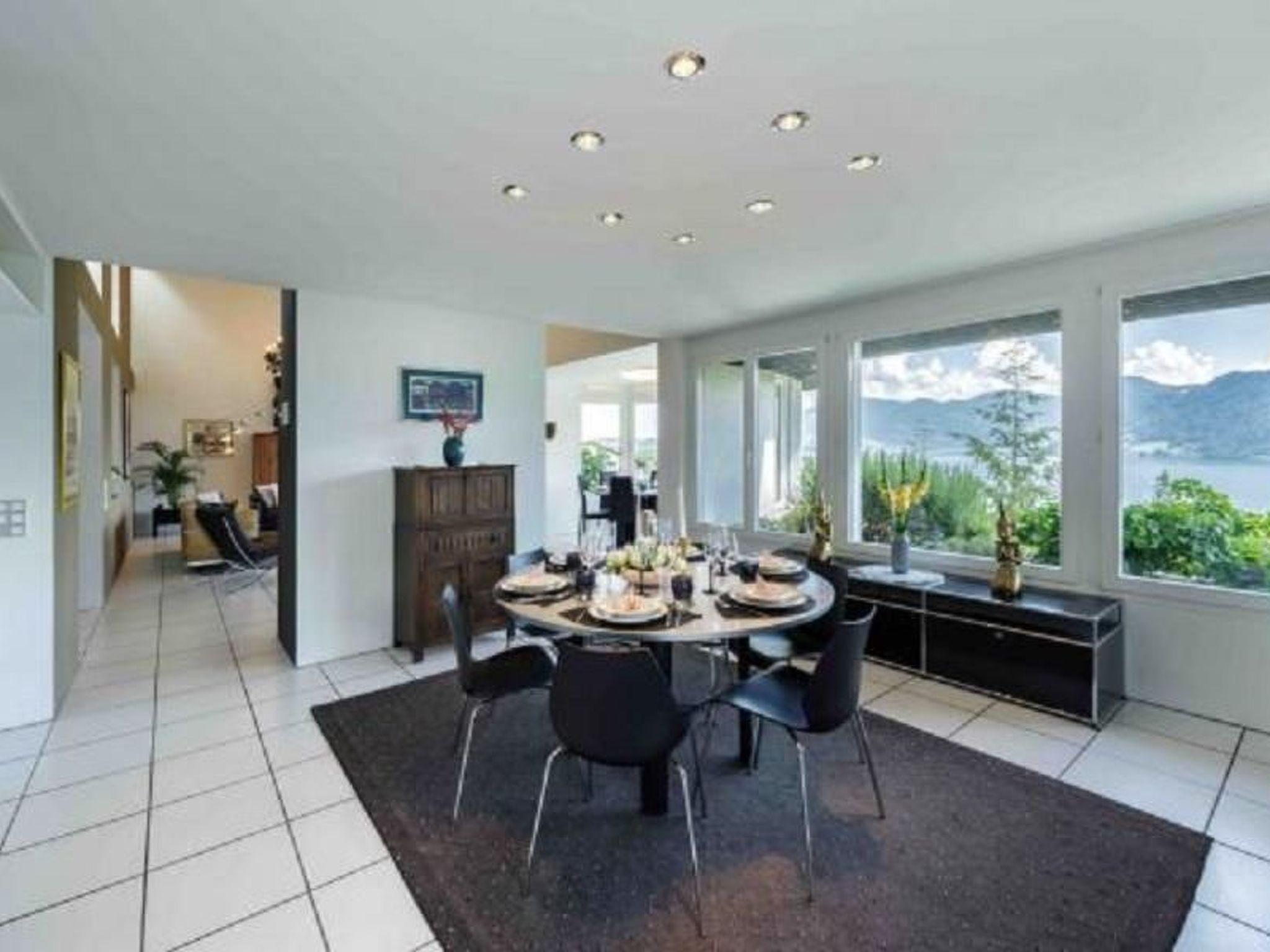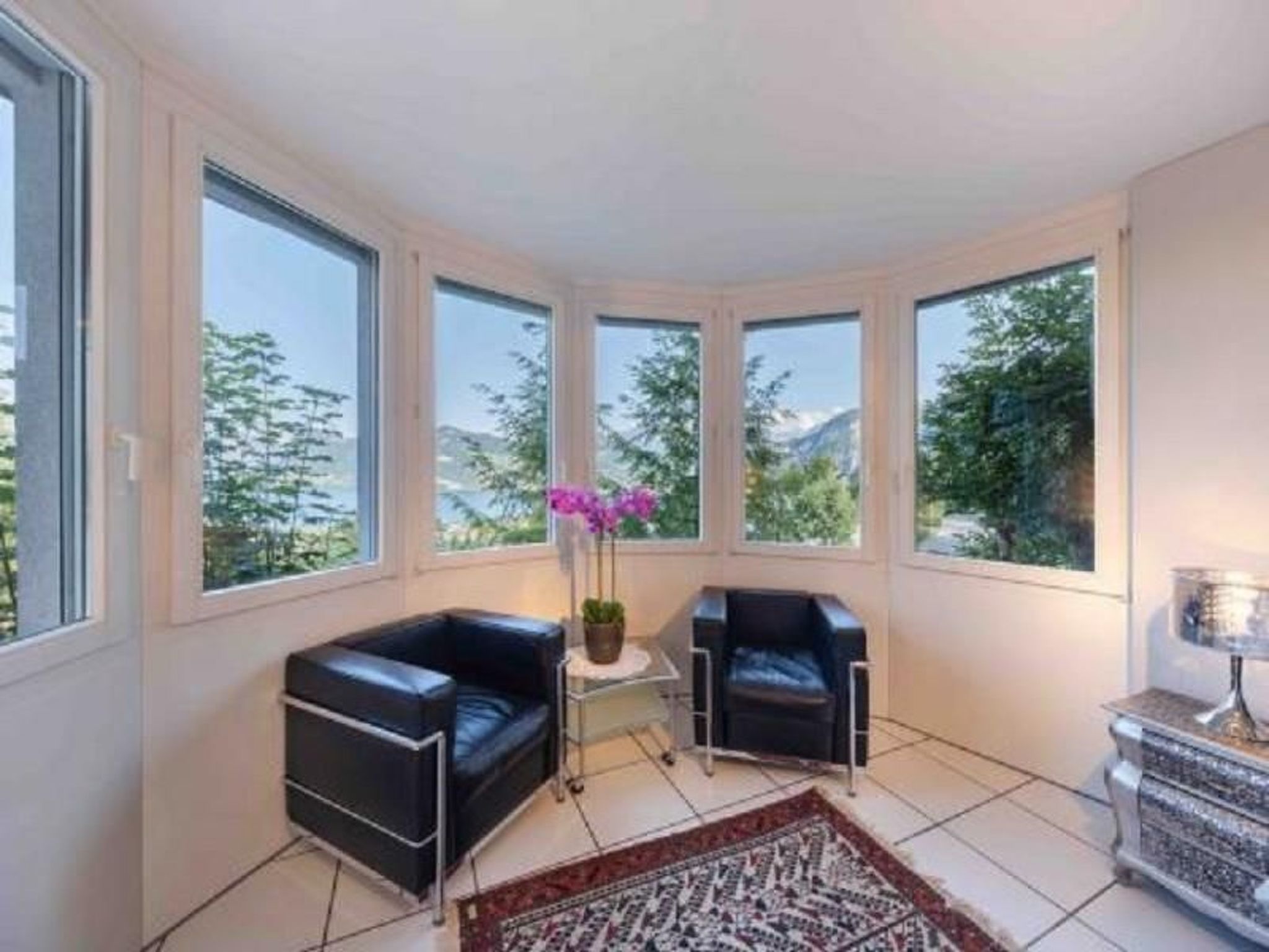 Ortsbeschreibung: Die Villa Ysara liegt in einem Dorf namens Hergiswil am Westufer des Vierwaldstättersees. Die Villa liegt hoch oben auf einem abfallenden Hügel mit Blick auf den Vierwaldstättersee und das darunter liegende Dorf. Es liegt in einer ruhigen Gegend, aber nur 10-15 Autominuten von der historischen Luzerner Altstadt und nur 5 Autominuten vom Ufer des herrlichen Sees entfernt. Der berühmte und majestätische Berg Pilatus liegt weiter westlich und ist von der Villa aus zu sehen.