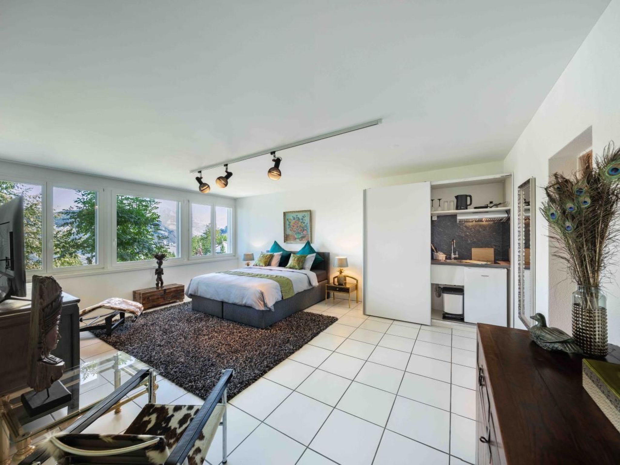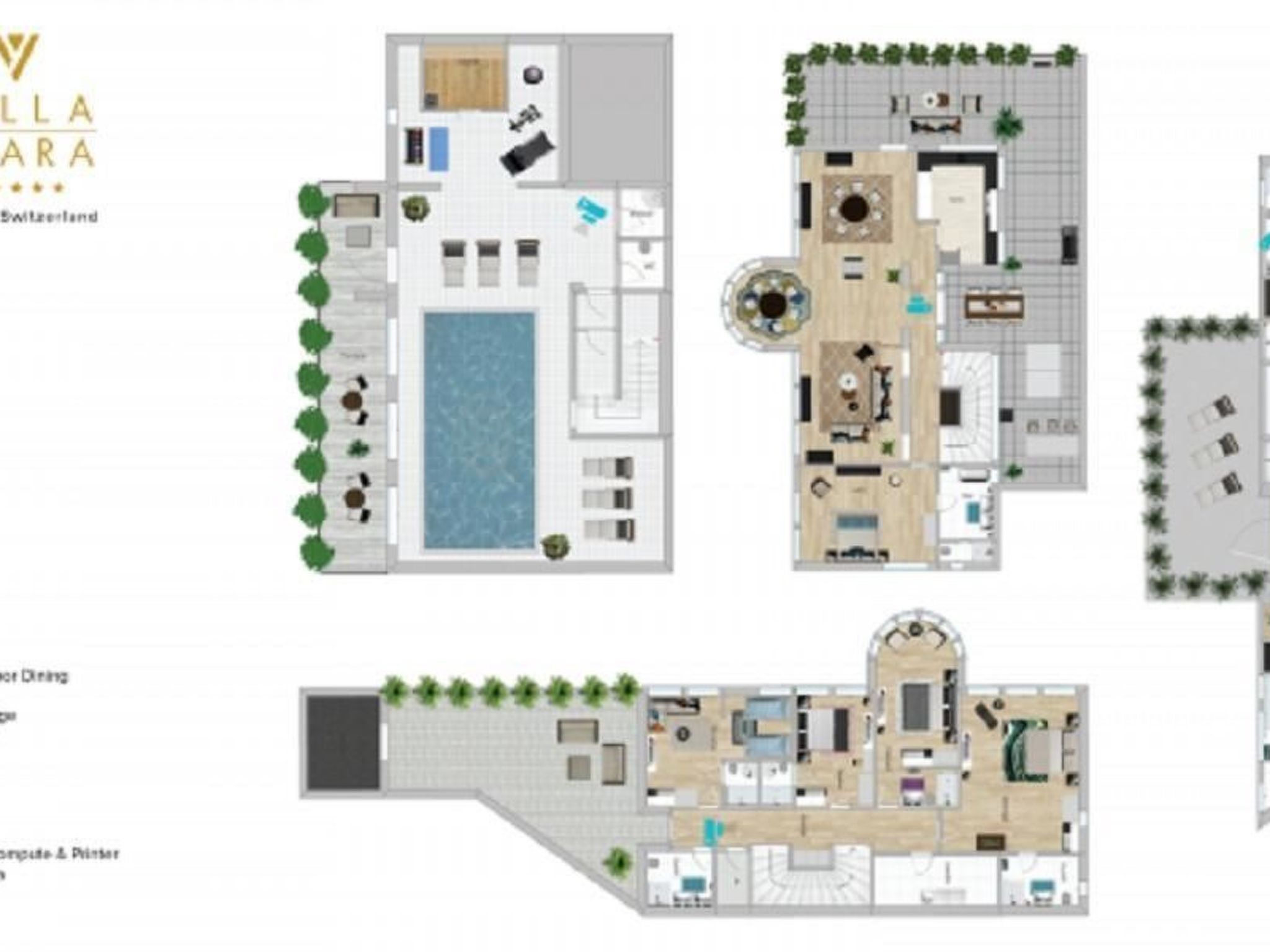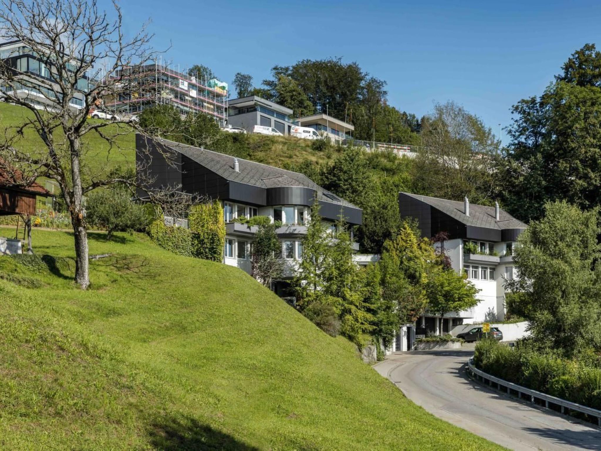 Villa Ysara - 7BR Luxus Pool Villa mit Blick auf den Vierwaldstättersee Die Villa Ysara befindet sich im Dorf Hergiswil, am westlichen Ufer des Vierwaldstättersees. Die Villa liegt hoch auf einem Hügel mit Blick auf den Vierwaldstättersee und das Dorf darunter. Sie befindet sich in einer ruhigen Gegend und ist dennoch nur 10-15 Autominuten von der historischen Luzerner Altstadt und nur 5 Autominuten von den Ufern des wunderschönen Sees entfernt. Der berühmte und majestätische Pilatus befindet sich weiter westlich und kann von der Villa aus gesehen werden. Die Villa Ysara verfügt über sieben Schlafzimmer mit eigenem Bad in verschiedenen Mietkonfigurationen. Der Baustil ist modern, doch die Inneneinrichtung ist eine Mischung aus Moderne, Antiquitäten und Kunst des 20. Jahrhunderts. Jahrhunderts. Das Haus ist komfortabel und gemütlich, aber dennoch sehr luxuriös, und es ist durchweg sehr geräumig. Mit seinen sieben Schlafzimmern und den komfortablen Wohnräumen, die sich über vier Etagen verteilen, ist es der ideale Ort für große Gruppen oder Familien, um Luxus und Komfort zusammen mit der schönsten Kulisse, die man sich vorstellen kann, in einer der begehrtesten Gegenden der Schweiz zu genießen. Auch wenn Sie nicht immer Lust haben, diesen besonderen Ort zu verlassen, gibt es in der Umgebung viele Attraktionen, die einen Besuch wert sind und die Sie leicht erreichen können, sei es mit dem Auto, dem Zug oder dem Schiff. Zusätzlich zu den Innenräumen gibt es ausreichend Sitz- und Essgelegenheiten im Freien, einschließlich eines Grillplatzes, um die jahreszeitlichen Veränderungen des Wetters zu nutzen. Die Villa wurde von den renommierten Reinhard Architekten entworfen und fügt sich sehr gut in die Hanglage ein, wobei die Grundstücksfläche maximal ausgenutzt und die unglaubliche Aussicht maximiert wurde. Die Eigentümer haben die Villa mit aus der ganzen Welt gekauften und gesammelten Gegenständen eingerichtet und dekoriert. In der Villa Ysara gibt es keinen Mangel an Außenwohnbereichen. Es gibt drei verschiedene Außenwohnbereiche, die Sie während Ihres Aufenthalts genießen können. Im zweiten Stock, wenn Sie aus dem Hauptwohnzimmer heraustreten, befindet sich ein Sitz- und Essbereich im Freien mit Grillmöglichkeiten. Dieser Bereich geht L-förmig in einen Bar- und Unterhaltungsbereich über, der sich hinter der Küche befindet und mit einem Weinkühlschrank und einer Tischtennisplatte ausgestattet ist, an der Sie Ihren Wettkampfgeist testen können. Im dritten Stock befindet sich eine große Außenterrasse mit Liegestühlen, von denen aus Sie die Aussicht und die frische Bergluft genießen können. In der ersten Etage, in der sich das Indoor-Schwimmbad, die Sauna und der Fitnessbereich befinden, gibt es einen Außensitzbereich mit Liegestühlen, damit Sie während Ihres Aufenthalts die Sonne, die Entspannung und den Komfort genießen können. Die Villa Ysara wurde so konzipiert, dass sie die Vorteile ihrer ruhigen und herrlichen Lage hoch über dem Vierwaldstättersee voll ausschöpft und dennoch in der Nähe all dessen liegt, was die Gegend zu bieten hat. Der Architekt hat das Grundstück optimal genutzt, um den schönsten Panoramablick auf den See und die umliegenden Berge zu ermöglichen. Es gibt einen kostenlosen Shuttle-Bus von der Villa zum Bahnhof.