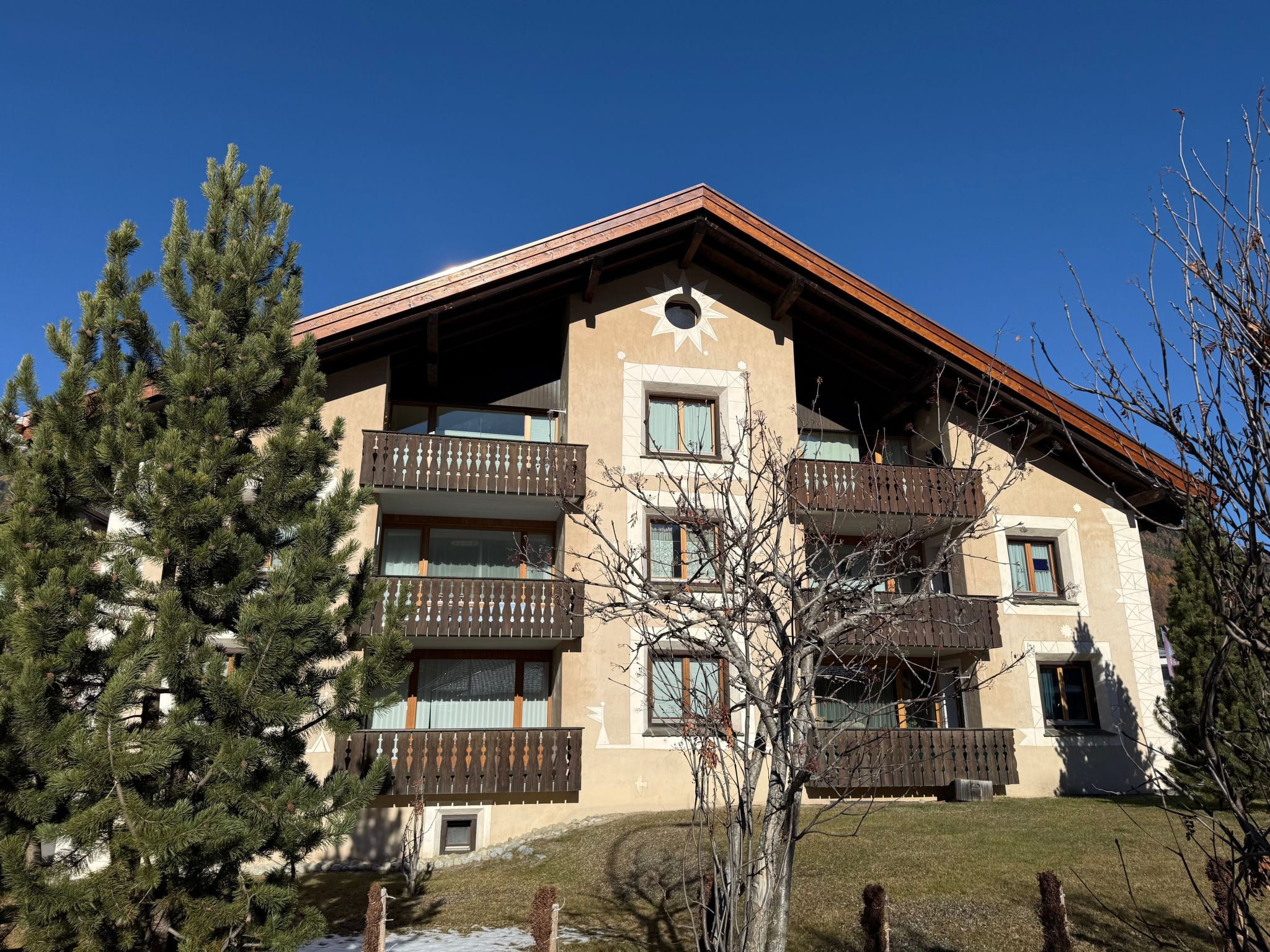 Die Wohnung liegt zentral im Dorf, nur 100 Meter von Bahnhof und Bushaltestelle entfernt – perfekt angebunden für Ausflüge nach St. Moritz, Pontresina oder zum Nationalpark.