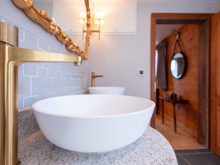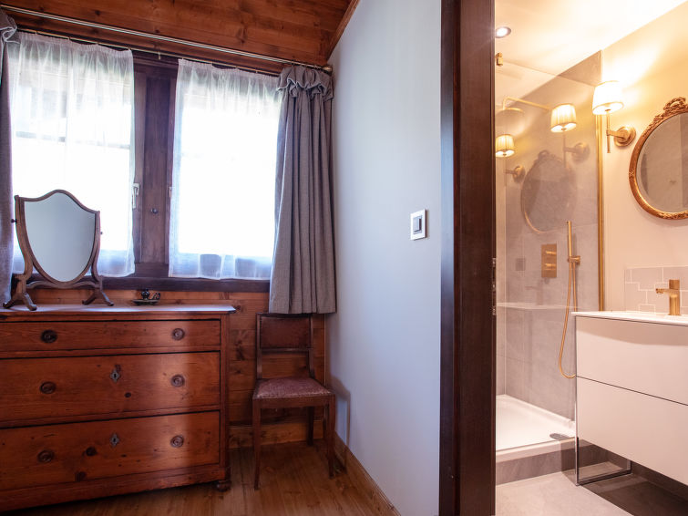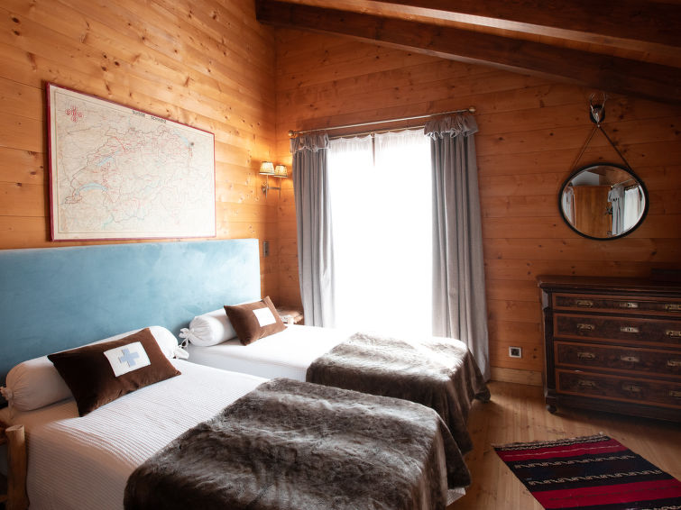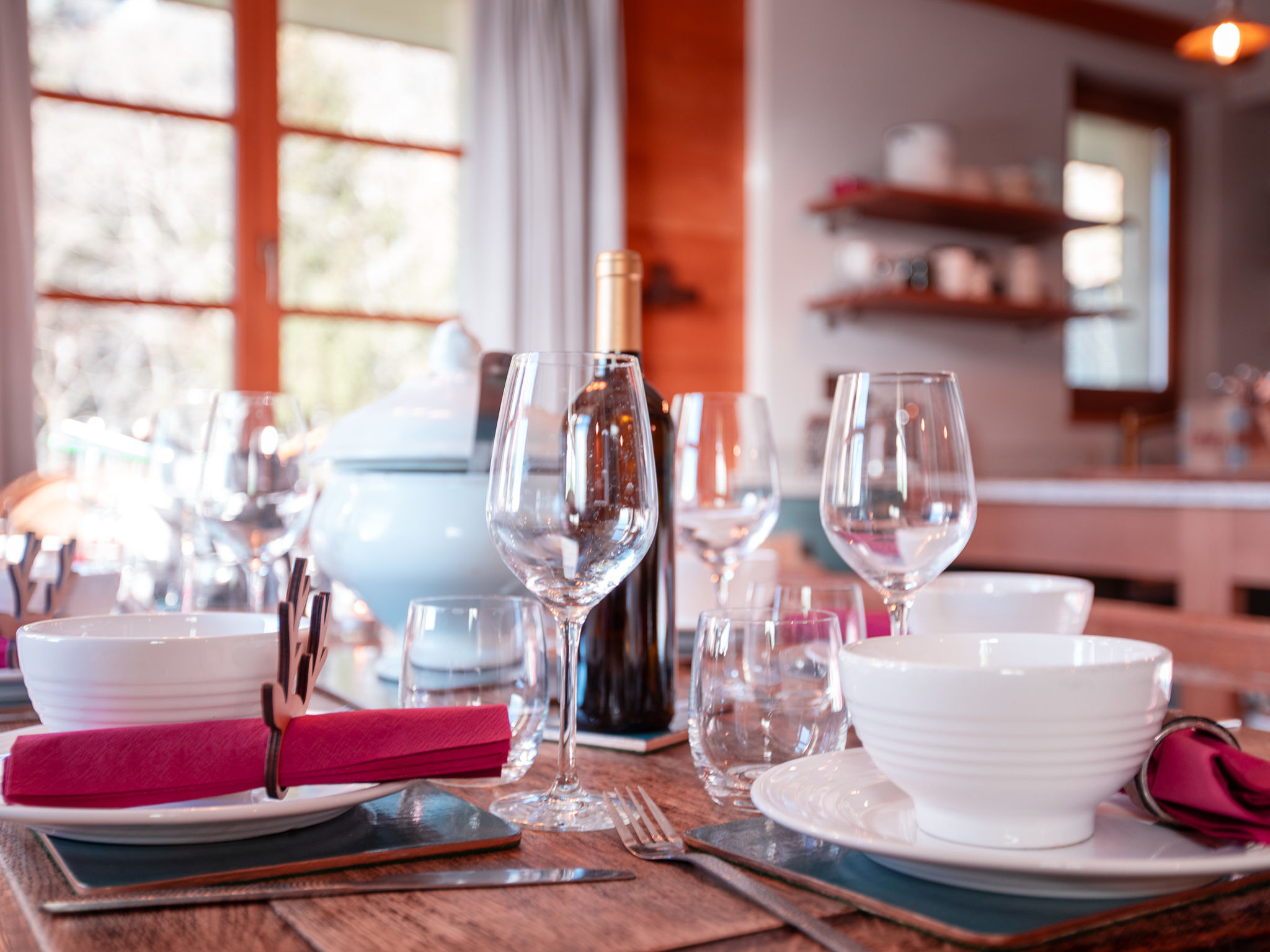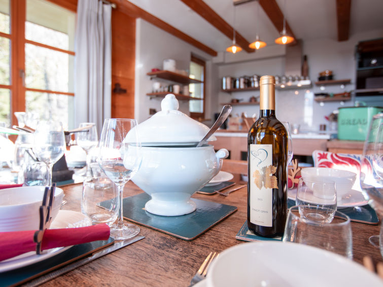 "Chalet Tetras", 8-Zimmer-Chalet 220 m2 auf 3 Stockwerken, Südlage. Sehr komfortabel und geschmackvoll eingerichtet: kleines Wohnzimmer mit TV (Flachbildschirm). 1 Zimmer mit 1 franz. Bett (160 cm, Länge 200 cm), Bad. Ausgang zum Garten, Richtung Süden. Grosse Küche (Backofen, Geschirrspüler, 4 Induktionskochplatten, Toaster, Wasserkocher, Mikrowelle, elektrische Kaffeemaschine, Kapseln für die Kaffeemaschine (Dolce Gusto) extra, Racletteofen, Fondue Set (Käse)) mit Esstisch. Ausgang zum Garten, Richtung Süden. Sep. WC. Obergeschoss: grosses Wohnzimmer mit offenem Kamin. Ausgang zur Terrasse, Richtung Süden und Richtung Westen. 1 Doppelzimmer mit 1 franz. Bett (180 cm, Länge 200 cm), Bad/WC und Doppelwaschbecken. Ausgang zur Terrasse, Richtung Westen. 2. Obergeschoss: 1 Doppelzimmer mit 2 Betten (90 cm, Länge 200 cm). Ausgang zum Balkon, Richtung Süden. 1 Doppelzimmer mit 2 Betten (90 cm, Länge 200 cm). Ausgang zum Balkon, Richtung Süden. 1 Doppelzimmer mit 2 Betten (90 cm, Länge 200 cm), Waschbecken und Dusche/WC. Bad/Dusche/WC. Kleiner Balkon, Südlage, Terrasse, Südlage und Westlage, kleiner Garten, Südlage. Terrassenmöbel. Eingeschränkte Sicht auf die Berge. Zur Verfügung: Waschmaschine, Wäschetrockner. Internet (WLAN, gratis). Parkplatz (2 Autos).