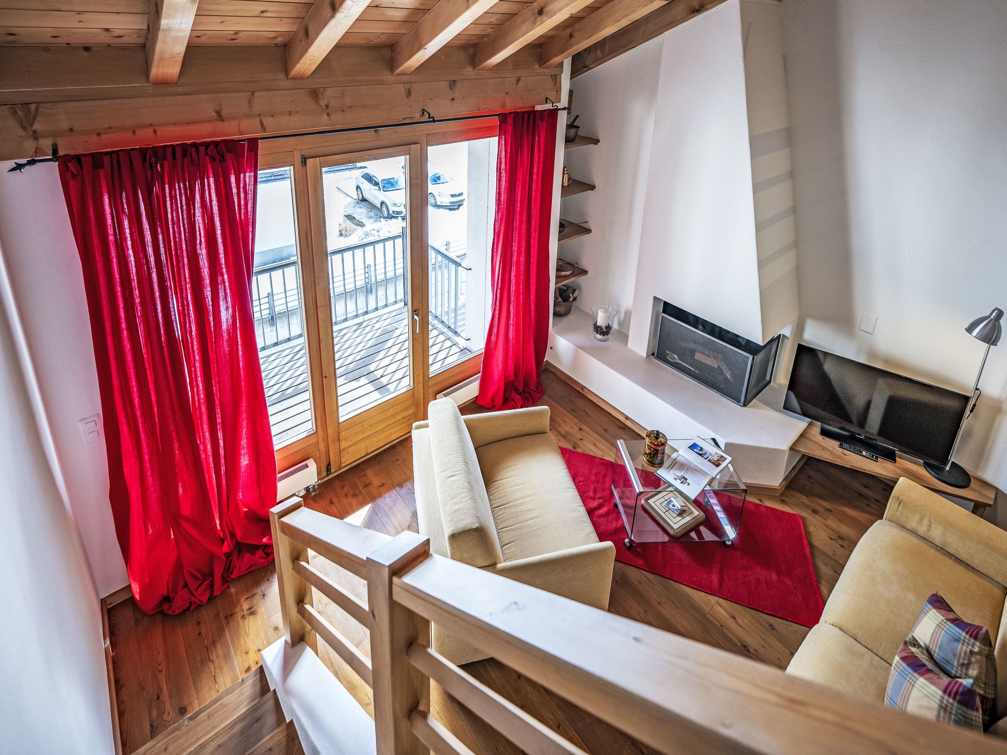 "Chesa Alossa", 3-Zimmer-Maisonette-Wohnung 75 m2 im 1. Stock. Einfach und gemütlich eingerichtet: offenes Wohn-/Esszimmer mit offenem Kamin, Esstisch, Küchenblock und TV (Flachbildschirm). Ausgang zum Balkon. 1 kleines Zimmer mit 1 franz. Bett (1 x 160 cm, Länge 200 cm). Offene grosse Galerie mit 1 franz. Bett (1 x 160 cm, Länge 200 cm), Dusche/WC. Offene Küche (Backofen, Geschirrspüler, 4 Glaskeramikplatten, Toaster, Wasserkocher, Tiefkühler, elektrische Kaffeemaschine, Kapseln für die Kaffeemaschine (Nespresso) extra). Bad/WC. Heizung. Parkettboden. Sehr schöne Sicht auf die Berge und die Landschaft. Zur Verfügung: Bügeleisen, Haartrockner. Internet (WLAN, gratis). Garage Nr. Scavino (1 Auto) beim Haus, Höhe 195 cm, Breite 230 cm. Bitte beachten: nicht geeignet für Kinder unter 6 Jahren. Nichtraucher-Unterkunft, Nichtraucher-Haus. Maximal 2 Haustiere/Hunde erlaubt. Kein Fahrstuhl. :InnHub Bauprojekt vor dem Haus ca. 30 m (März 2025- ca. März 2028) - während der Schneesaison wird nicht gebaut.