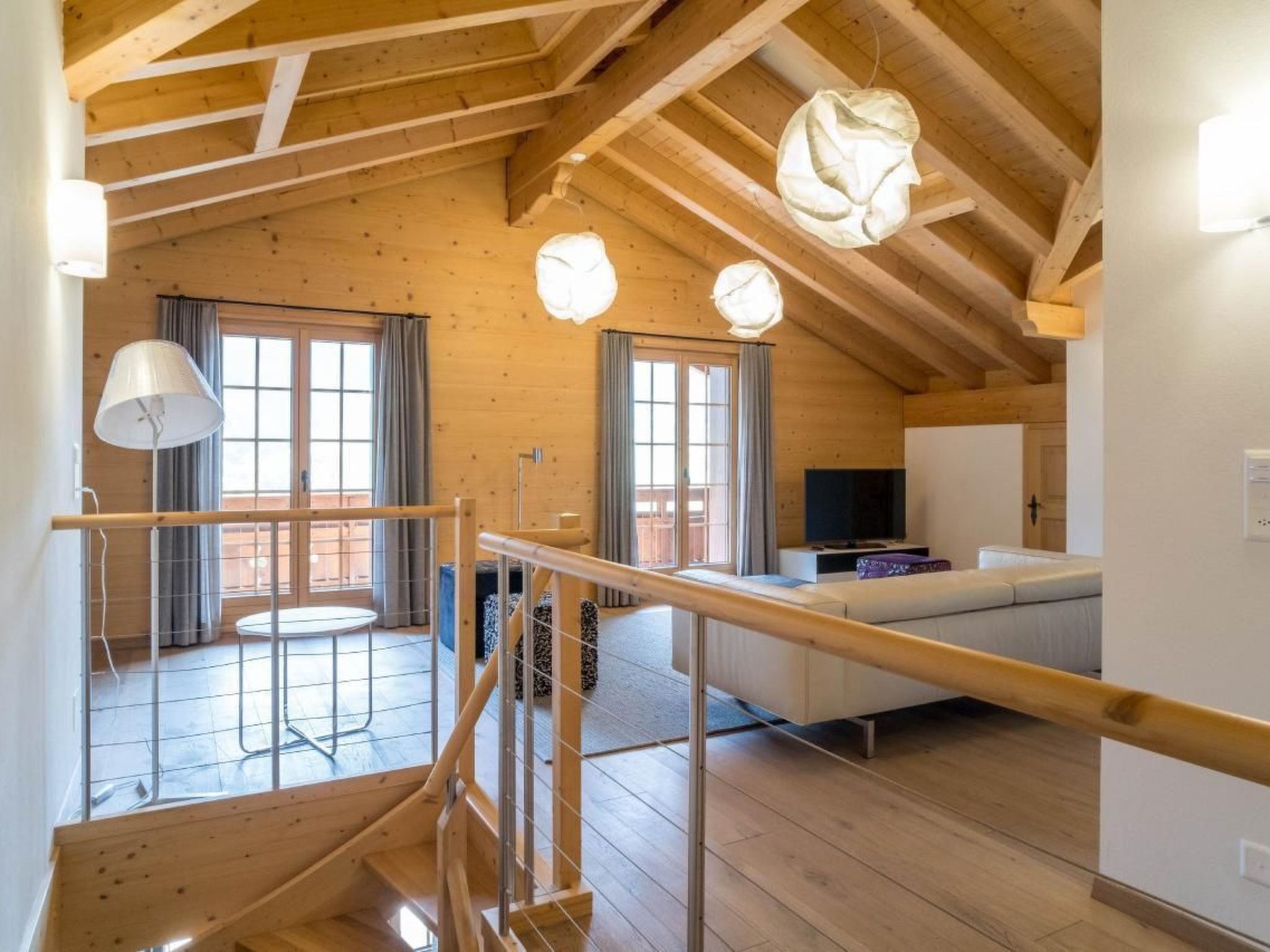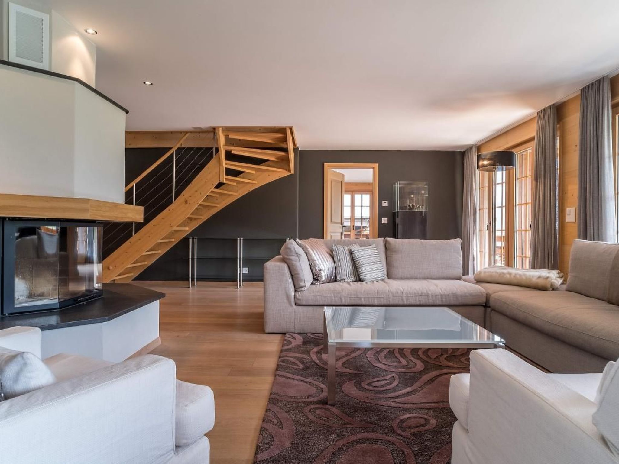 Luxus pur erwartet Sie in der 6.5-Zimmerwohnung auf 266m2, im Dachgeschoss mit Galerie. Die Wohnung im eleganten Alpinlook verfügt über fünf Schlafzimmer mit Doppelbetten, vier davon mit Badezimmer en suite, jeweils mit Badewanne und/oder Dusche und WC und ein separates Badezimmer mit Badewanne und WC. Die Wohnung verfügt über eine offene, sehr gut ausgestattete Küche, die an den grosszügigen Wohn- und Essbereich mit Cheminée anschliesst. Sechs Balkone gehören zur Wohnung – damit haben Sie zu jeder Zeit optimale Aussichten auf die wunderschöne Bergwelt. Mit dem Lift gelangen Sie direkt aus der Tiefgarage in die Wohnung.