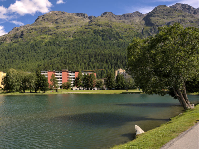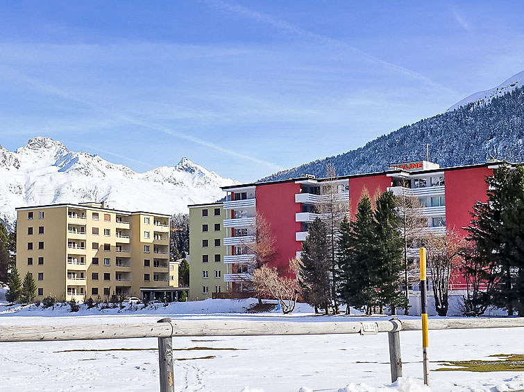 St.Moritz-Bad: :Schwimmbad in der Nebensaison zum Teil geschlossen, grosses, schönes Appartementhaus "Appartmenthaus Skyline", auf 6 Stockwerken. Sonnige Lage, 200 m vom See, 1 km vom Skigebiet. Zur Mitbenutzung: Hallenbad (11 x 4 m). Im Hause: Fahrstuhl, Skiraum, Zentralheizung, Waschmaschine, Wäschetrockner (zur Mitbenutzung, extra). Parkplatz. Einkaufsgeschäft, Supermarkt 700 m, Restaurant 140 m, Bäckerei 500 m, Café 600 m, Fahrradverleih 600 m, Bushaltestelle "St. Moritz Bad, Sonne" 150 m, Bahnstation 1.9 km, Hallenbad 600 m, Thermalbad "Heilbadzentrum St.Moritz" 750 m, See St. Moritzer See 200 m. Golfplatz (18 Loch) 7.3 km, Surfschule 5.5 km, Tennis 1.2 km, Tennishalle 1.2 km, Minigolf 600 m, Reitstall 3 km, Wanderwege ab Haus, Radweg 200 m, Luftseilbahn 800 m, Skilift 800 m, Skipisten, Skiverleih, Skibushaltestelle 150 m, Skischule 1.9 km, Kinderskischule 1.9 km, Schlittelbahn 5.6 km, Langlaufloipe 300 m, Eisfeld 350 m, Kinderspielplatz 700 m. Nahe gelegene Sehenswürdigkeiten: Segantini Museum 2.2 km, Engadiner Museum 1.1 km, Mili Weber-Haus 2.8 km, Olympia Bob Run mit Museum 2.5 km, Nietzsche Museum in Sils-Maria 9.7 km. Bekannte Skigebiete sind gut erreichbar: Corviglia Piz Nair 800 m, Corvatsch - Furtschellas 6.7 km, Diavolezza - Lagalb 19.5 km. Bekannte Seen in der Umgebung sind gut erreichbar: St.Moritzer See 200 m, Silvaplaner See 5.4 km, Silser See 9.6 km. Wandergebiete: Corvialia Piz Nair, Corvialia Piz Nair, Muottas Muragl. Die Schlüsselübergabe findet bei der Agentur Interhome in St. Moritz Bad statt.