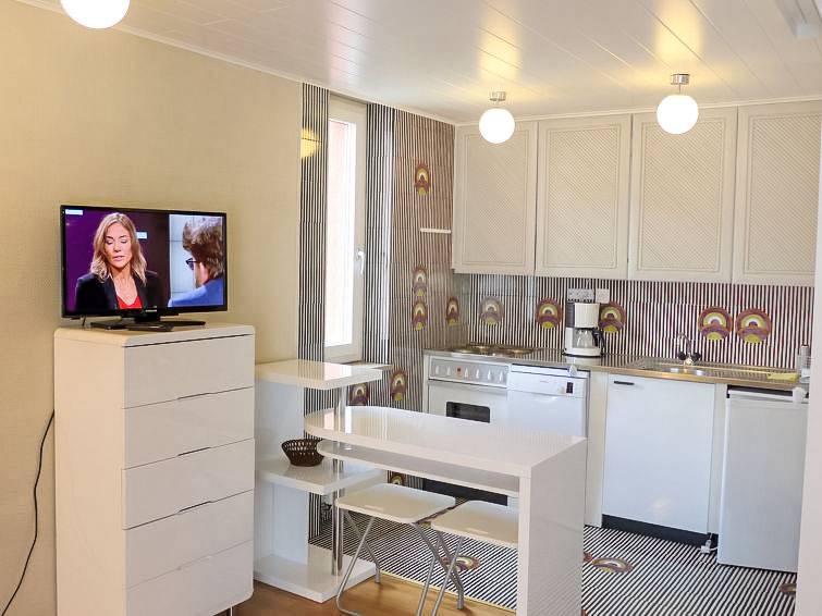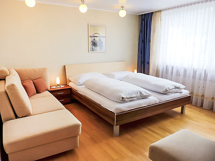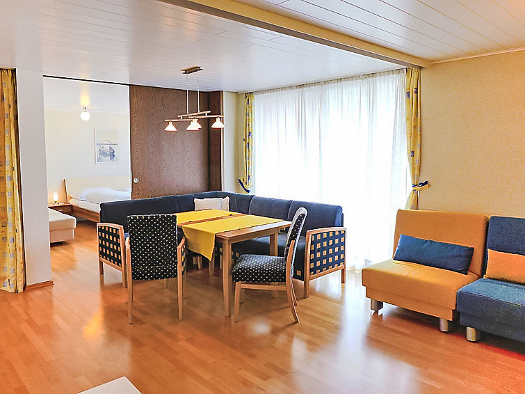 "Appartmenthaus Skyline 309", 2-Zimmer-Wohnung 53 m2 im 3. Stock. Hell, komfortabel eingerichtet: Wohn-/Schlafzimmer mit 2 Diwanbetten (90 cm, Länge 200 cm), Esstisch, Sat-TV und Radio. Ausgang zum Balkon, Richtung Südwesten. 1 Zimmer mit Schiebetür mit 1 Doppelbett (2 x 85 cm, Länge 190 cm). Offene Küche (4 Kochplatten, Backofen, Geschirrspüler, Toaster, Wasserkocher, elektrische Kaffeemaschine). Bad/WC. Heizung. Parkettboden. Schöne Sicht auf die Berge und die Ortschaft. Zur Verfügung: Haartrockner. Internet (Wireless LAN, gratis). Parkplatz beim Haus. Geeignet für Familien.