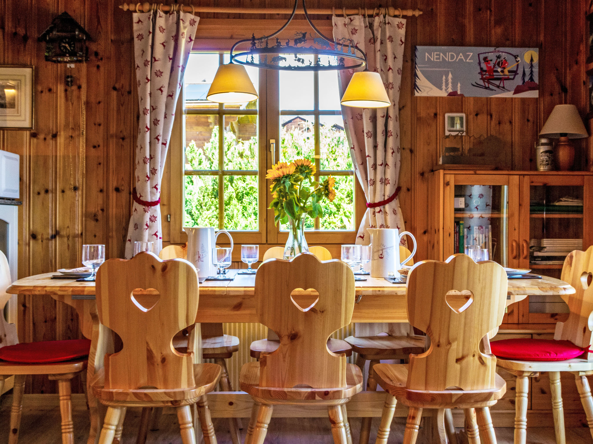 "Mirabeau 8", 6-Zimmer-Chalet 105 m2 auf 2 Stockwerken, Ostlage. Teilweise abgeschrägt, teilweise renoviert im Jahre 2024, komfortabel und schön eingerichtet: Eingang. Kleines Wohn-/Esszimmer mit offenem Kamin, Kabel-TV und Stereoanlage. Ausgang zum Garten, zur Terrasse. Wohnzimmer mit Kabel-TV. 1 Kinderzimmer mit 1 x 2 Etagenbetten (90 cm, Länge 190 cm). Offene Küche (Backofen, Geschirrspüler, 4 Glaskeramikplatten, Toaster, Wasserkocher, Mikrowelle, Tiefkühler, elektrische Kaffeemaschine, Kapseln für die Kaffeemaschine (Nespresso) extra, Racletteofen, Fondue Set (Käse)). Dusche/WC. E-Heizung. Obergeschoss: 1 Zimmer mit 1 Doppelbett (2 x 80 cm, Länge 200 cm). Ausgang zum Balkon, Richtung Osten. 1 kleines Zimmer mit 1 x 2 Etagenbetten (80 cm, Länge 190 cm). 1 Zimmer mit 2 Betten (90 cm, Länge 200 cm). Ausgang zum Balkon, Richtung Osten. Dusche/WC. Balkon, Ostlage, Terrasse, Ostlage. Terrassenmöbel, Gartengrill (mobil), Liegestühle. Sehr schöne Sicht auf die Berge und das Tal. Zur Verfügung: Waschmaschine, Wäschetrockner, Kinderhochstuhl, Babybett, Haartrockner. Internet (WLAN, gratis). Parkplatz (1 Auto), Garage (1 Auto), Höhe 200 cm, Breite 240 cm. Bitte beachten: Nichtraucher-Unterkunft.