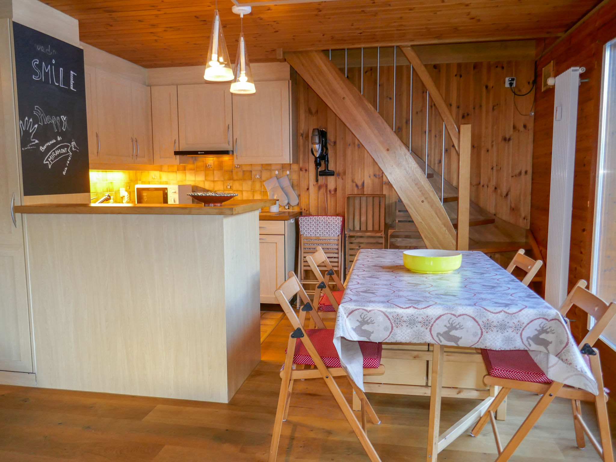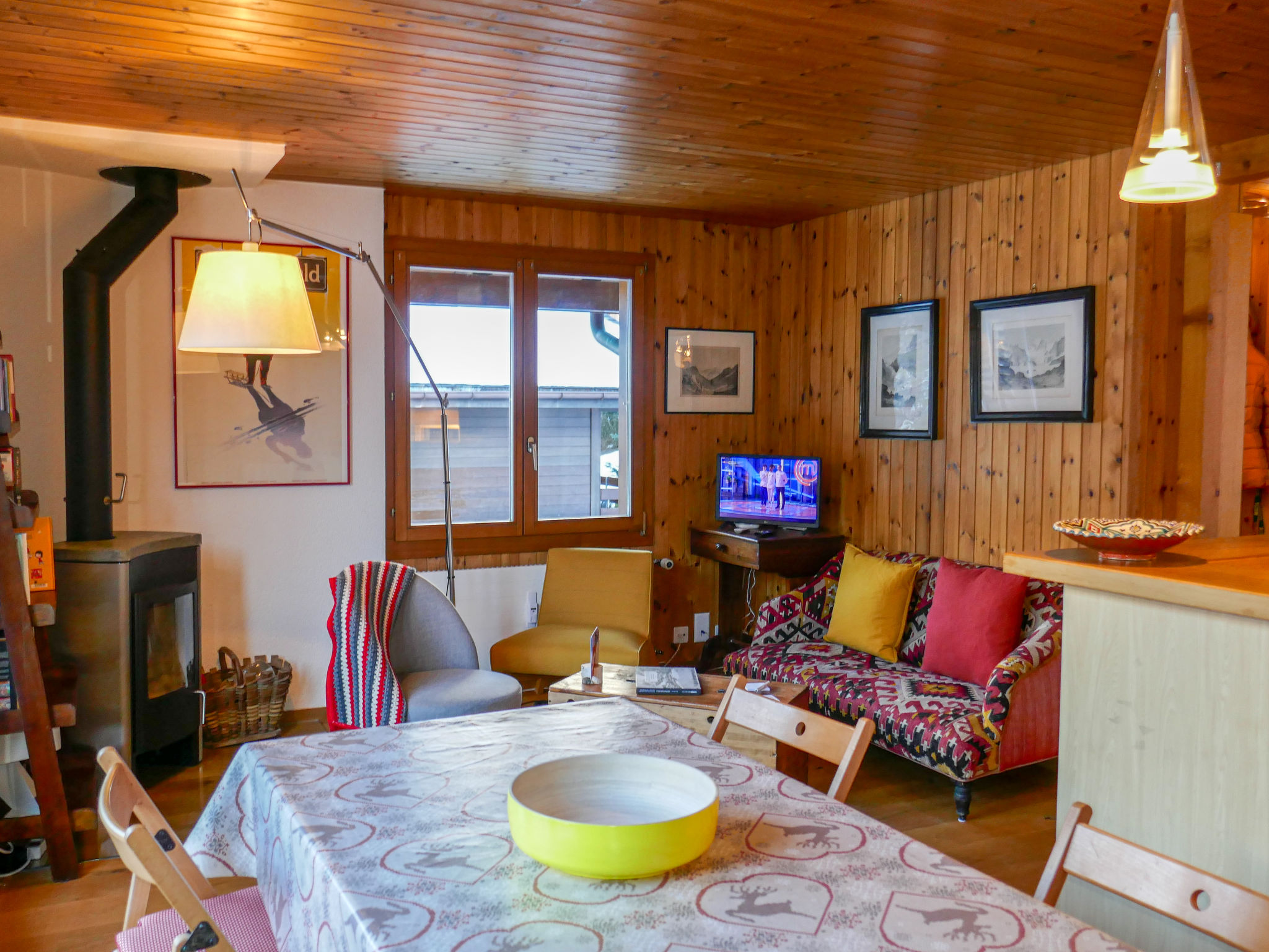 "Réan", 3-Zimmer-Wohnung 50 m2 auf 2 Stockwerken, im Dachgeschoss. Objekt geeignet für 2 Erwachsene + 2 Kinder. Hell, teilweise abgeschrägt, teilweise renoviert im Jahre 2025, zweckmässig und gemütlich eingerichtet: offenes Wohn-/Esszimmer mit Schwedenofen, Esstisch und Kabel-TV. Ausgang zum Balkon. 1 Zimmer mit 1 Doppelbett (160 cm, Länge 200 cm). Ausgang zum Balkon. 1 Kinderzimmer, 2 Etagenbetten (90 cm, Länge 200 cm). Ausgang zum Balkon. Offene Küche (4 Kochplatten, Backofen, Geschirrspüler, 4 Glaskeramikplatten, Toaster, Wasserkocher, Mikrowelle, elektrische Kaffeemaschine, Kapseln für die Kaffeemaschine (Nespresso) extra, Racletteofen, Fondue Set (Käse)). Dusche/WC. Obergeschoss: (steile Treppe) abgeschrägtes, offenes Spielzimmer. Balkon, Südlage Balkon, Nordlage. Balkonmöbel. Herrliche Panoramasicht auf das Tal, die Ortschaft und Wetterhorn. Zur Verfügung: Internet (Wireless LAN, gratis). Parkplatz Nr. Réan beim Haus. Bitte beachten: Nichtraucher-Unterkunft. Eigener Eingang.