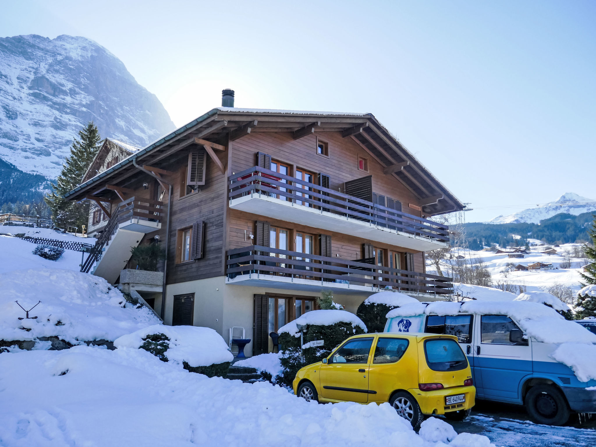 Am Fusse des Eigers, freistehendes, einfaches Mehrfamilienhaus "Nordwestwand", auf 3 Stockwerken. Im Ortsteil Zu Trogen, 2.1 km vom Zentrum, ruhige Lage am Hang, 200 m vom Skigebiet, in einer Sackgasse. Im Hause: Skiraum, Zentralheizung. Steile Zufahrt bis zum Haus. Im Winter bitte Schneeketten mitbringen. Treppenweg (25 Stufen) bis zum Haus. Parkplatz beim Haus. Lebensmittelgeschäft 1 km, Einkaufszentrum 2.1 km, Restaurant 300 m, Fahrradverleih 900 m, Bushaltestelle "Rothenegg" 1.3 km, Bahnstation "Grund" 800 m, Freibad 900 m, Hallenbad 2.1 km. Golfplatz (9 Loch) 2 km, Tennis 2.3 km, Minigolf 2.2 km, Sportzentrum 2.1 km, Wanderwege ab Haus 10 m, Bergeisenbahn 600 m, Gondelbahn 800 m, Skipisten 200 m, Skibushaltestelle 100 m, Langlaufloipe 800 m, Kinderspielplatz 2.1 km. Bekannte Seen in der Umgebung sind gut erreichbar: Thuner-/Brienzersee 18 km. Bitte beachten: Fahrzeug empfohlen, kein Fahrstuhl vorhanden. Bei guter Schneelage Zufahrt mit den Skiern bis zum Haus.