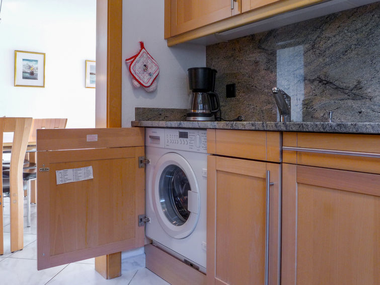 4-Zimmer-Wohnung 100 m2 im 1. Stock, Südlage. Hell, schön und gemütlich eingerichtet: Wohnzimmer mit TV. Ausgang zum Balkon. 1 Doppelzimmer mit 1 Doppelbett (1 x 160 cm, Länge 200 cm), Dusche/WC. Ausgang zum Balkon. 1 Doppelzimmer mit 1 Doppelbett (1 x 160 cm, Länge 200 cm). 1 Zimmer mit 2 Betten (90 cm, Länge 200 cm). Küche (Backofen, Geschirrspüler, 4 Glaskeramikplatten, Toaster, Wasserkocher, Tiefkühler, elektrische Kaffeemaschine, Racletteofen, Fondue Set (Käse)). Bad/WC, sep. WC. Heizung. Balkon, Südlage. Balkonmöbel. Schöne Sicht auf das Matterhorn. Zur Verfügung: Waschmaschine, Haartrockner. Internet (Wireless LAN, gratis). Bitte beachten: Nichtraucher-Unterkunft.