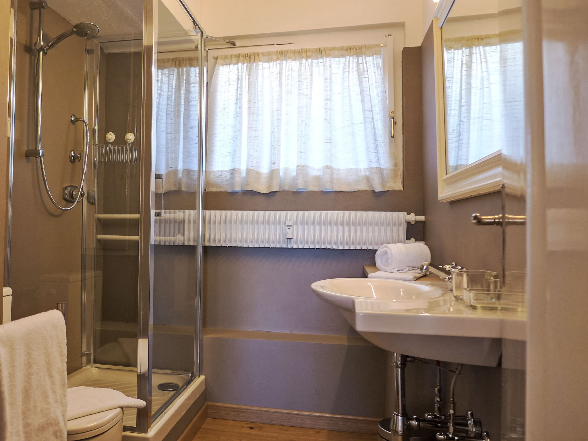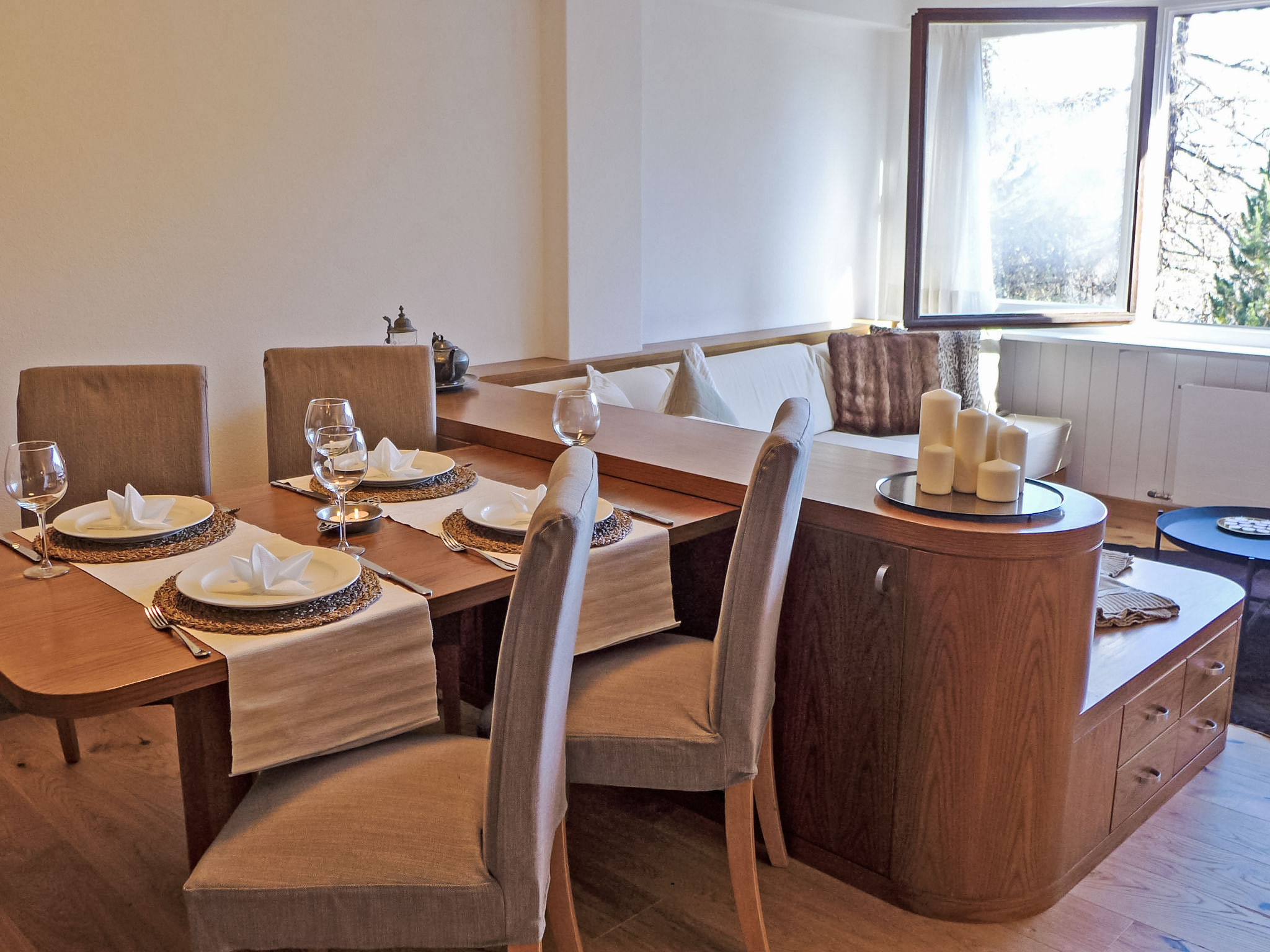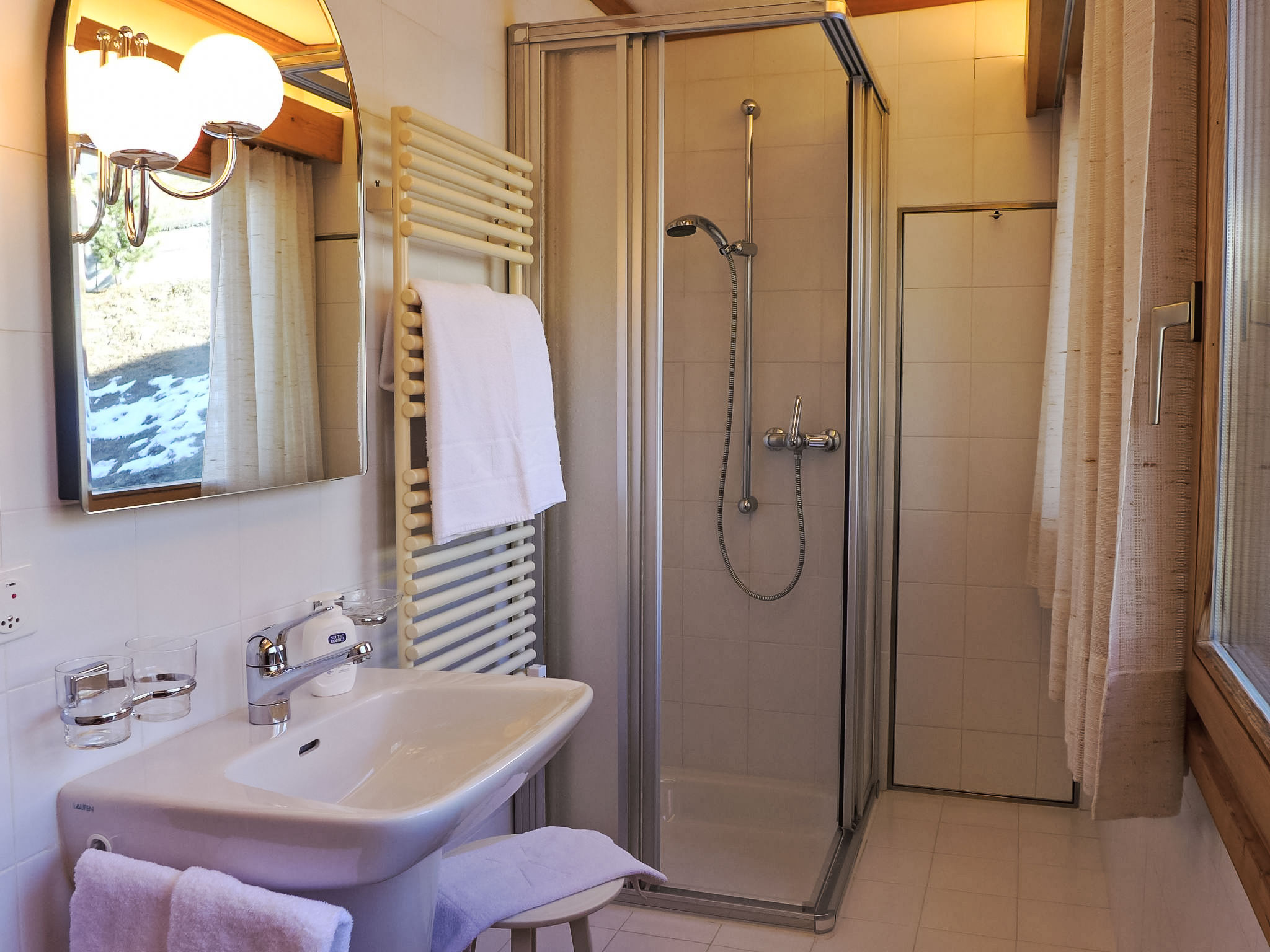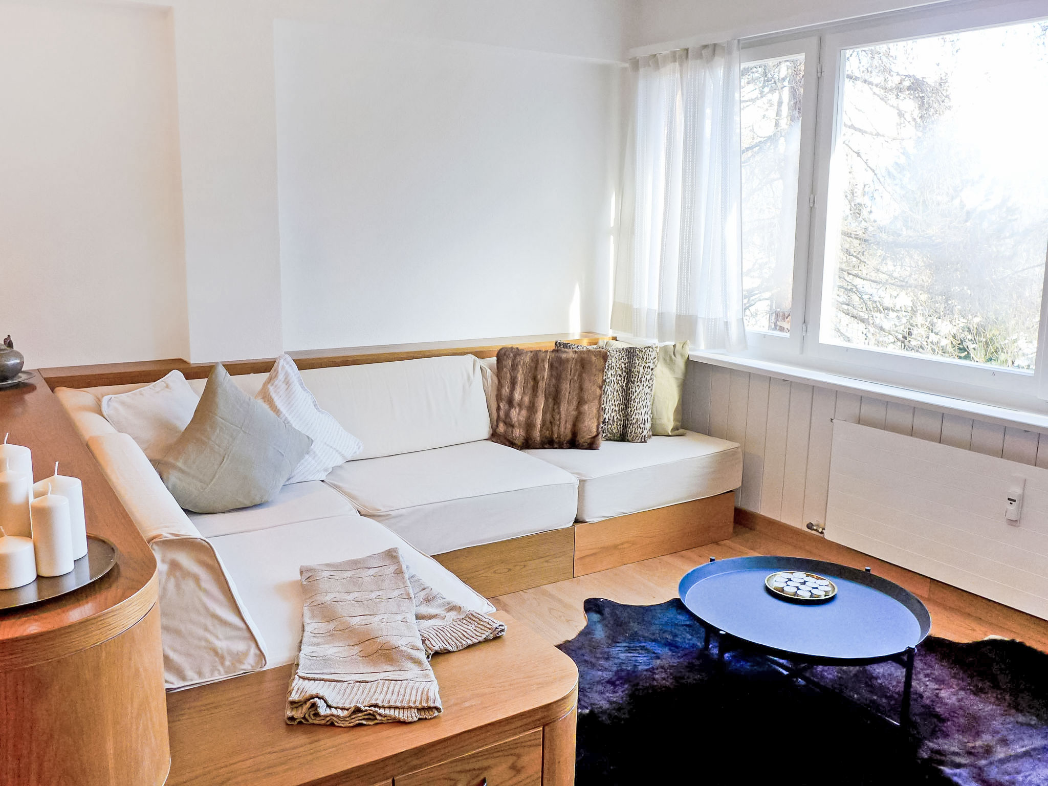 "Chesa Cripels I", 3-Zimmer-Wohnung 75 m2 im 2. Stock, Ostlage. Geräumig und hell, teilweise renoviert im Jahre 2016, modern und gemütlich eingerichtet: Wohn-/Esszimmer mit Sat-TV (Flachbildschirm), DVD. 1 grosses Zimmer mit 2 Betten (90 cm, Länge 200 cm), Dusche/Bidet/WC. 1 kleines Zimmer mit 2 Betten (90 cm, Länge 200 cm). Kleine Küche (4 Kochplatten, Backofen, Geschirrspüler, Toaster, Wasserkocher, elektrische Kaffeemaschine, Kapseln für die Kaffeemaschine (Nespresso) extra). Dusche/WC. Parkettboden. Herrliche Panoramasicht auf den See und die Berge. Zur Verfügung: Haartrockner. Internet (Wireless LAN, gratis). Garage Nr. 4 auf dem Grundstück, Höhe 205 cm, Breite 240 cm. Bitte beachten: geeignet für Familien. Nichtraucher-Unterkunft. Maximal 1 Haustier/Hund erlaubt. Kein Fahrstuhl.
