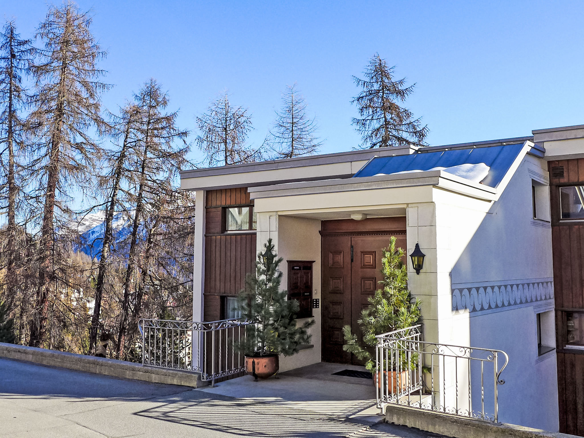 St. Moritz: Komfortables Mehrfamilienhaus "Chesa Cripels", Baujahr 1970, renoviert im Jahre 2010, umgeben von Bäumen. Oberhalb von St. Moritz-Dorf, 450 m vom Zentrum von St. Moritz Dorf, ruhige, sonnige, erhöhte Lage am Hang, verkehrsberuhigte Zone, 250 m vom Waldrand, 2 km vom See, in einer Sackgasse. Zur Mitbenutzung: Garten (eingezäunt). In der Anlage: Zentralheizung, Waschmaschine, Wäschetrockner (zur Mitbenutzung, extra). Steile Zufahrt. Im Winter bitte Schneeketten mitbringen, im Winter 4x4 empfohlen. Steiler Fussweg (30 Stufen) bis zum Haus. Einzelgarage beim Haus. Einkaufsgeschäft 700 m, Lebensmittelgeschäft 800 m, Supermarkt 1.9 km, Restaurant 800 m, Bar 800 m, Bäckerei 1 km, Café 1 km, Fußgängerzone 800 m, Fahrradverleih 2.4 km, Bushaltestelle "St. Moritz, Kulm" 700 m, Bahnstation 2 km, Hallenbad 2.8 km, Thermalbad "Heilbadzentrum St. Moritz" 2.9 km, See St. Moritzer See 2 km. Golfplatz (18 Loch) 6.4 km, Surfschule 7.4 km, Tennis 3.1 km, Tennishalle 3.1 km, Minigolf 2.8 km, Reitstall 4.4 km, Wanderwege ab Haus 250 m, Radweg 2.8 km, Luftseilbahn 3 km, Bergeisenbahn 350 m, Skilift 350 m, Skipisten 1 km, Skiverleih 400 m, Skischule 500 m, Schlittelbahn 5.5 km, Langlaufloipe 2.8 km, Eisfeld 2.4 km, Kinderspielplatz 1.2 km. Nahe gelegene Sehenswürdigkeiten: Segantini Museum 1.7 km, Engadiner Museum 1.5 km, Mili Weber-Haus 4.5 km, Olympia Bob Run mit Museum 1.2 km, Nietzsche Museum in Sils-Maria 11.6 km. Bekannte Skigebiete sind gut erreichbar: Corviglia Piz Nair 700 m, Corvatsch - Furtschellas 8.6 km, Diavolezza - Lagalb 19.5 km. Bekannte Seen in der Umgebung sind gut erreichbar: St. Moritzer See 2 km, Silvaplaner See 7.4 km, Silser See 11.6 km. Wandergebiete: Stazerwald & Stazersee, Corviglia Piz Nair, Muottas Muragl. Bitte beachten: Fahrzeug empfohlen, kein Fahrstuhl vorhanden. Be- und Entladen am Ferienhaus möglich. Die Schlüsselübergabe findet bei der Agentur Interhome in St. Moritz Bad statt. Weitere Unterkünfte sind buchbar. Treppenweg (ca. 900 m) ins Dorfzentrum.