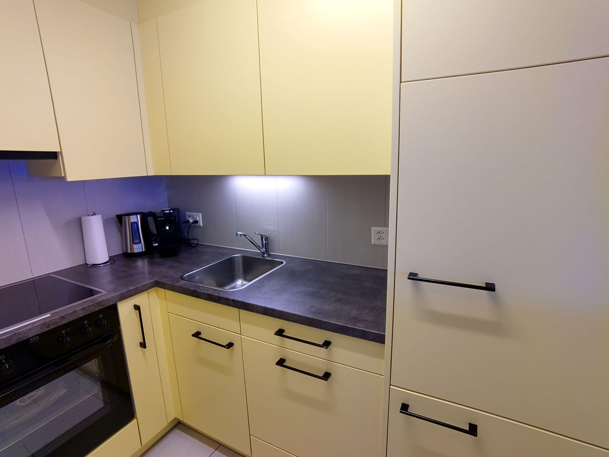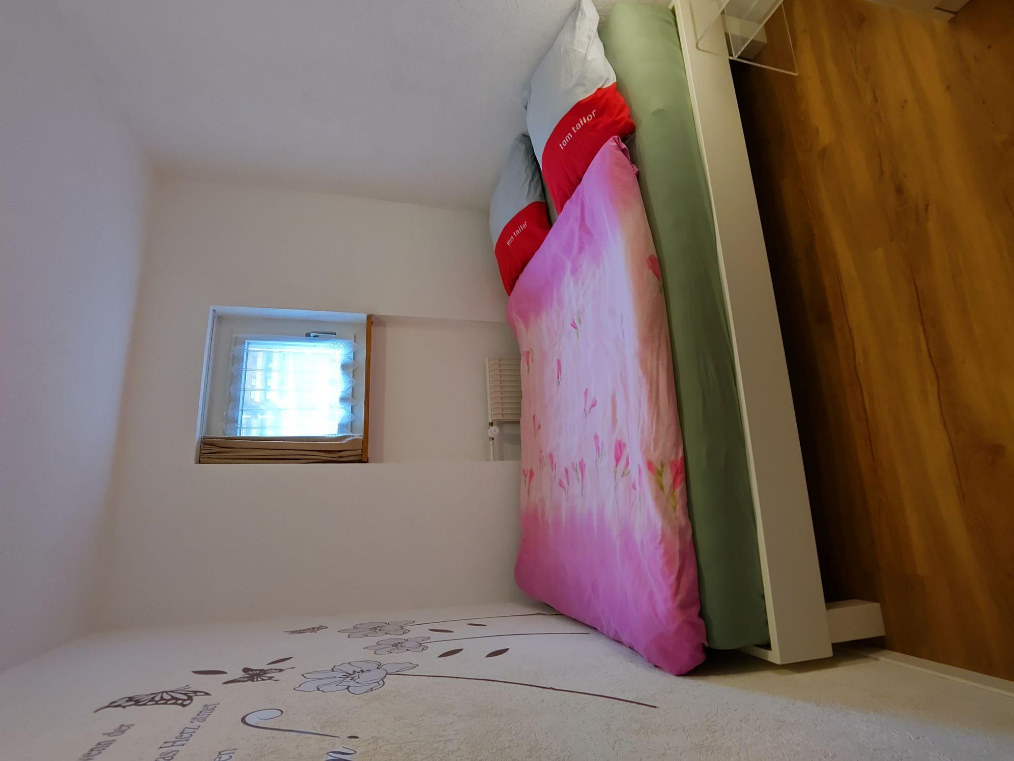 1-Zimmerwohnung (2.Etage): Wohn-/Esszimmer mit 1 Doppelbett, separate Küche mit Geschirrspüler, Kapsel-Kaffeemaschine u.v.m., Dusche/WC, Süd-Balkon mit Blick auf das Bergmassiv, gratis WiFi, Radio, TV. Separates Zusatzzimmer mit Doppelbett (von der Wohnung räumlich getrennt), gleich gegenüber. Nichtraucherwohnung! Ein Aussenparkplatz vor dem Haus inklusive.