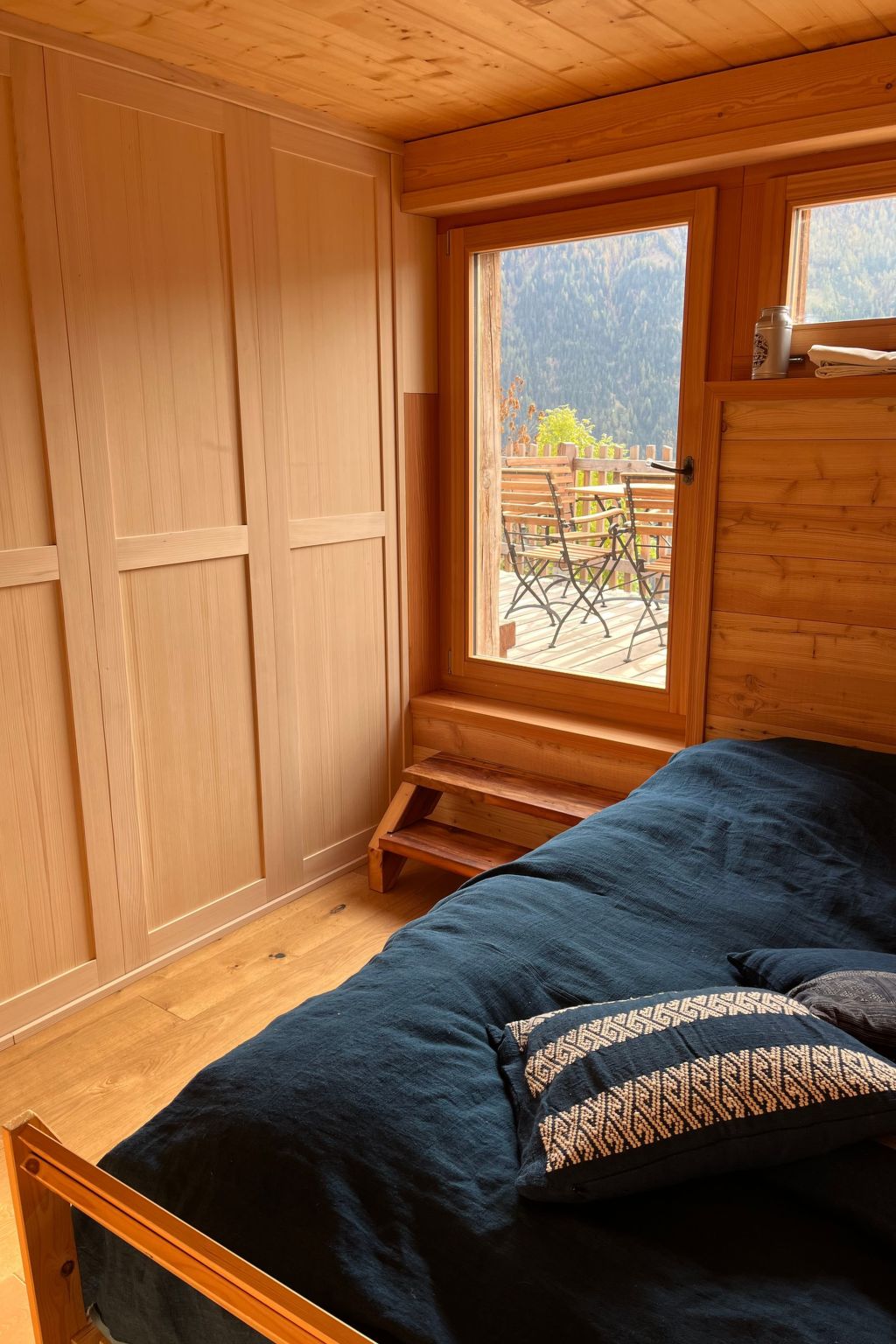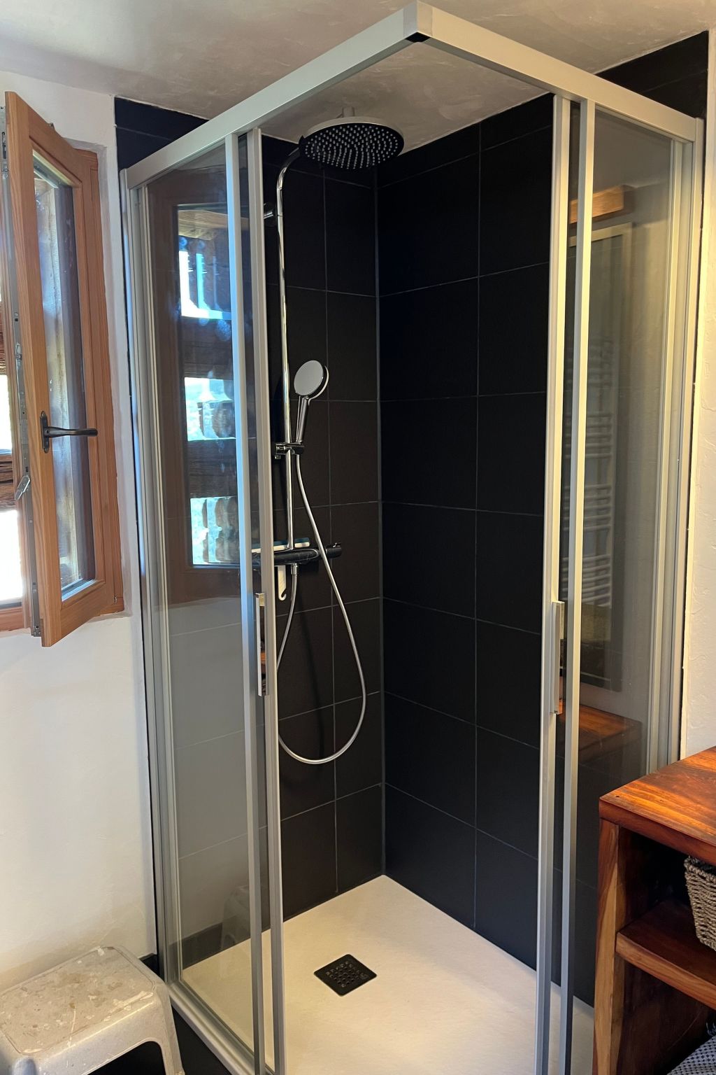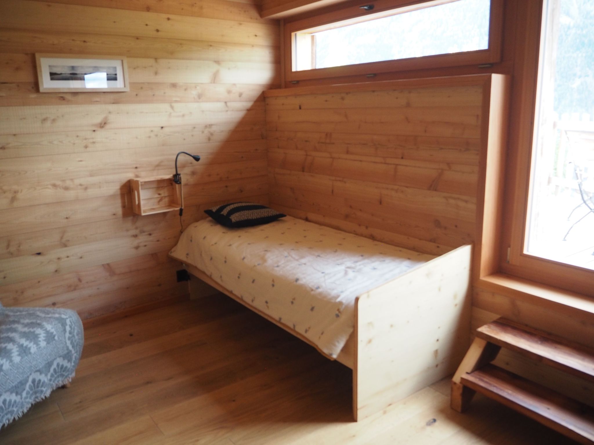 Der Stallbereich für die Kühe wird für die Schlafbereiche umgebaut. Auf'étage, la partie réservée pour le foin est devenue le salon cuisine. Nous avons pensé les ouvertures pour profiter du panorama sur les montagnes et surtout pour reçevoir le soleil en hiver. En été, la grande ouverture orientée ouest vous met aux premières loges pour admirer les dernières couleurs du coucher de soleil avant la nuit. Lors de la construction, une attention particulière a été apportée pour éviter le plus possible les matériaux issus de la chimie et nocifs pour la santé (plastiques, colles et peintures).