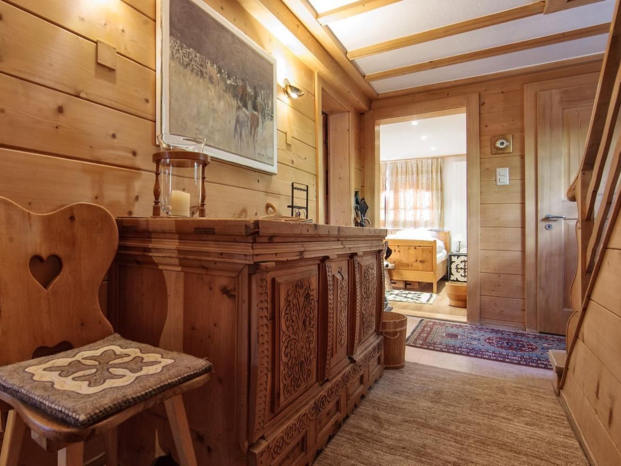 Im Inneren erwartet Sie Komfort im rustikalen Stil. Das Chalet verteilt sich auf drei Etagen und verfügt über insgesamt sechs Schlafzimmer, fünf Nasszellen, sowie eine separate Toilette im Erdgeschoss. Die Küche ist ein echtes Highlight – voll ausgestattet mit modernsten Geräten, einschließlich eines Food Centers, Induktionsherd, Mikrowelle und natürlich einer Espresso-/Cappuccinomaschine sowie einer zusätzlichen Nespressomaschine, um Ihren Aufenthalt so angenehm wie möglich zu gestalten. Ein gemütliches Wohnzimmer mit Sofa und Fernseher befindet sich im Erdgeschoss.
