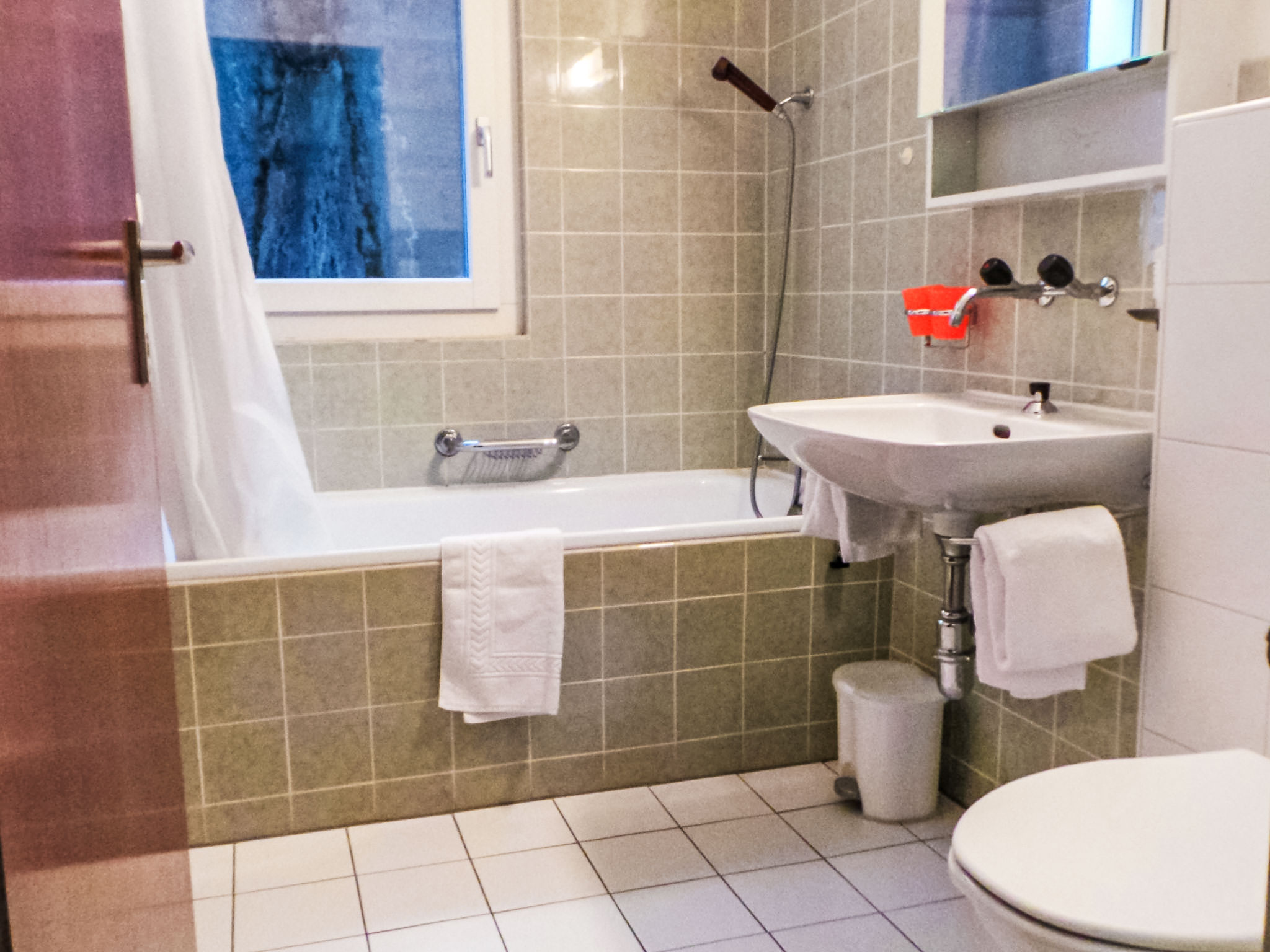 1-Zimmer-Wohnung 40 m2, im erhöhten Erdgeschoss. Einfach und komfortabel eingerichtet: Wohn-/Schlafzimmer mit 2 Wandklappbetten (90 cm, Länge 200 cm), Esstisch und TV. Ausgang zum Balkon. Küche (3 Kochplatten, Backofen, Toaster, Wasserkocher, Tiefkühler, elektrische Kaffeemaschine). Bad/WC. Balkon 8 m2, Südlage. Balkonmöbel. Eingeschränkte Sicht auf die Berge und das Matterhorn. Zur Verfügung: Haartrockner. Internet (WLAN, gratis). Bitte beachten: Nichtraucher-Unterkunft. Maximal 1 Haustier/Hund erlaubt. Die Sicht auf das Matterhorn, wird durch 2 Bäume behindert.