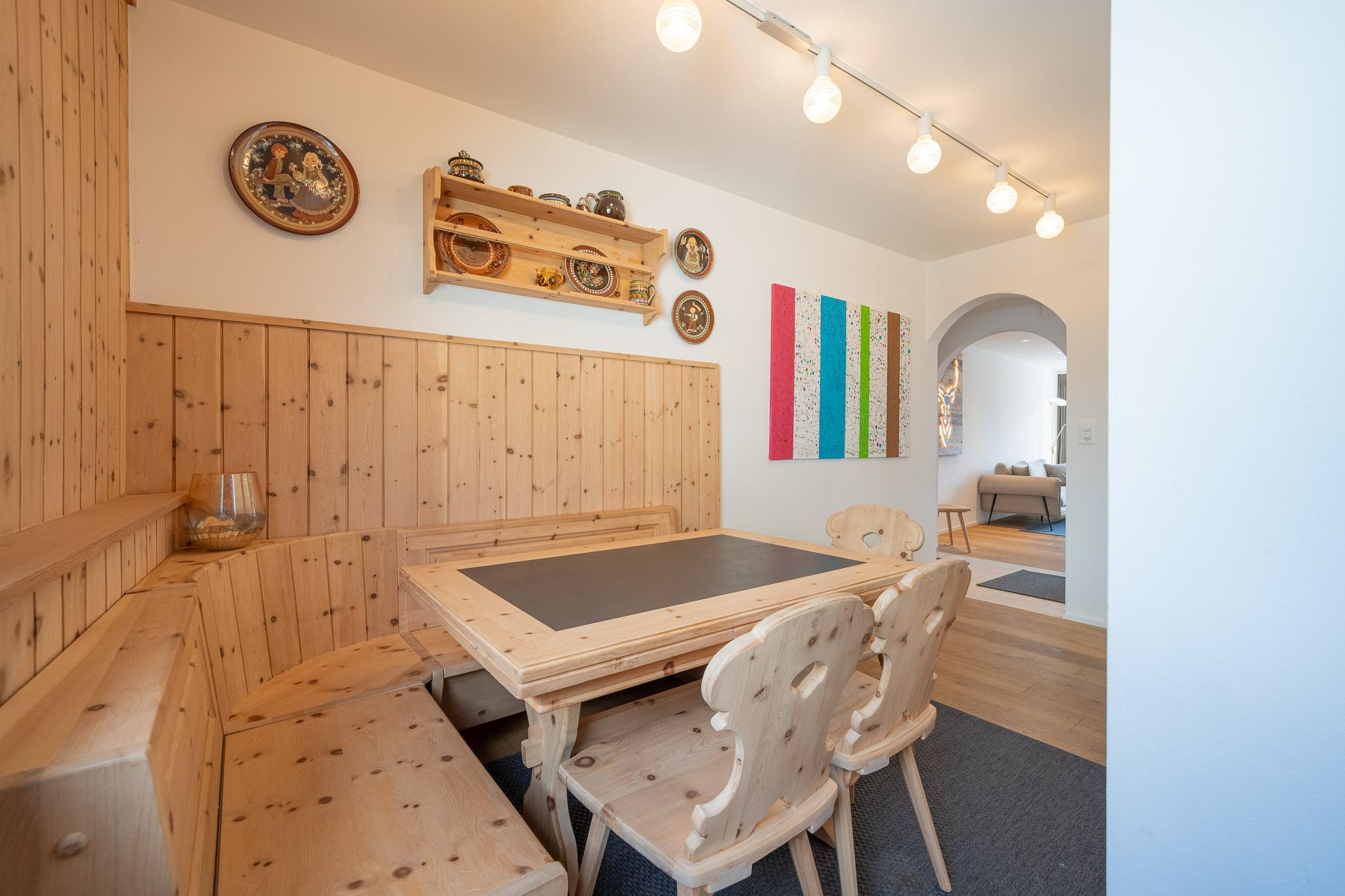 Zentral gelegen und dennoch ruhig: Die Wohnung befindet sich nur wenige Meter von der Bushaltestelle, dem Supermarkt sowie Restaurants und Bars entfernt – ideal für Familien, die eine entspannte Auszeit in den Bergen suchen.