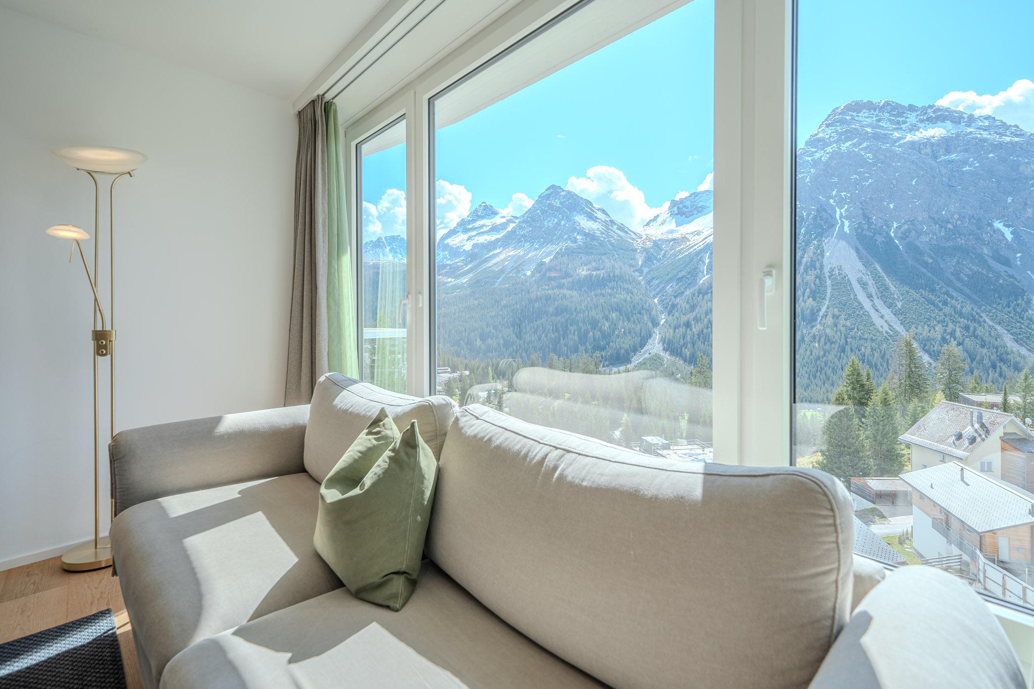 Willkommen in unserer modernen Zweizimmerwohnung im Haus Viktoria – zentral gelegen im Herzen von Arosa, mit Komfort, grosszügigem Platzangebot und atemberaubender Bergsicht.