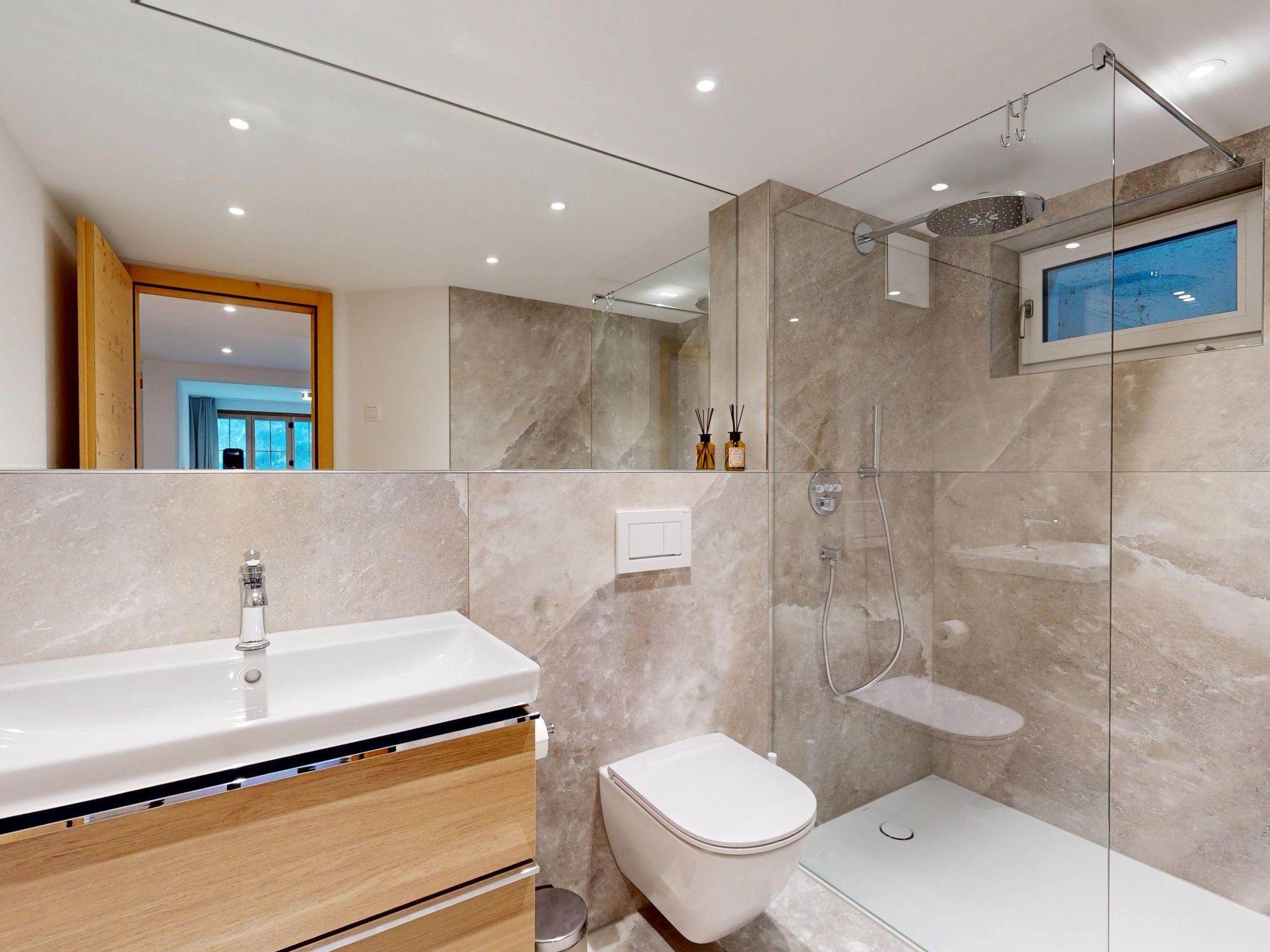 Im Inneren der Wohnung erwarten Sie alle Annehmlichkeiten, die Sie für einen angenehmen Aufenthalt benötigen. Die Wärme der Fußbodenheizung durchzieht jeden Raum, was besonders in kühleren Monaten für gemütliche Abende sorgt. Unterhaltung wird großgeschrieben mit einem Smart-TV, der zu entspannten Stunden einlädt. Für Selbstversorger ist die Küche mit einem Induktionsherd, einer Kapsel-Kaffeemaschine und einer Spülmaschine bestens ausgestattet. Trotz der Abwesenheit einer Klimaanlage, sorgt die natürliche Kühle der Berge für eine angenehme Raumtemperatur. Praktischerweise stehen eine Waschmaschine und ein Wäschetrockner zur gemeinschaftlichen Nutzung im Gebäude bereit, sodass Sie sich auch bei längeren Aufenthalten stets frisch fühlen können.