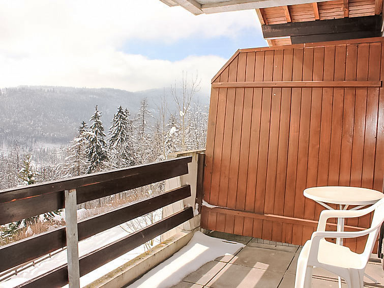 Les Petites Roches: Residenz "Centaure". Am Ortsrand, 3 km vom Zentrum, ruhige, sonnige Lage, Richtung Süden. Im Hause: Zentralheizung. Zufahrt bis 30 m zum Haus. Treppenweg bis zum Haus. Öffentliche Parkplätze auf der Strasse. Einkaufsgeschäft 3 km, Restaurant, Bushaltestelle 900 m, Bahnstation 3 km, Freibad 900 m, Hallenbad 6 km, Thermalbad 20 km. Tennis 4 km, Sportzentrum 4 km, Skisportanlagen 6 km, Skischule 6 km, Kinderskischule 6 km, Langlaufloipe 6 km, Eisfeld 8 km. Bitte beachten: Fahrzeug empfohlen. Weitere Unterkünfte sind buchbar. Das Chalet liegt im mittleren Teil der Residenz.