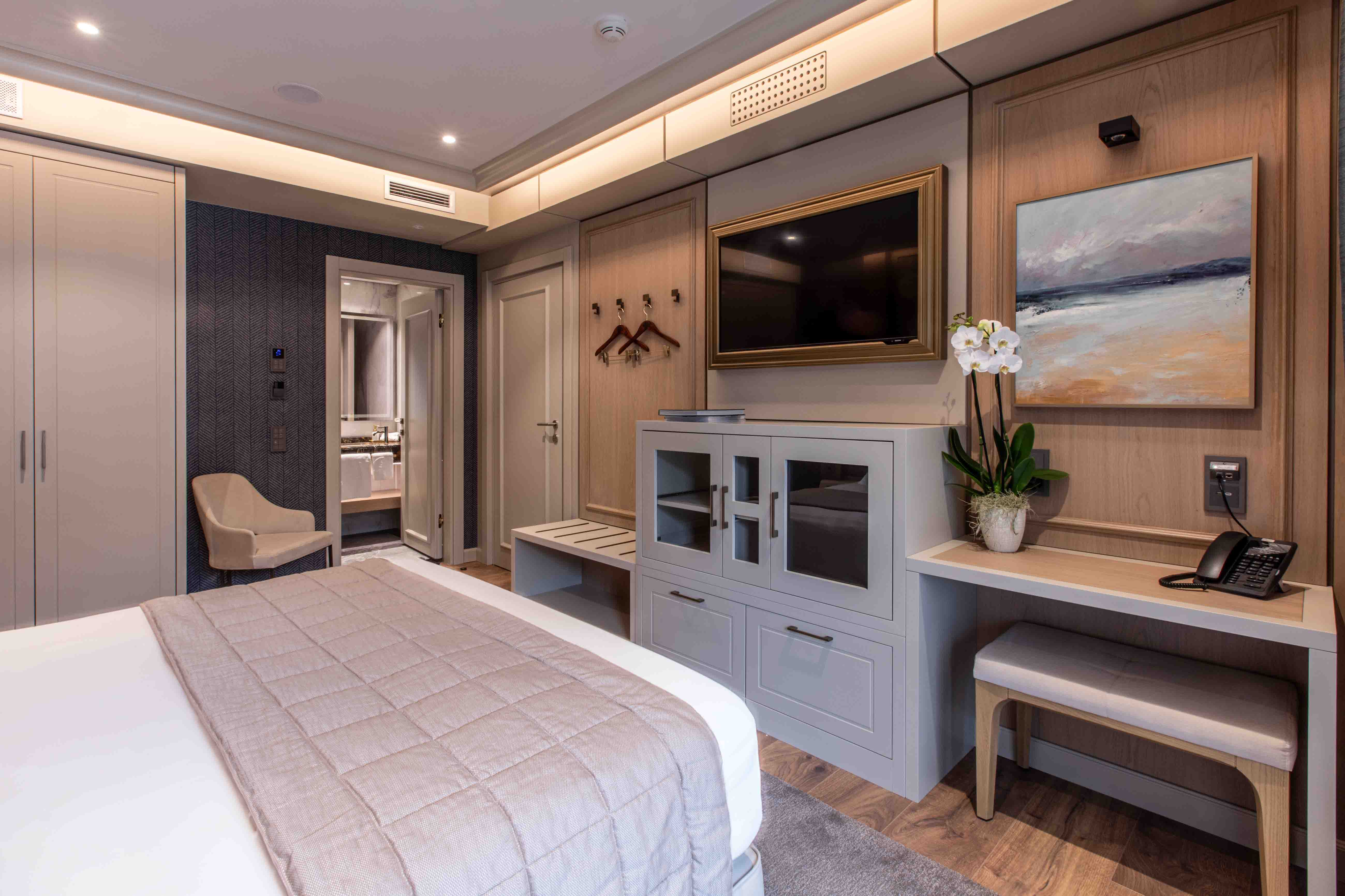 Große Fenster und durchdacht gestaltete Räume bieten atemberaubende Panoramablicke auf den See und die umliegenden Berge und verwandeln jeden Moment in ein unvergessliches Schauspiel. Die Zimmer und Suiten, mit erlesenem Geschmack und hochwertigen Materialien eingerichtet, garantieren Entspannung und Luxus auf höchstem Niveau.