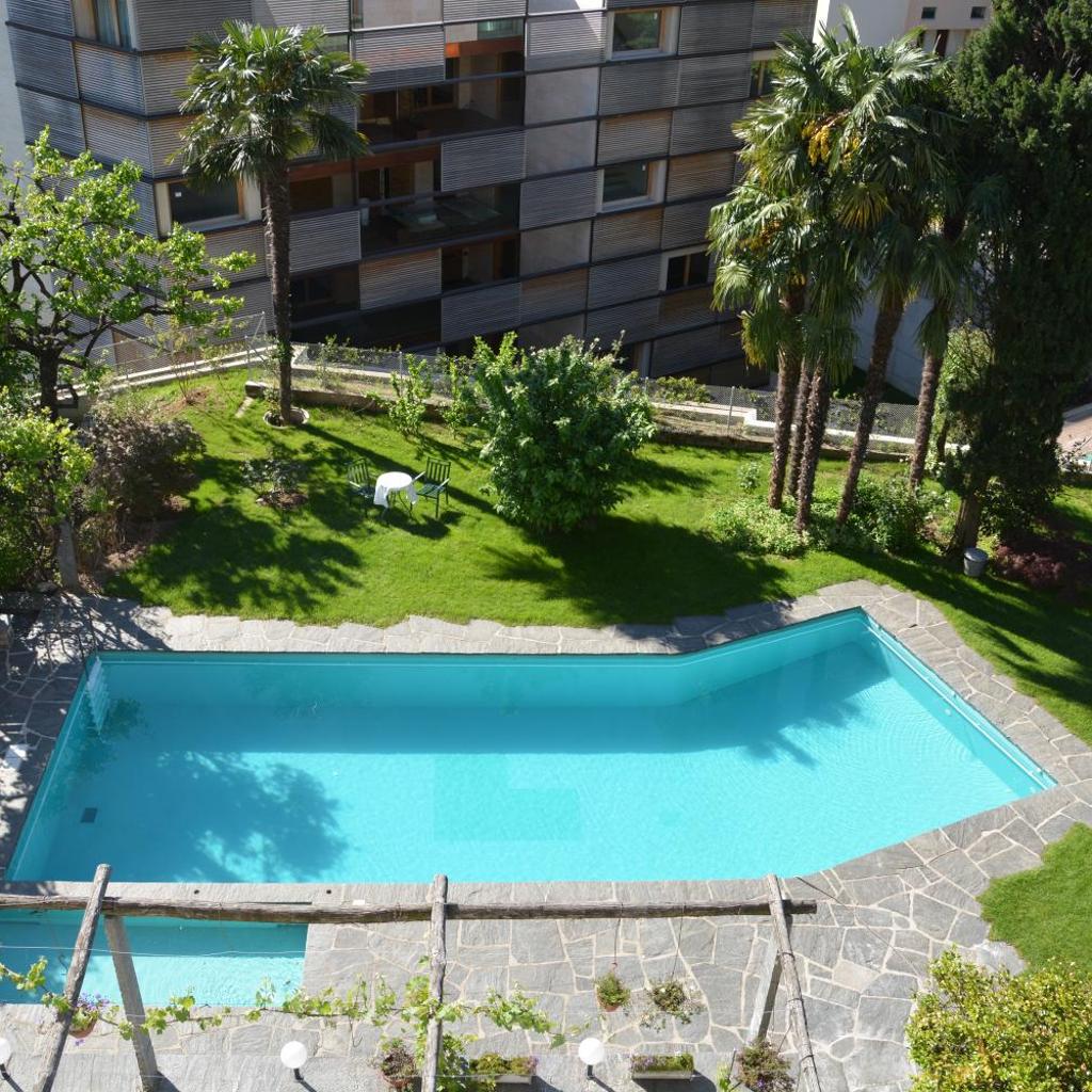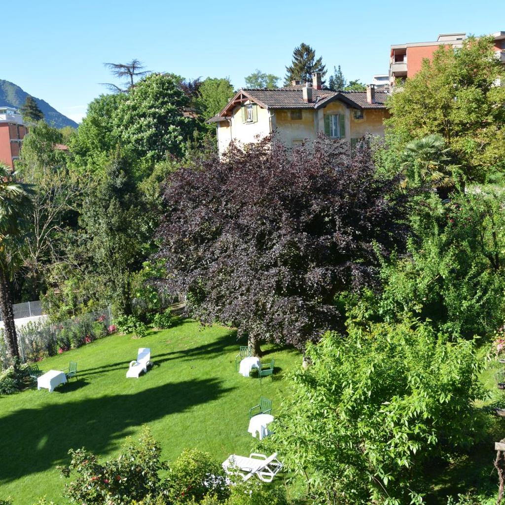 Inmitten eines reizvollen mediterranen Gartens mit einem Pool und Palmen begrüßt Sie das Hotel Villa Selva in Lugano, nur 10 Gehminuten vom Zentrum entfernt.