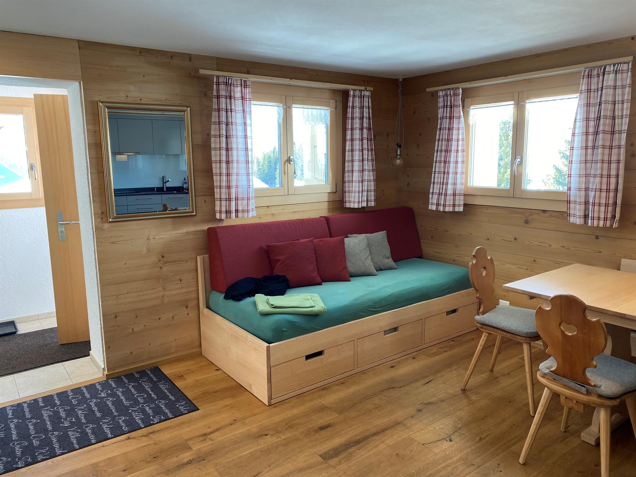 Das gemütliche Chalet mit zwei 3-Zimmerwohnungen an sonniger Lage ist mit Arvenmöbel ausgestattet. Jeder Mietpartei steht ein Skiraum mit geheizten Ski- und Snowboardschuhhaltern zur Verfügung sowie mehrere Schlitten des Chalets zur Mitbenützung.