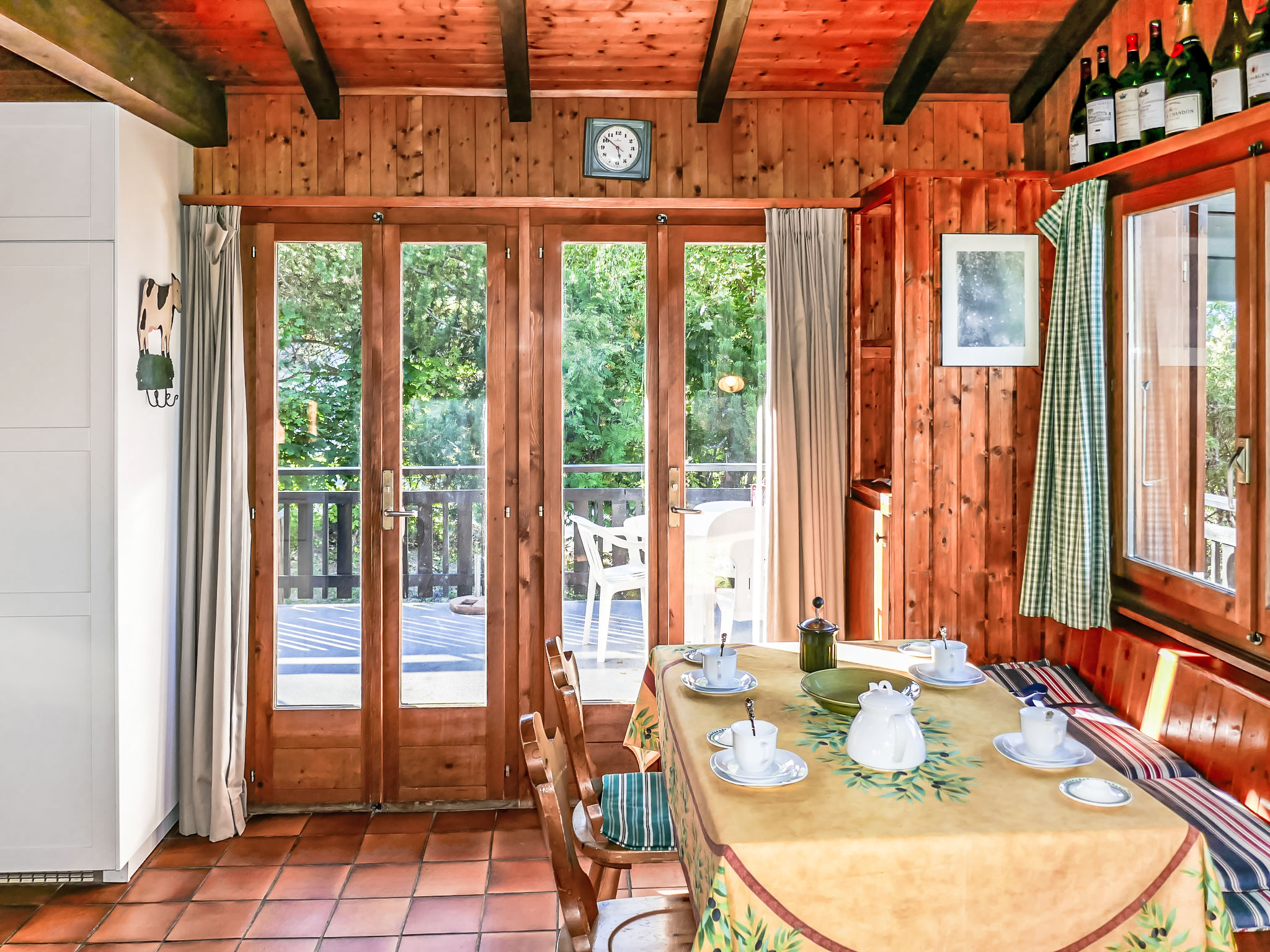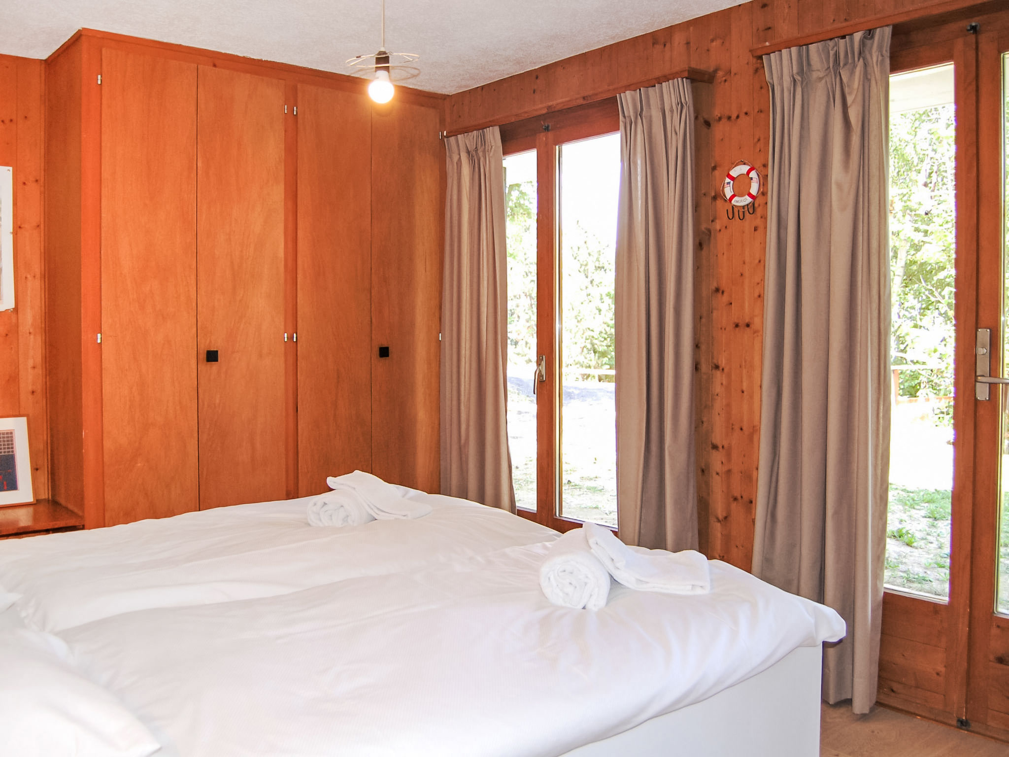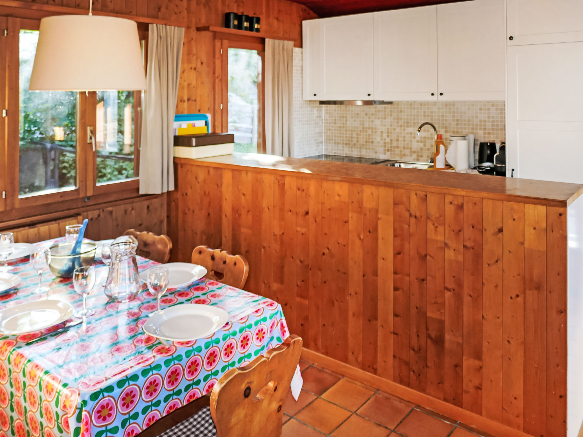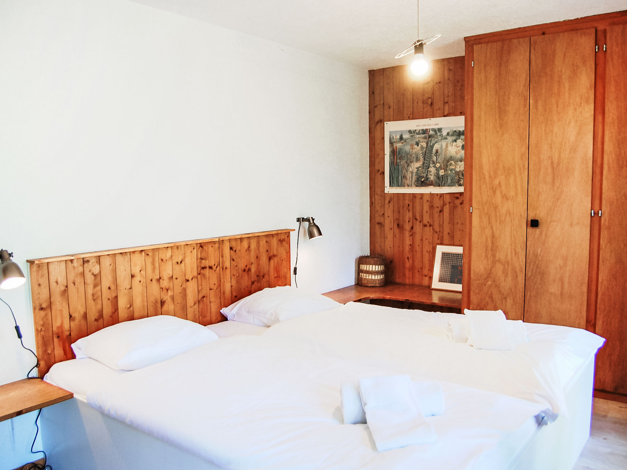 "Sven Heul", 5-Zimmer-Chalet 105 m2 auf 2 Stockwerken. Teilweise renoviert im Jahre 2015, komfortabel eingerichtet: grosses Wohn-/Esszimmer mit offenem Kamin, Kabel-TV, Radio und DVD. Ausgang zum Balkon, Richtung Nordosten. Offene Küche (Geschirrspüler, 4 Induktionskochplatten, Toaster, Wasserkocher, Mikrowelle, elektrische Kaffeemaschine, Kapseln für die Kaffeemaschine (Nespresso) extra, Racletteofen, Fondue Set (Chinoise, Käse)). Ausgang zur Terrasse. Sep. WC. E-Heizung. Unteres Geschoss: 2 Zimmer, jedes Zimmer mit 1 Doppelbett (2 x 90 cm, Länge 200 cm). 1 Zimmer mit 1 x 2 Etagenbetten (90 cm, Länge 190 cm). 1 Zimmer mit 1 Doppelbett (90 cm, Länge 190 cm), Waschbecken. Bad/WC, Dusche, sep. WC. Terrasse 24 m2, Nordwestlage. Balkonmöbel, Gartengrill. Sicht auf das Tal. Zur Verfügung: Waschmaschine, Babybett, Haartrockner. Internet (WLAN, gratis). Parkplatz (3 Autos). Bitte beachten: Nichtraucher-Unterkunft. Maximal 1 Haustier/Hund erlaubt.