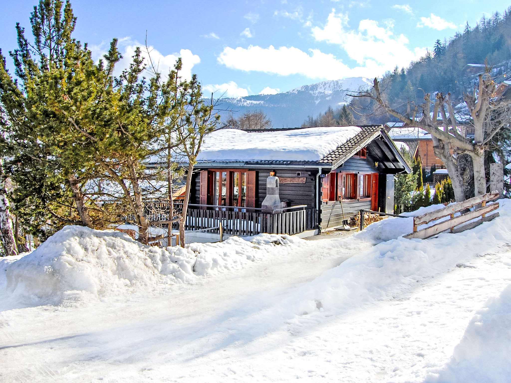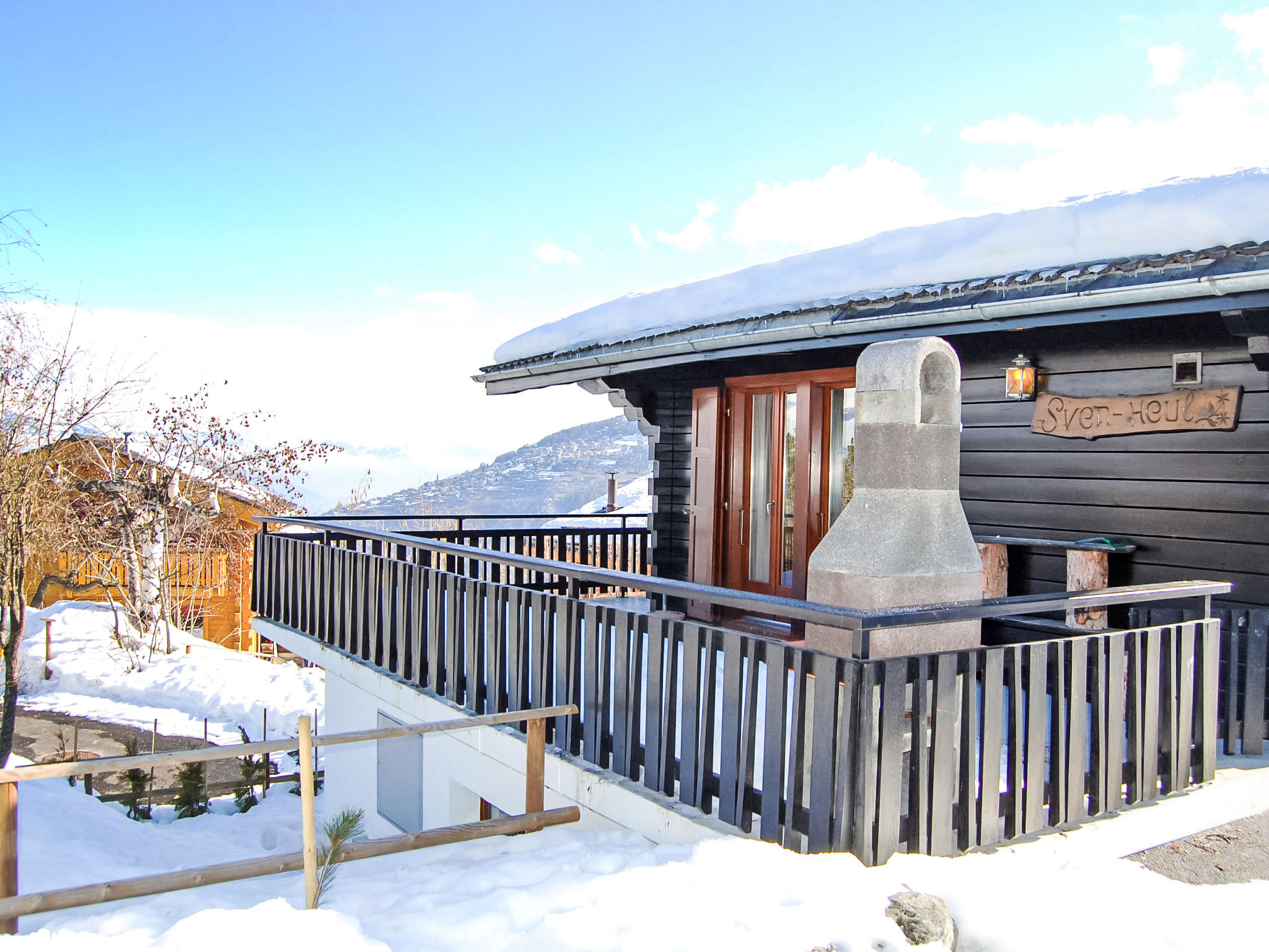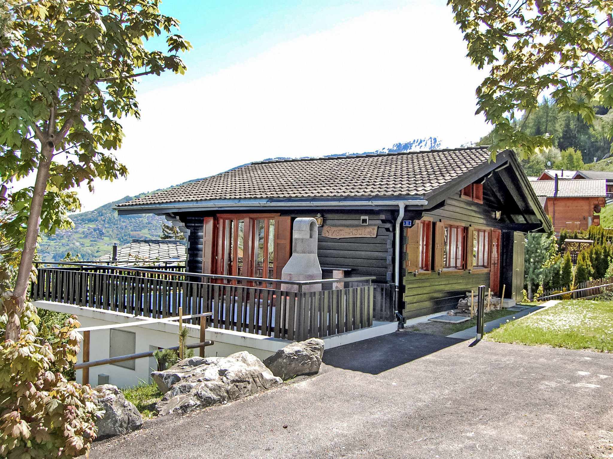 Pattier Bas: Chalet "Sven Heul". Am Ortsrand, 1.2 km vom Zentrum. Zur Alleinbenutzung: Garten 90 m2 mit Rasen. Holprige, steile Zufahrt bis zum Haus (Naturweg). Im Winter bitte Schneeketten mitbringen, im Winter 4x4 empfohlen. Einkaufsgeschäft 1.2 km, Restaurant 1.2 km, Bushaltestelle "Haute-Nendaz, La Crettaz" 350 m, Bahnstation "Sion" 14.6 km. Golfplatz (18 Loch) 18 km, Gondelbahn 1.8 km, Skibushaltestelle 150 m. Bitte beachten: Gratis Skibus.