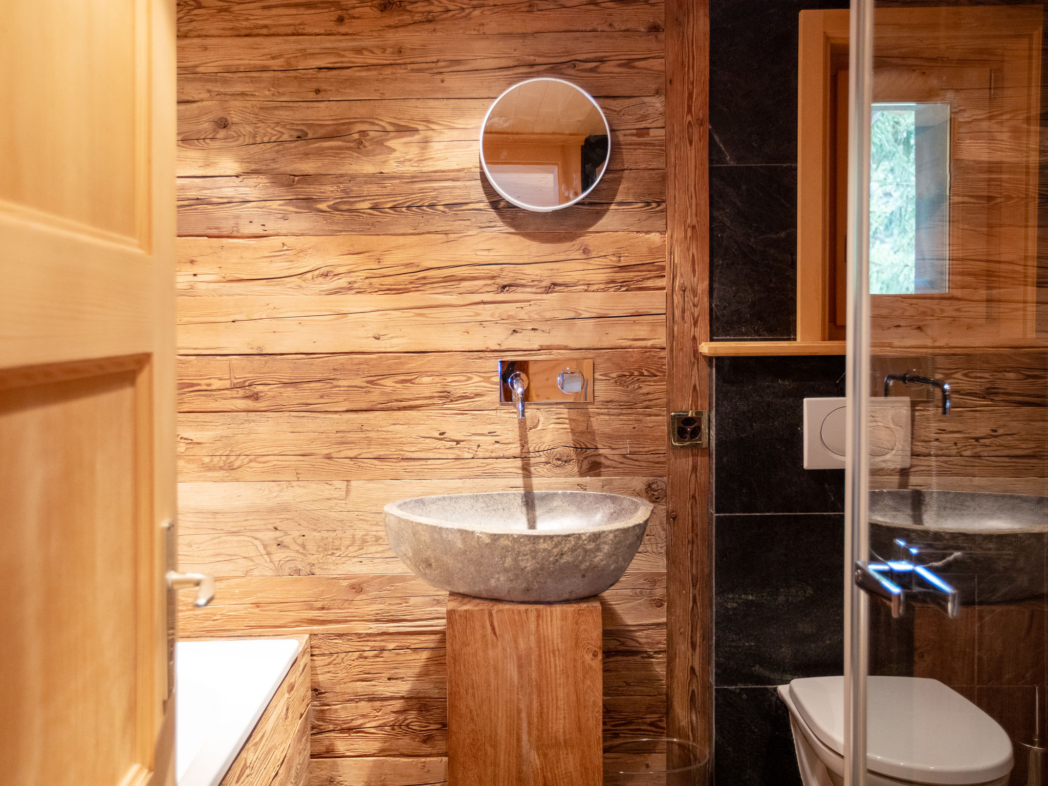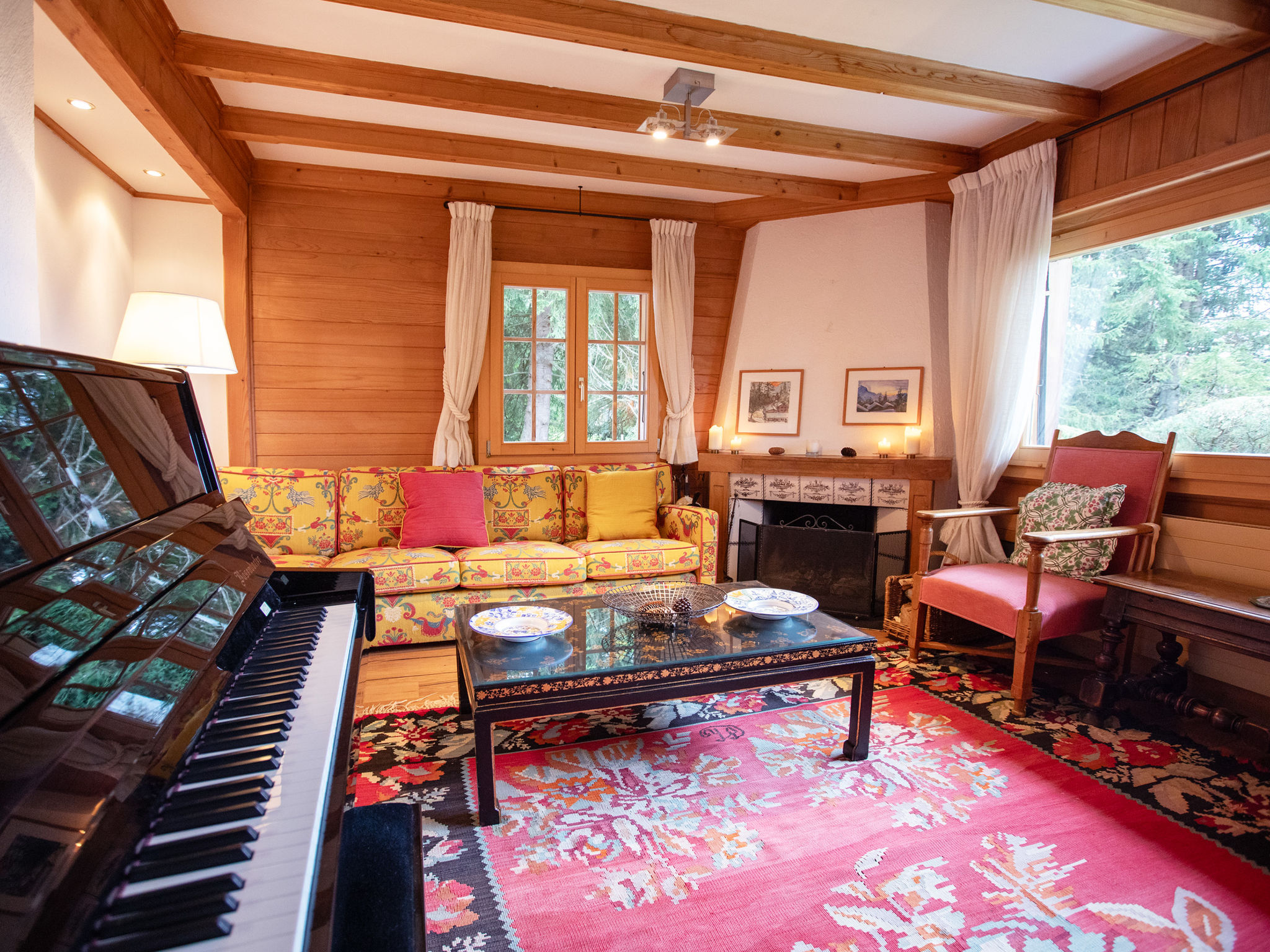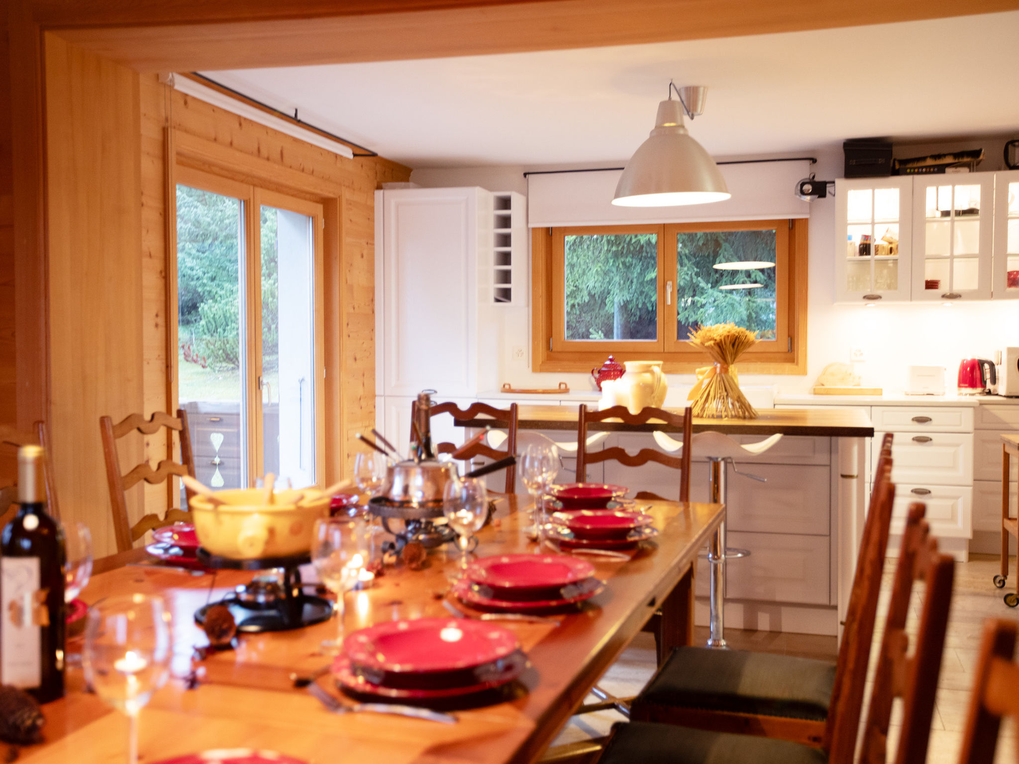 "Chalet Le Haut Pré", 8-Zimmer-Chalet 300 m2 auf 3 Stockwerken, Südlage. Komfortabel und schön eingerichtet: grosses Wohnzimmer mit offenem Kamin und TV (Flachbildschirm). Ausgang zum Garten, zur Terrasse, Richtung Süden und Richtung Westen. 1 Zimmer mit 1 franz. Bett (1 x 160 cm), Bad/Dusche/WC. Ausgang Richtung Osten. Grosse Küche (Backofen, Geschirrspüler, 5 Induktionskochplatten, Toaster, Wasserkocher, Mikrowelle, Tiefkühler, elektrische Kaffeemaschine, Kapseln für die Kaffeemaschine (Nespresso), Racletteofen, Fondue Set (Käse)) mit Esstisch. Ausgang zum Balkon, Richtung Westen. Sep. WC. Unteres Geschoss: grosser Salon. Obergeschoss: 1 Zimmer mit 1 franz. Bett (1 x 180 cm), Bad/Dusche/WC. Ausgang zum Balkon. 1 Zimmer mit 1 franz. Bett (1 x 180 cm). 1 Zimmer mit 2 Betten (90 cm). Ausgang zum Balkon, Richtung Süden. 1 Zimmer mit 1 franz. Bett (1 x 160 cm). Ausgang zum Balkon, Richtung Süden. Durchgangszimmer mit 1 Bett (80 cm). 2 Bäder/WC. Grosser Balkon, Südlage, kleiner Balkon, Südlage, grosse Terrasse, Südlage und Westlage. Terrassenmöbel. Eingeschränkte Sicht auf die Berge. Zur Verfügung: Waschmaschine, Wäschetrockner. Internet (WLAN, gratis). Parkplatz (2 Autos). Bitte beachten: Nichtraucher-Haus. Maximal 1 Haustier/Hund erlaubt.