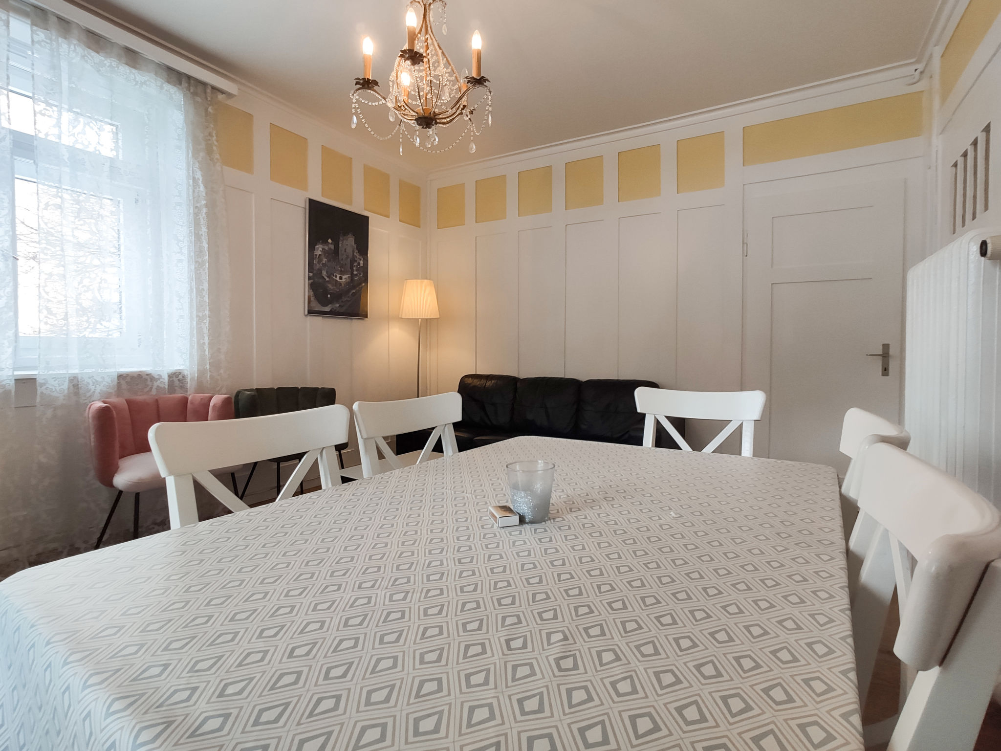 "Haus Altein Apartment Nr. 4", 4-Zimmer-Wohnung 110 m2 im 1. Stock, Südostlage. Geräumig, teilweise renoviert im Jahre 2021, geschmackvoll und gemütlich eingerichtet: Wohn-/Esszimmer mit Kabel-TV, Flachbildschirm und Radio. Ausgang zum Balkon. 2 Zimmer, jedes Zimmer mit 2 Betten (90 cm). 1 Zimmer mit 1 franz. Bett (1 x 160 cm). Wohnküche (Backofen, Geschirrspüler, 4 Glaskeramikplatten, Mikrowelle, elektrische Kaffeemaschine, Kapseln für die Kaffeemaschine (Delizio) extra, Kombinationsmikrowelle) mit Esstisch. Bad/WC, Dusche/WC, Doppelwaschbecken. Grosser Balkon 21 m2, Südostlage. Balkonmöbel, Loggia. Schöne Sicht auf die Berge und die Ortschaft. Zur Verfügung: Internet (WLAN, gratis). Garage Nr. 32. Maximal 1 Haustier/Hund erlaubt. 12990