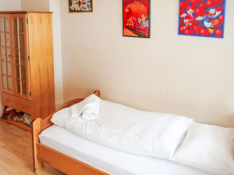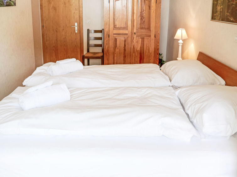 "BI3", 3-Zimmer-Wohnung 65 m2, im Erdgeschoss. Zweckmässig eingerichtet: Wohn-/Esszimmer mit offenem Kamin, Kabel-TV und DVD. Ausgang zum Balkon, Richtung Norden. 1 Zimmer mit 2 Betten (90 cm, Länge 200 cm). Ausgang zum Balkon, Richtung Süden. 1 Zimmer mit 1 franz. Bett (160 cm, Länge 200 cm). Ausgang zum Balkon, Richtung Süden. Offene Küche (4 Kochplatten, Backofen, Geschirrspüler, Wasserkocher, Mikrowelle, elektrische Kaffeemaschine, Racletteofen, Fondue Set (Chinoise, Käse)). Bad/WC, sep. WC. Balkon, Nordlage Balkon, Südlage. Balkonmöbel. Schöne Sicht auf das Tal, die Skipiste und die Ortschaft. Zur Verfügung: Haartrockner. Internet (Wireless LAN, gratis). Parkplatz Nr. i3. Bitte beachten: Nichtraucher-Unterkunft.