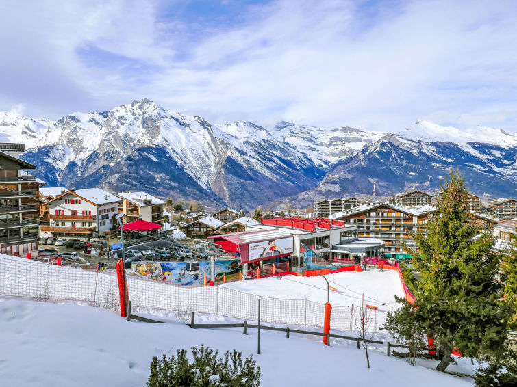 Residenz "Les Hauts de Nendaz". Im Ort, erhöhte Lage, 10 m vom Skigebiet. Im Hause: Fahrstuhl, Skiraum, Zentralheizung, Waschmaschine, Wäschetrockner (zur Mitbenutzung, extra). Steile Zufahrt bis zum Haus. Im Winter bitte Schneeketten mitbringen. Supermarkt 700 m, Restaurant, Bäckerei 500 m, Bushaltestelle "Haute-Nendaz, télécabine" 550 m, Bahnstation "Sion" 16.7 km, Freibad 1.2 km. Golfplatz (18 Loch) 16 km, Tennis 1.2 km, Gondelbahn 450 m. Bekannte Skigebiete sind gut erreichbar: Nendaz 4 vallées Tracouet 50 m. Bitte beachten: Bei guter Schneelage Zufahrt mit den Skiern bis zum Haus. Weitere Unterkünfte sind buchbar.