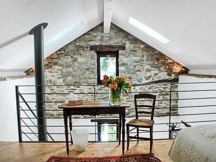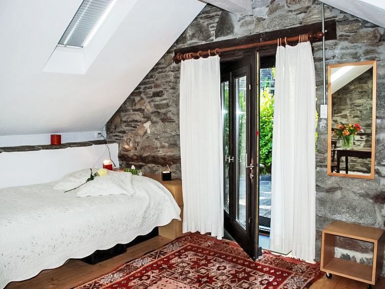 2-Zimmer-Wohnung 45 m2 auf 2 Stockwerken, Südlage. Objekt geeignet für 2 Erwachsene. Geräumig und hell, teilweise abgeschrägt, komfortabel und stilvoll eingerichtet: offenes Wohn-/Esszimmer mit Schwedenofen und E-Heizung. Ausgang zur Terrasse, zum Gartensitzplatz. Offene Küche (Backofen, Geschirrspüler, 4 Glaskeramikplatten, elektrische Kaffeemaschine, Kapseln für die Kaffeemaschine (Nespresso-mitbringen) extra). Dusche/WC. Obergeschoss: offene Galerie mit 1 Doppelbett (1 x 160 cm, Länge 200 cm). Ausgang zum Garten. Gartensitzplatz. Terrassenmöbel, Liegestühle (2), Sitzplatz. Schöne Sicht auf den See, die Berge und die Landschaft. Zur Verfügung: Kinderhochstuhl, Babybett bis 2 Jahre (extra), Haartrockner. Internet (WLAN, gratis). Bitte beachten: Nichtraucher-Haus, kein Parkplatz. Maximal 1 Haustier/Hund erlaubt. Rauchmelder, Feuerlöscher. NL-00004268