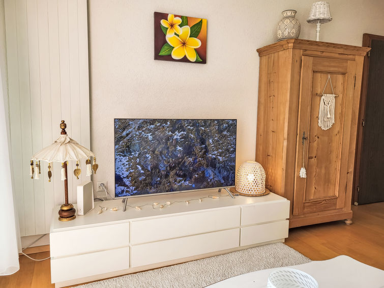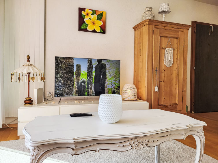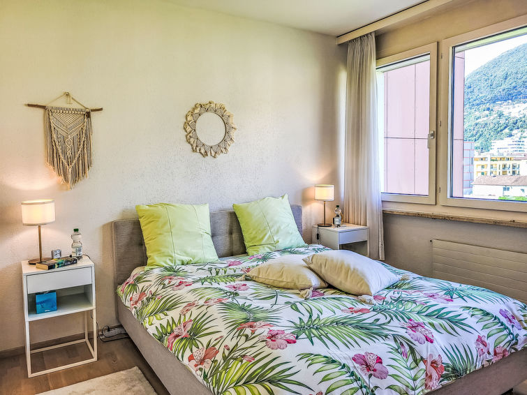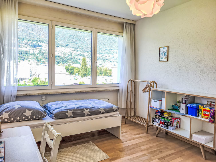 "Apt.Green View", 3-Zimmer-Wohnung 72 m2 im 4. Stock, Südlage. Objekt geeignet für 3 Erwachsene + 2 Kinder. Hell, schön und modern eingerichtet: Wohn-/Esszimmer mit Internationale TV-Sender und Flachbildschirm. Ausgang zum Balkon, Richtung Süden und Richtung Osten. 1 Doppelzimmer, Richtung Norden mit 1 Doppelbett (1 x 160 cm, Länge 200 cm). 1 grosses Zimmer, Richtung Norden mit 1 Bett (90 cm, Länge 200 cm), 1 x 2 Etagenbetten (90 cm, Länge 200 cm). Offene Küche (Backofen, Geschirrspüler, 4 Glaskeramikplatten, Toaster, Wasserkocher, elektrische Kaffeemaschine, Kapseln für die Kaffeemaschine (Nespresso) extra). Dusche/WC. Fussbodenheizung. Heizung nur verfügbar von 15.10. bis 30.04. Parkettboden. Balkon 8 m2, Südlage und Ostlage. Balkonmöbel. Sehr schöne Panoramasicht auf die Berge, die Landschaft und den Wald. Zur Verfügung: Internet (WLAN, gratis). Parkplatz Nr. 29 (überdacht). Bitte beachten: Nichtraucher-Unterkunft. Maximal 1 kleines Haustier/Hund erlaubt.