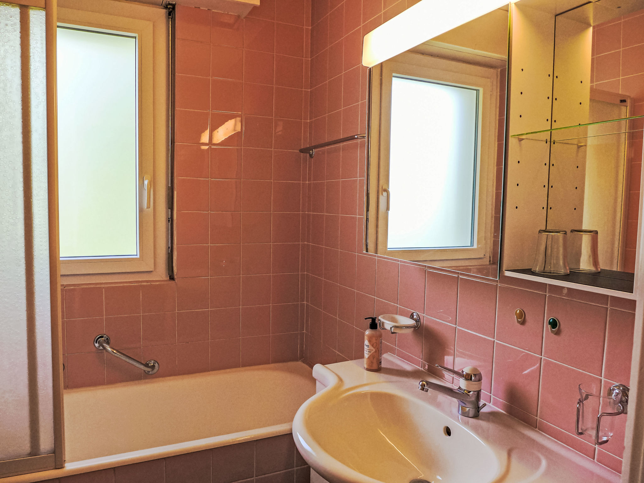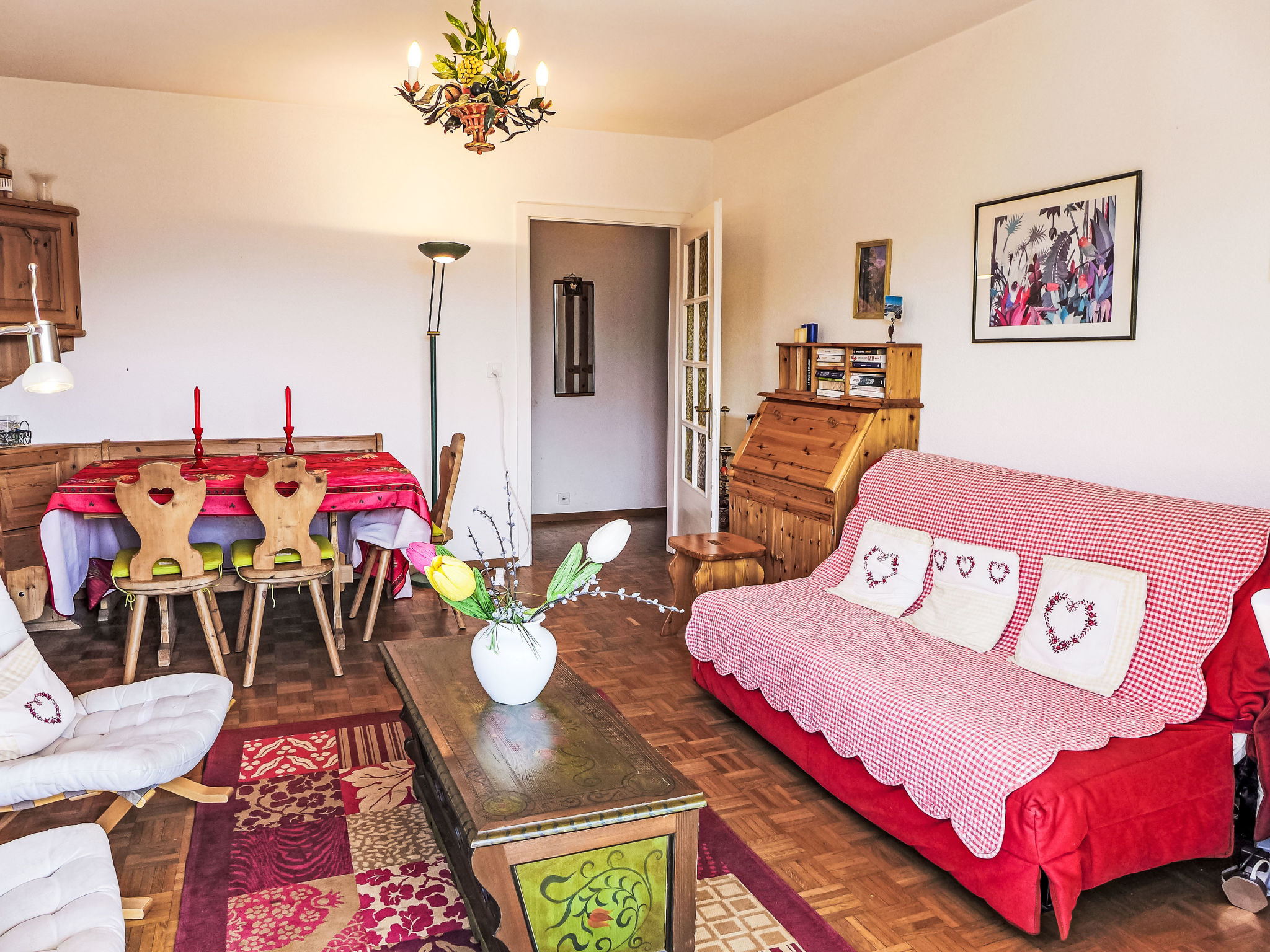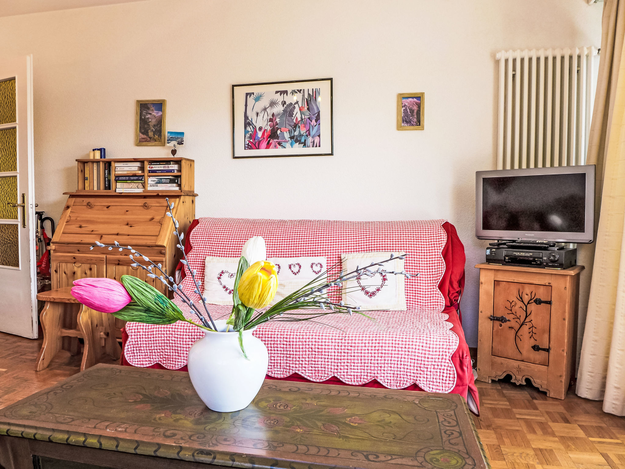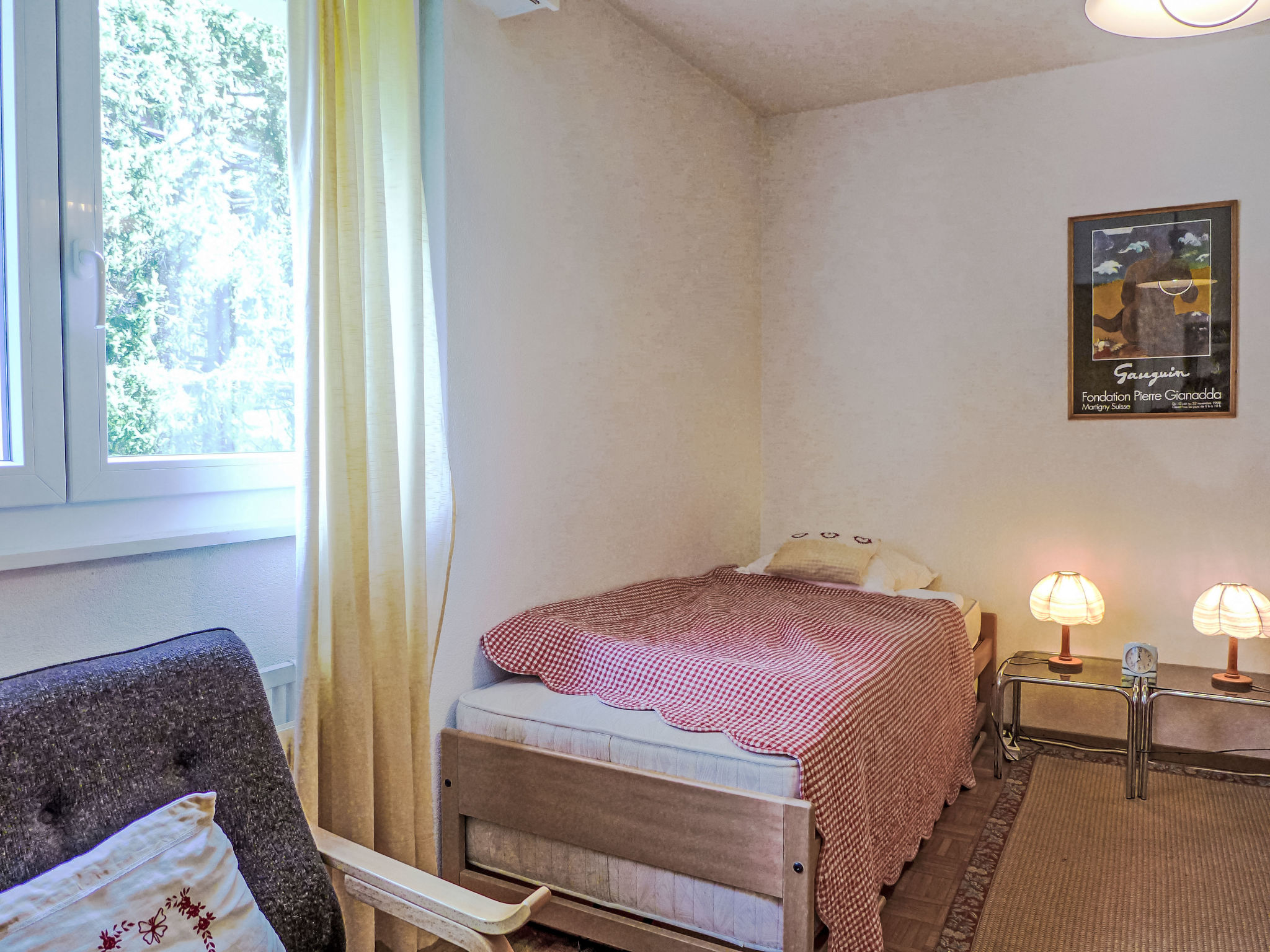 Residenz "Marigny Cervin". Im Ortsteil Marigny, am Ortsrand, 1.5 km vom Zentrum von Montana, ruhige, sonnige Lage, 150 m vom Waldrand, 1.3 km vom See, Richtung Süden. In der Anlage: Fahrstuhl, Skiraum, Zentralheizung, Waschmaschine, Wäschetrockner (zur Mitbenutzung, extra), Trockenraum. Parkplatz (beschränkte Anzahl). Einkaufsgeschäft 1.5 km, Supermarkt 1.6 km, Restaurant 1.5 km, Bäckerei 900 m, Bushaltestelle "Marigny" 160 m. Golfplatz (18 Loch) 3 km, Tennis 1.4 km, Tennishalle 1.4 km, Skisportanlagen 1.3 km, Skibushaltestelle 50 m, Eisfeld 2 km. Bekannte Seen in der Umgebung sind gut erreichbar: Etang Long 3 km, Lac Grenon 2.5 km. Bitte beachten: Gratis Skibus.