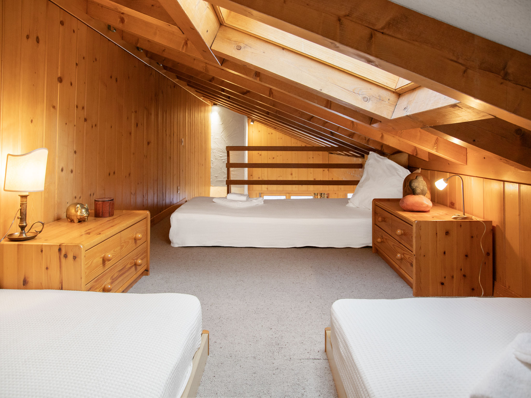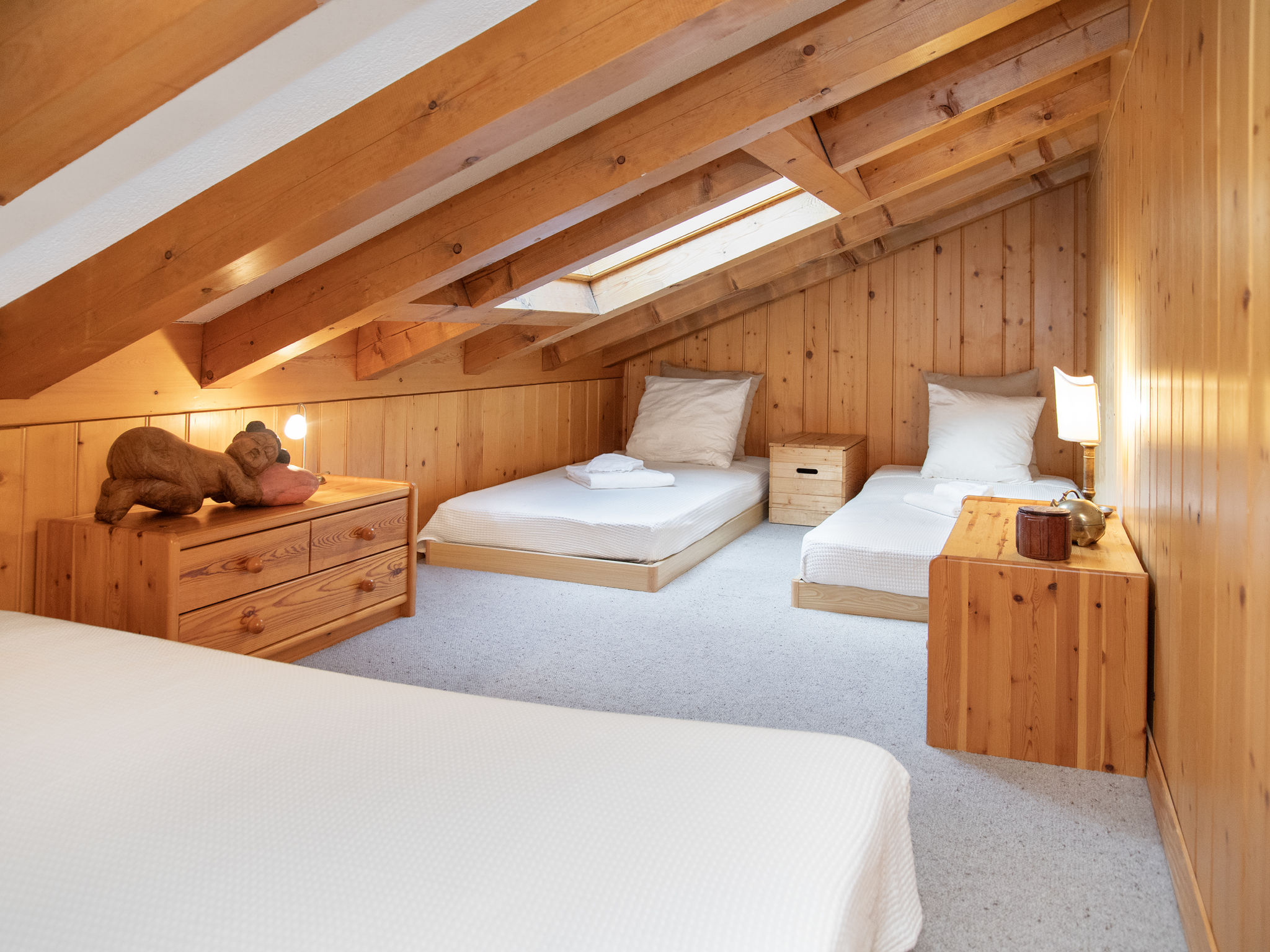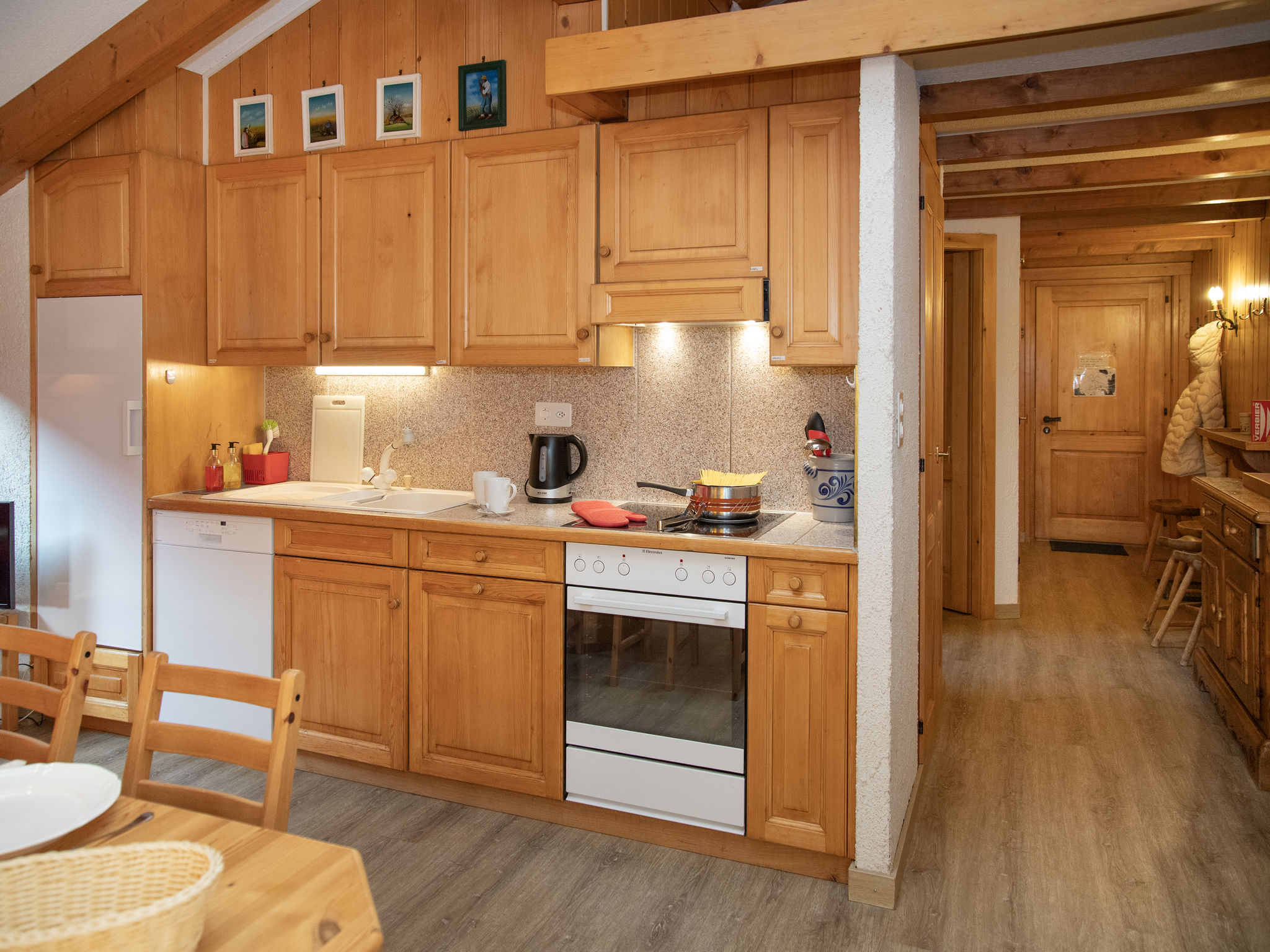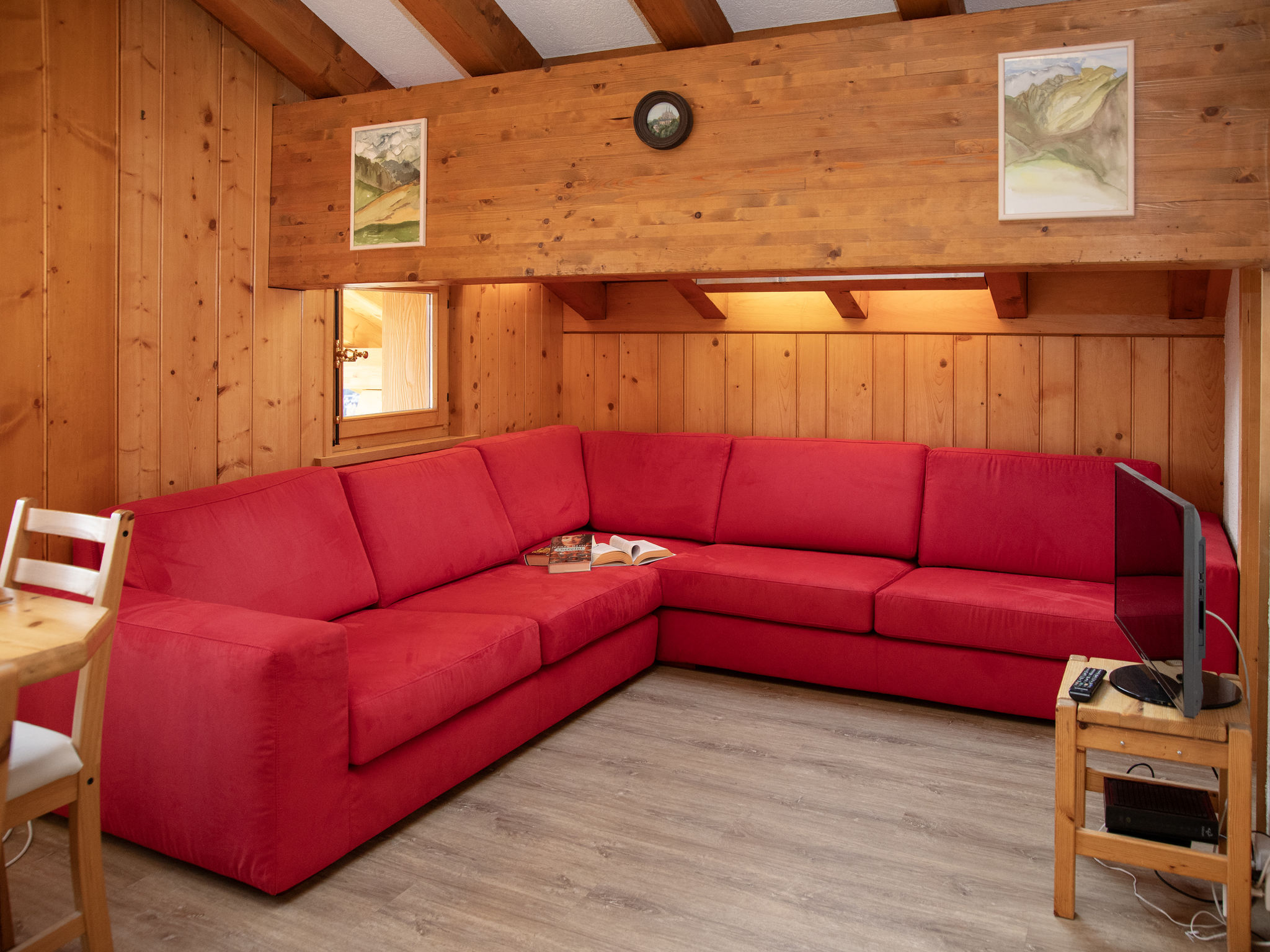 "Pinot Gris combles", 2-Zimmer-Attikawohnung 59 m2 auf 2 Stockwerken, im Dachgeschoss, Südlage. Zweckmässig und schön eingerichtet: abgeschrägtes Wohn-/Esszimmer mit offenem Kamin (nur Deko), Esstisch, Kabel-TV und E-Heizung. Ausgang zum Balkon, Richtung Süden. 1 Zimmer mit 1 Doppelbett (2 x 90 cm, Länge 190 cm). Kochnische (4 Kochplatten, Backofen, Geschirrspüler, Wasserkocher, Fondue Set (Käse)). Bad/WC. E-Heizung. Dachgeschoss: (steile Treppe) abgeschrägte, offene kleine Galerie mit 3 Betten (90 cm, Länge 190 cm). Kleiner Balkon, Südlage. Balkonmöbel. Sehr schöne Panoramasicht auf die Berge, die Skipiste, die Landschaft und die Ortschaft. Zur Verfügung: Haartrockner. Internet (WLAN, gratis). Bitte beachten: Nichtraucher-Unterkunft, kein Parkplatz. Kein Fahrstuhl. Anstelle eines abgeschlossenen Schlafzimmers befinden sich manche Schlafplätze in einem offenen Bereich (Galerie, Nische etc.).