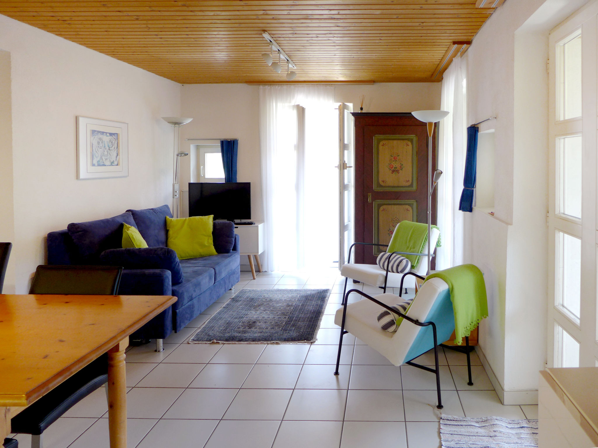 2-Zimmer-Wohnung 40 m2, im Erdgeschoss, Südlage. Hell, komfortabel und gemütlich eingerichtet: offenes Wohn-/Esszimmer mit Esstisch, Kabel-TV, Radio, Stereoanlage und DVD. Ausgang zur Terrasse. 1 Zimmer mit 1 franz. Bett (160 cm). Ausgang zur Terrasse. Offene Küche (Backofen, 4 Glaskeramikplatten, Toaster, Wasserkocher, Mikrowelle, elektrische Kaffeemaschine, Kapseln für die Kaffeemaschine (Nespresso) extra, Racletteofen, Fondue Set (Käse)). Bad/WC. Fussbodenheizung. Terrasse 20 m2. Terrassenmöbel, Abstellkammer. Herrliche Panoramasicht auf die Berge und die Landschaft. Zur Verfügung: Waschmaschine, Wäschetrockner, Babybett. Internet (Wireless LAN, gratis). Parkplatz (überdacht, 1 Auto). Bitte beachten: Nichtraucher-Unterkunft.