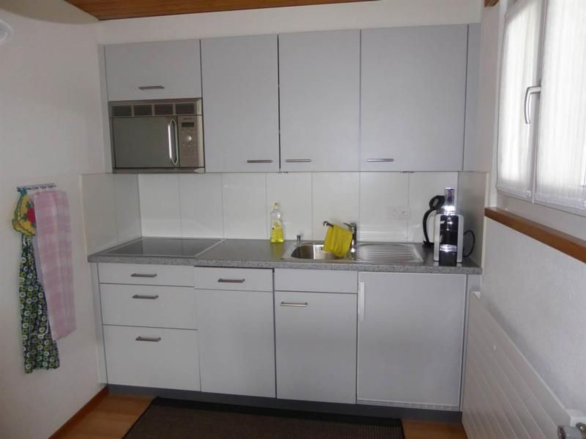 Die Wohnung besticht durch eine zweckmäßige Ausstattung, die Ihren Aufenthalt komfortabel und angenehm gestaltet. Neben einem gemütlichen Schlafzimmer, das komplett abdunkelbar ist, um Ihren Schlaf zu sichern, steht Ihnen eine moderne Küche zur Verfügung, ausgerüstet mit allem Notwendigen wie Kaffeemaschine, Espressokanne, Spülmaschine und Wasserkocher. Eine Waschmaschine zur gemeinschaftlichen Nutzung im Gebäude sowie ein Wäschetrockner zur alleinigen Nutzung im Objekt runden das Angebot ab.