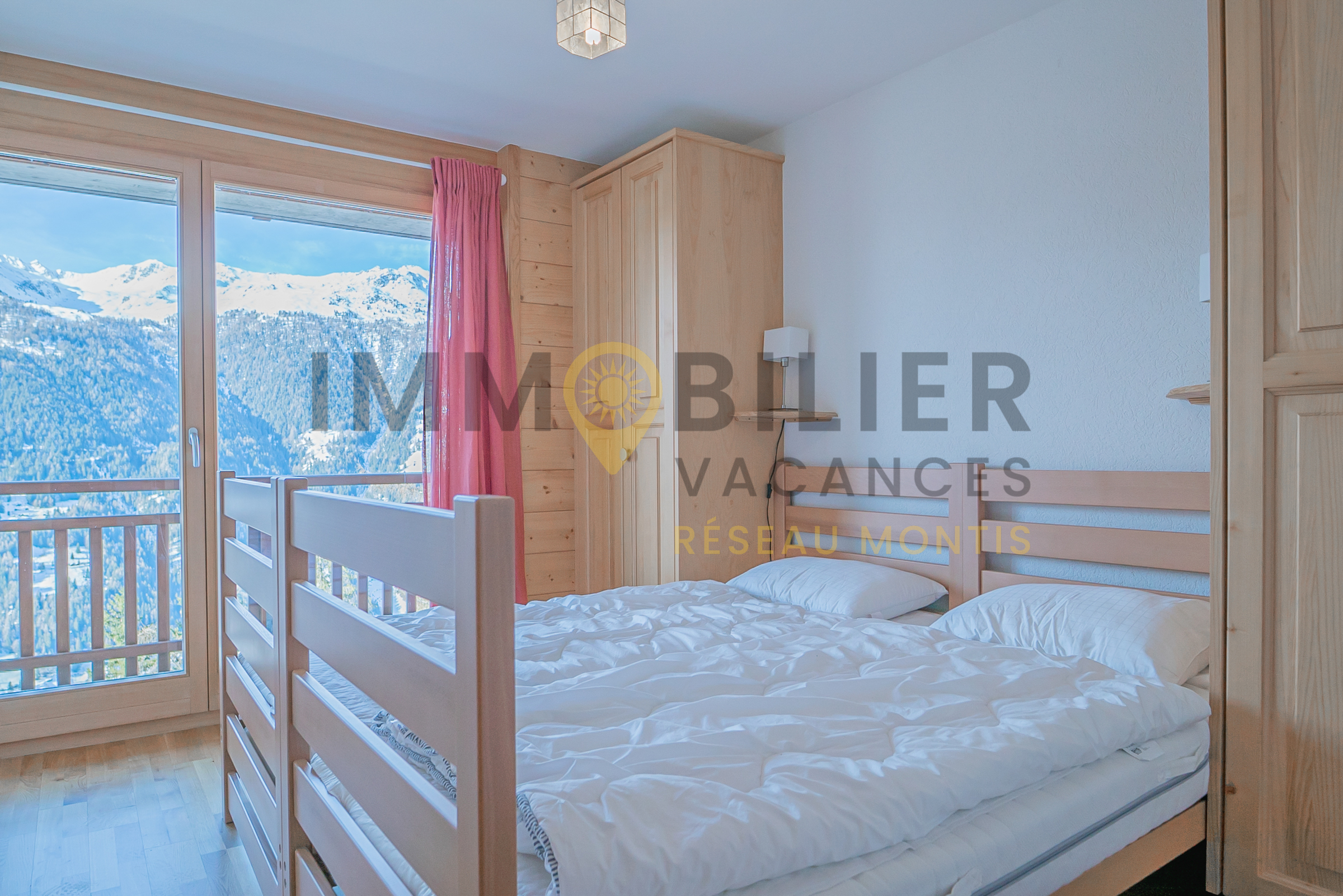Helle, zeitgemäße und komfortable Wohnung mit 2 Schlafzimmern und 2 Badezimmern. Herrliche Aussicht, große Südterrasse. Einfacher Zugang, Innenparkplatz direkt im Gebäude, Aufzug. Am Eingang des Dorfes gelegen, in der Nähe aller Annehmlichkeiten. Aufteilung: Eingangshalle. 2 Schlafzimmer mit jeweils 2 Einzelbetten nebeneinander und Schränken. Wohnzimmer mit Wifi, TV und direktem Zugang zum Balkon. Perfekt ausgestattete offene Küche. Essbereich.2 Badezimmer: 1 mit Badewanne, WC und Waschbecken und das zweite mit Duschkabine, WC, Waschbecken, Waschmaschine und Wäschetrockner. Skiraum in der Residenz. Privater Parkplatz in der Gemeinschaftsgarage mit automatischer Tür und Aufzug. Haustiere nicht erlaubt.