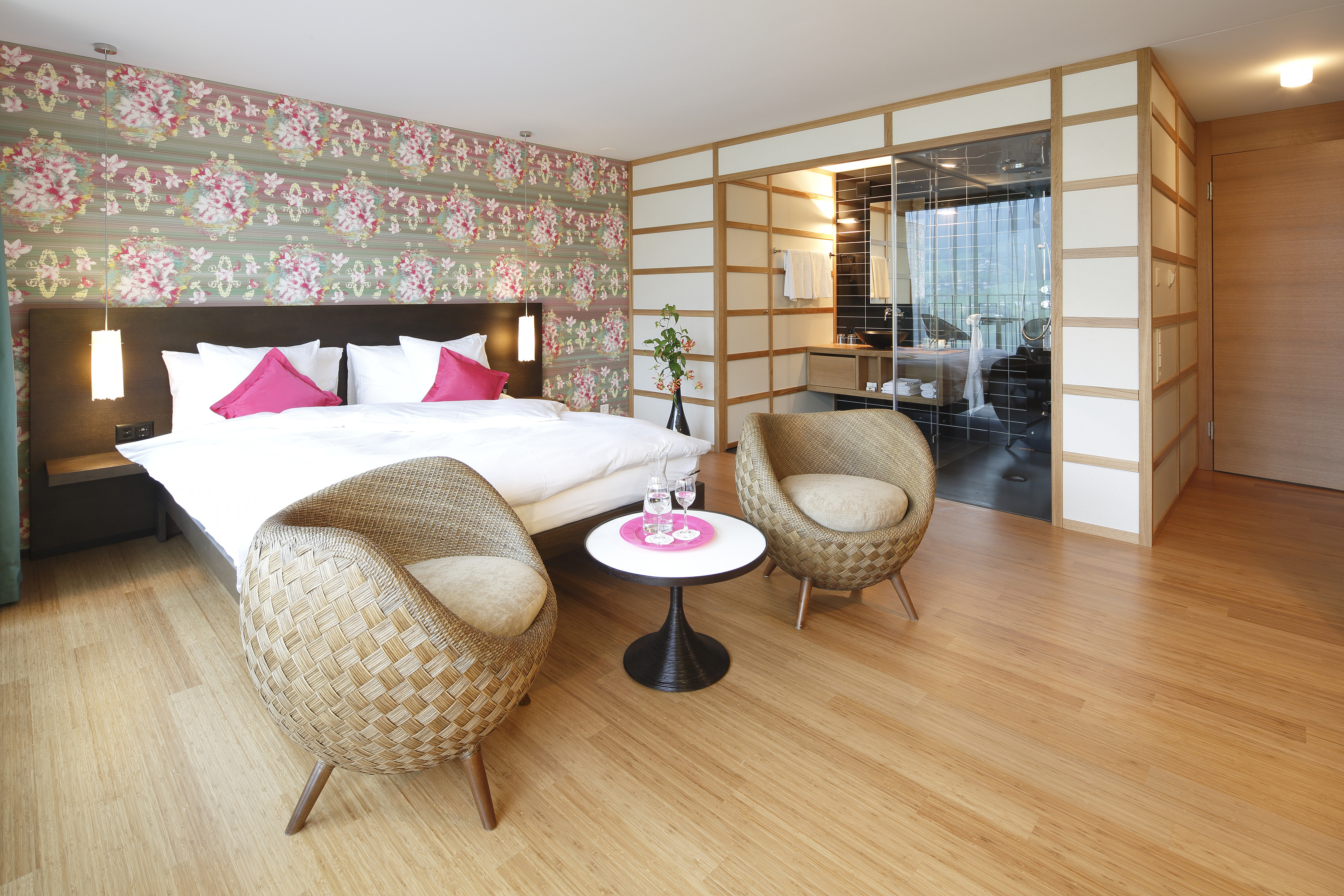 Die Spa-Junior Suiten und Spa-Superior Zimmer sind ganz auf Geniesser ausgerichtet. Jedes ist anders und alle überblicken mit grossen Panoramafenstern und eigener Terrasse den See. Wählen Sie zwischen Finnensauna und Whirlwanne im extra-grossen Zimmer, Whirlpool auf der Terrasse oder Dampfdusche mit Aroma und Lichtspiel.